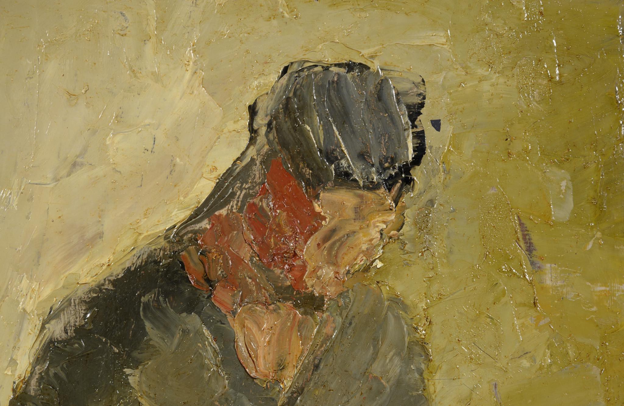 ヴォンテリウスは色彩画家として活躍した画家で、柔らかな色彩を表現し、パレットナイフを用いたと思われる筆致が特徴です。農村地帯を極めて単純化した表現で描く風景画のほか、このような室内の女性像(妻と云われている)も数多く描いています。
