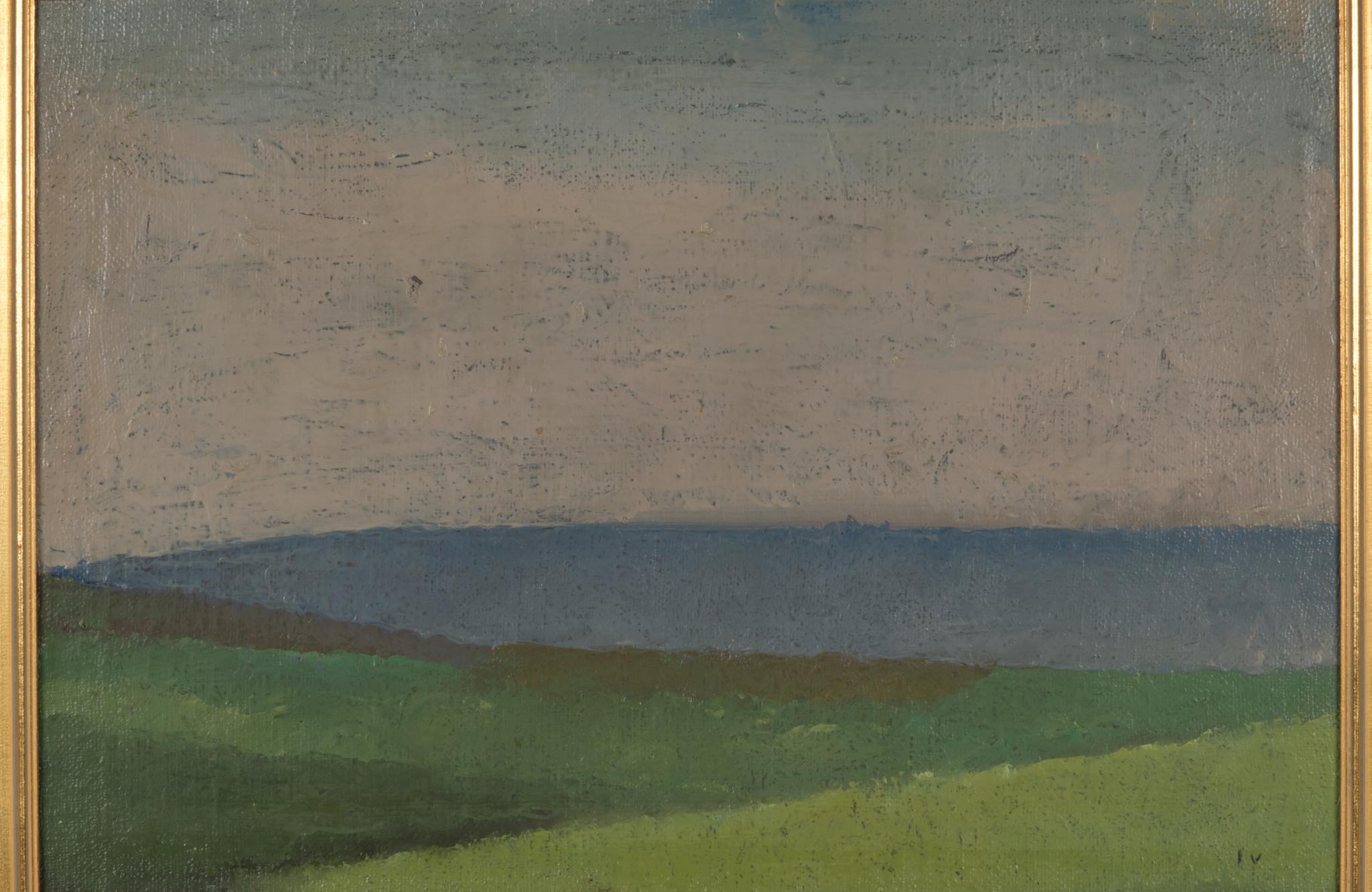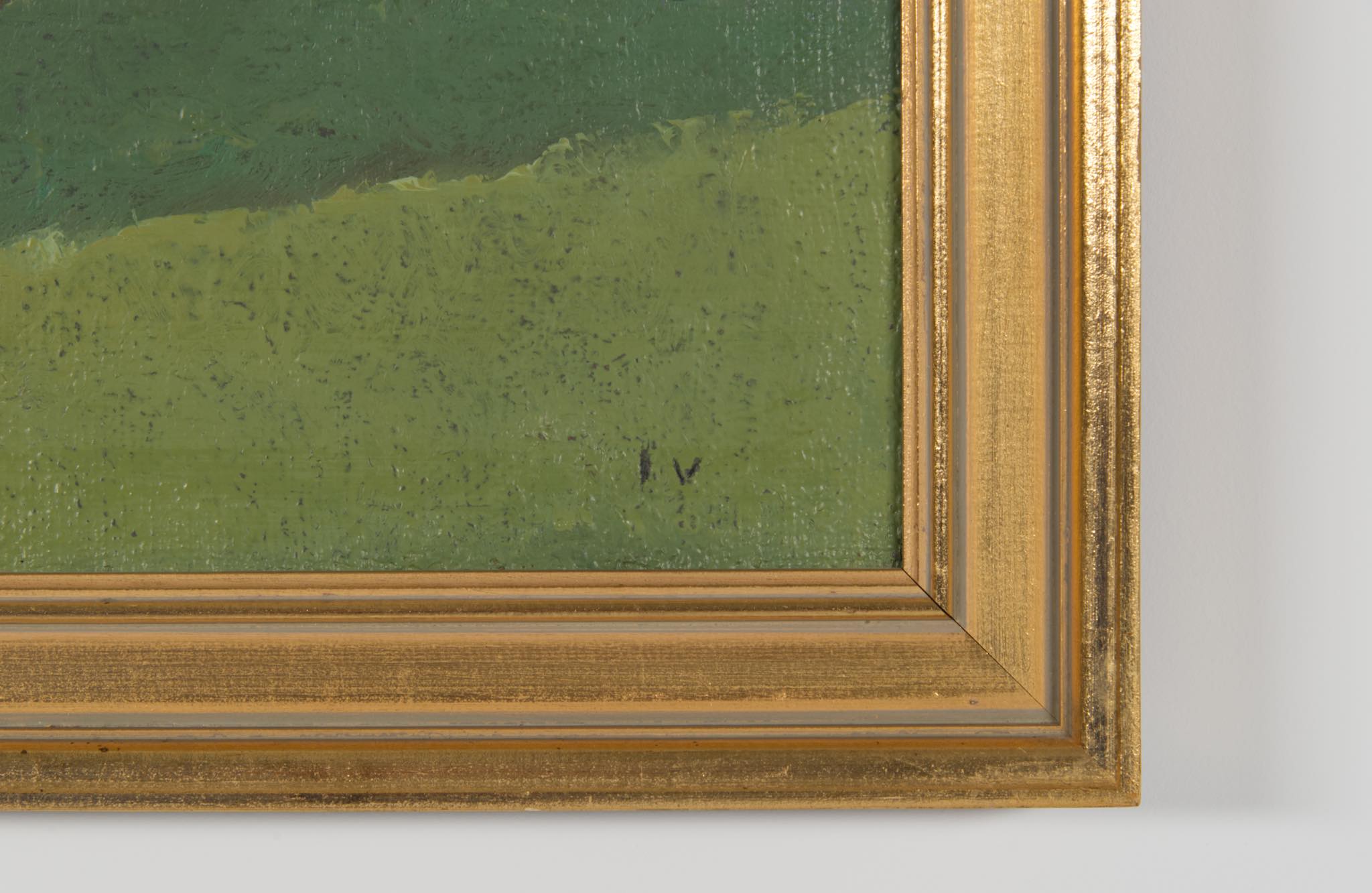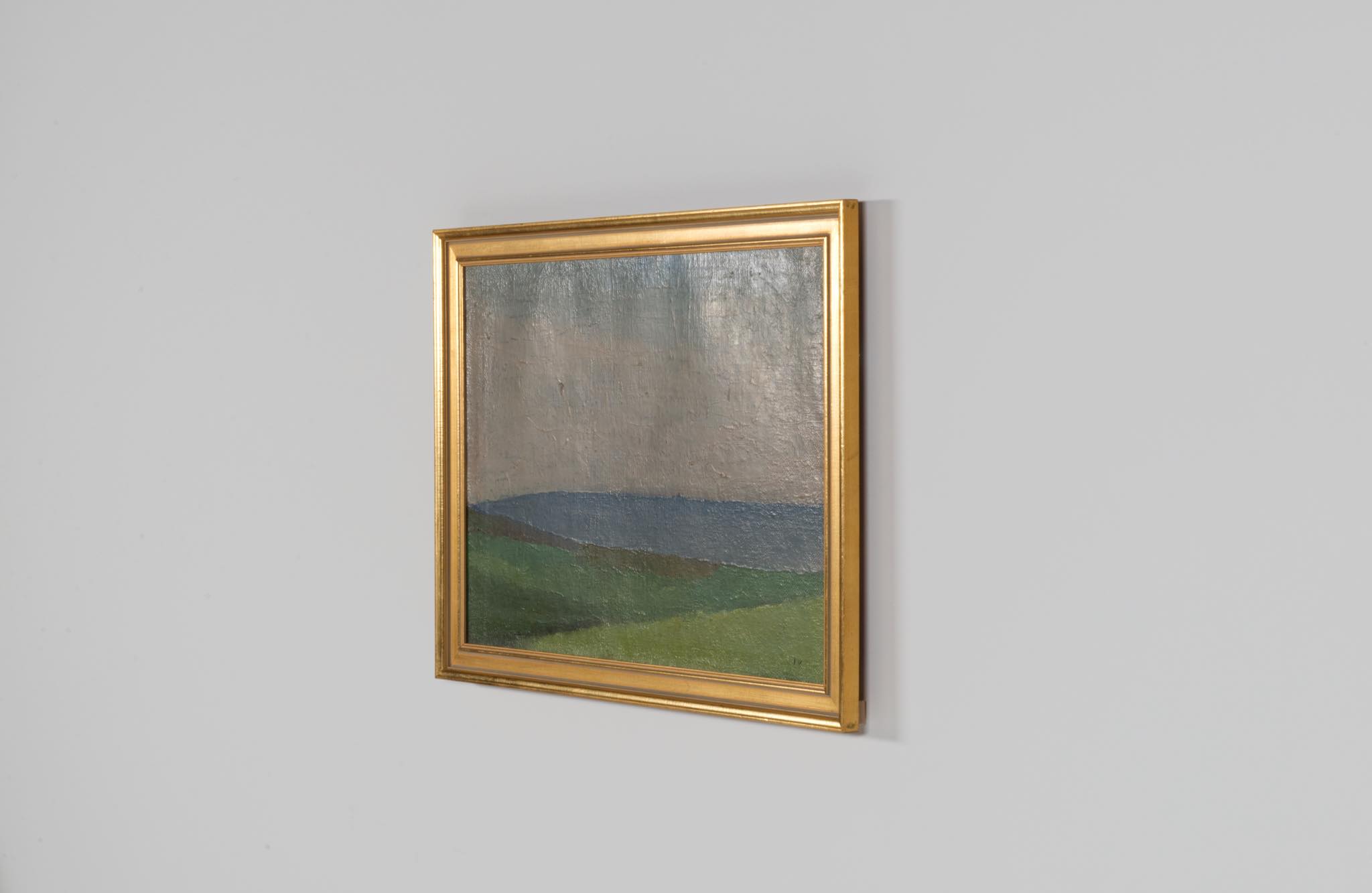デンマークの画家、Jeppe Vontillius/イェッペ・ヴォンティリウスによる油彩作品です。パレットナイフを用いた独自の表現で田園風景を描いています。金箔のフレームはオリジナルのようで、コンディションは良好です。