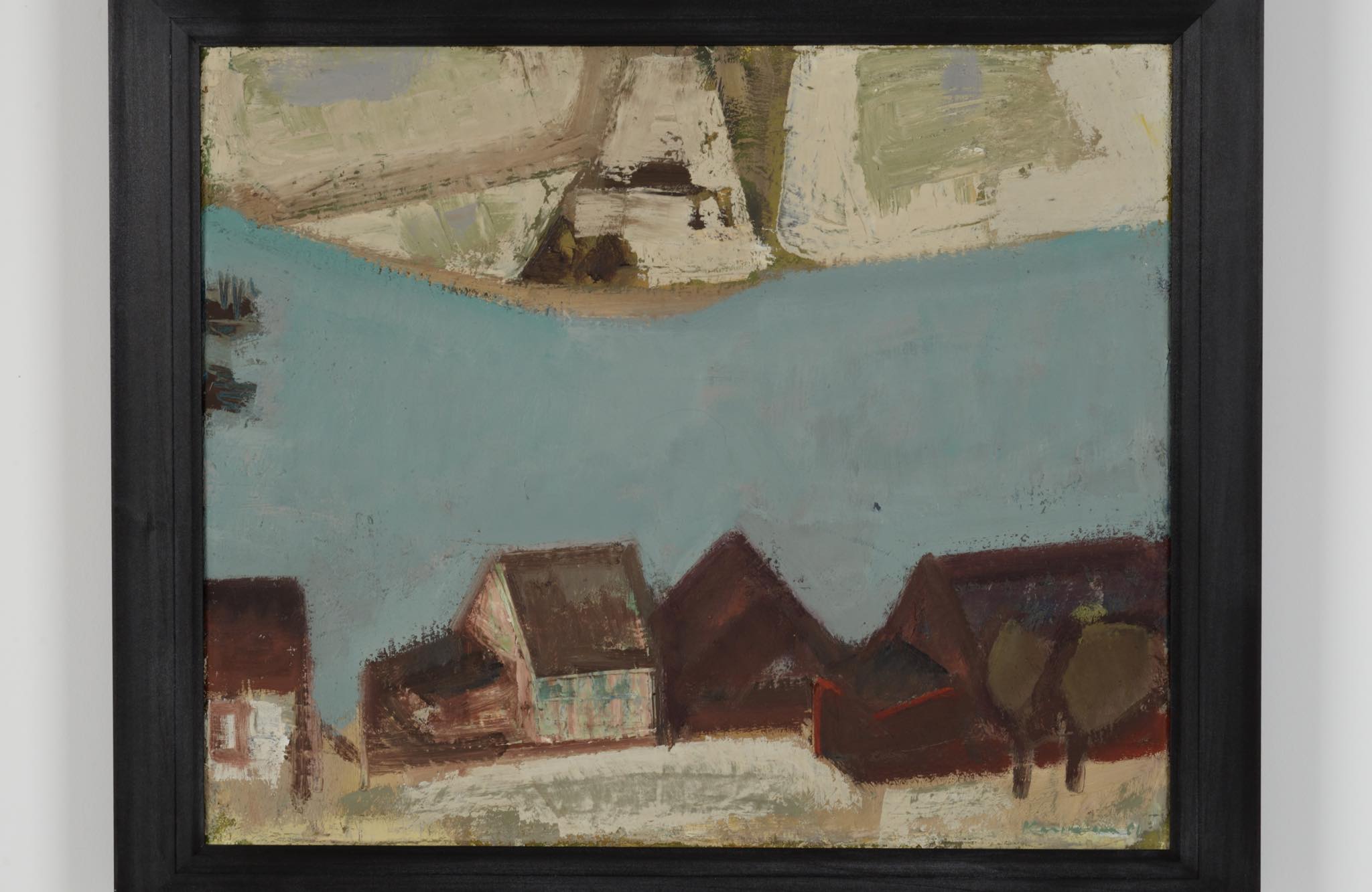 デンマーク人画家、Jack Kampmann/ジャック・カンプマンによる油彩作品です。フェロー諸島の厳しい自然環境と対峙しながら生活する島民たちの集落やその情景を独自のタッチで描いています。フレームは木製塗装のものを新調しました。コンディションは良好です。