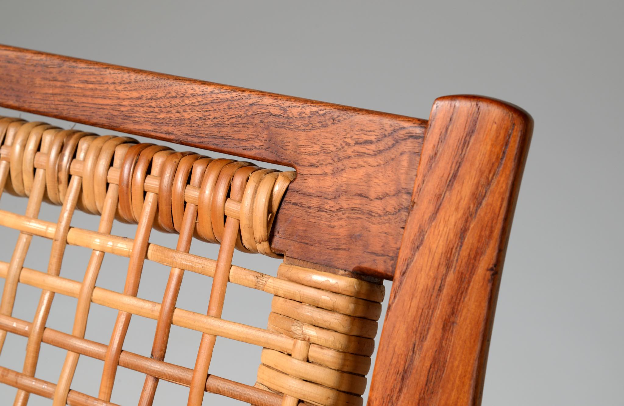 Teak, Cane, Leather seat