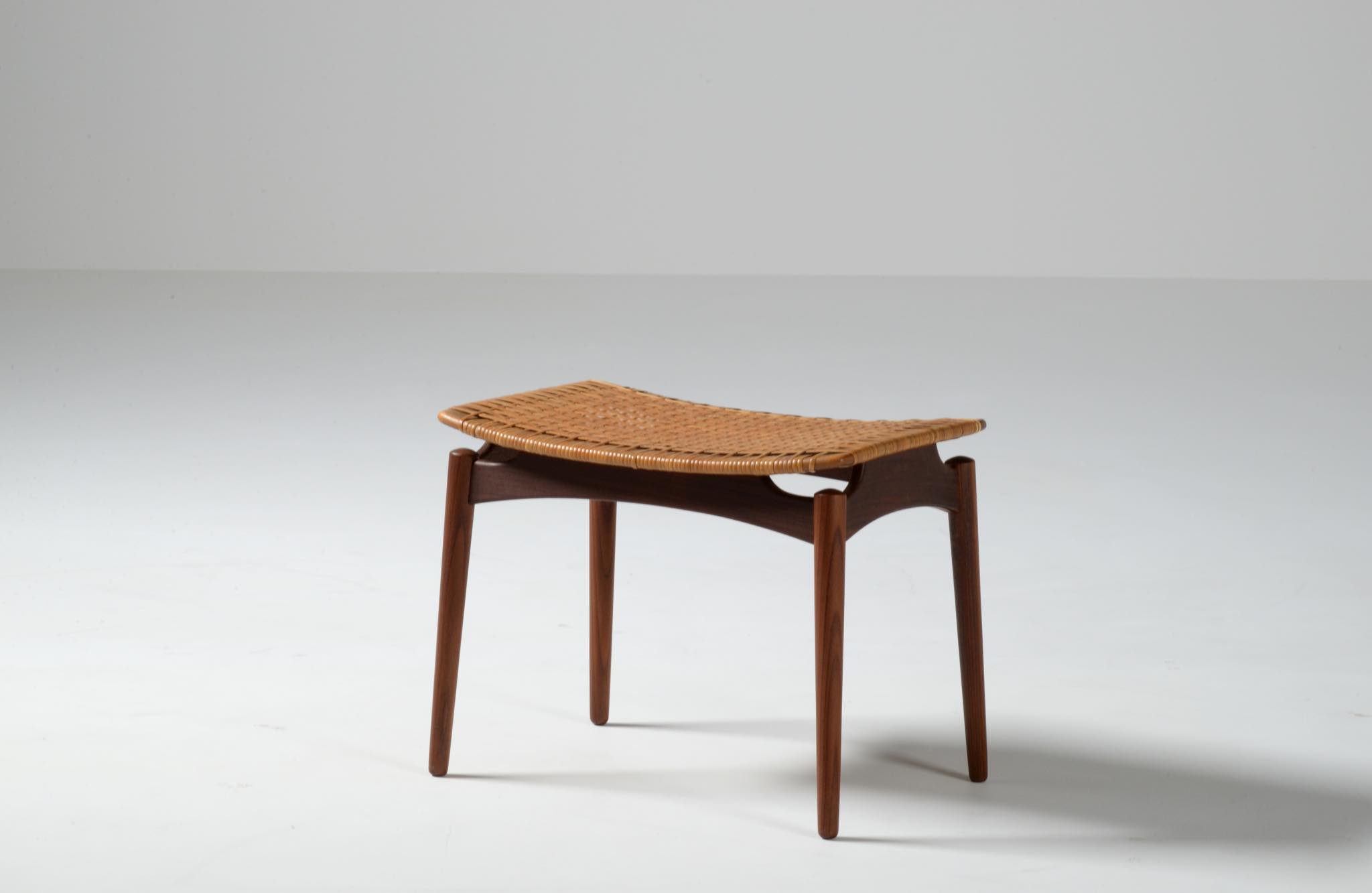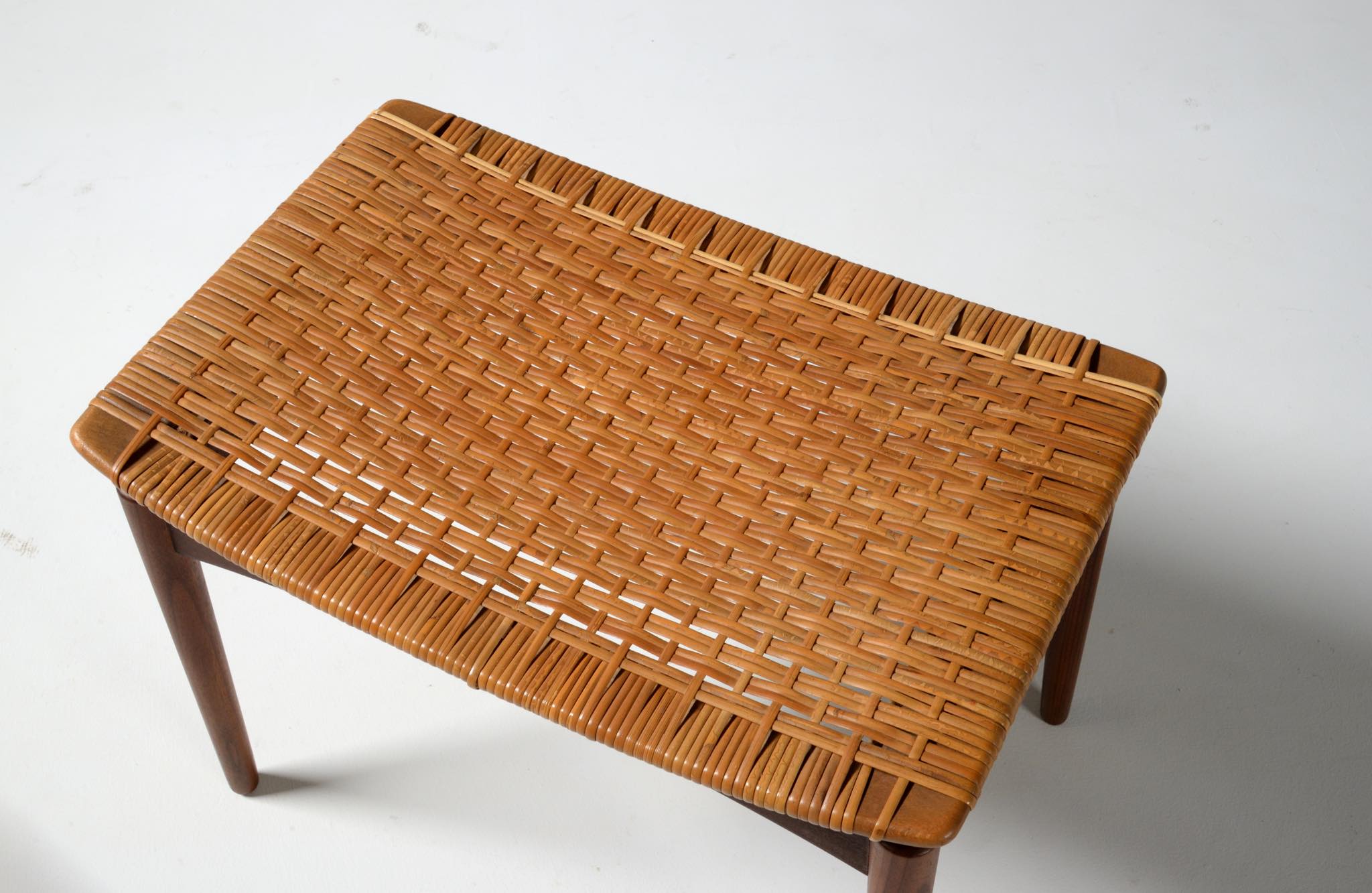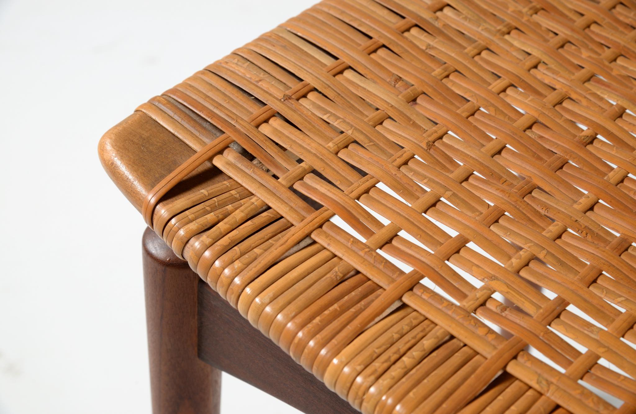 デンマークの Ølholm/オルホルム工房、Sigfrid Omann/シグフレッド・オマーンによるラタンスツールです。シートの籐はオリジナルの状態ですが、部分的に差し替えた箇所があります。こちらは単体での販売となります。籐の総張り替えのご相談も承ります。