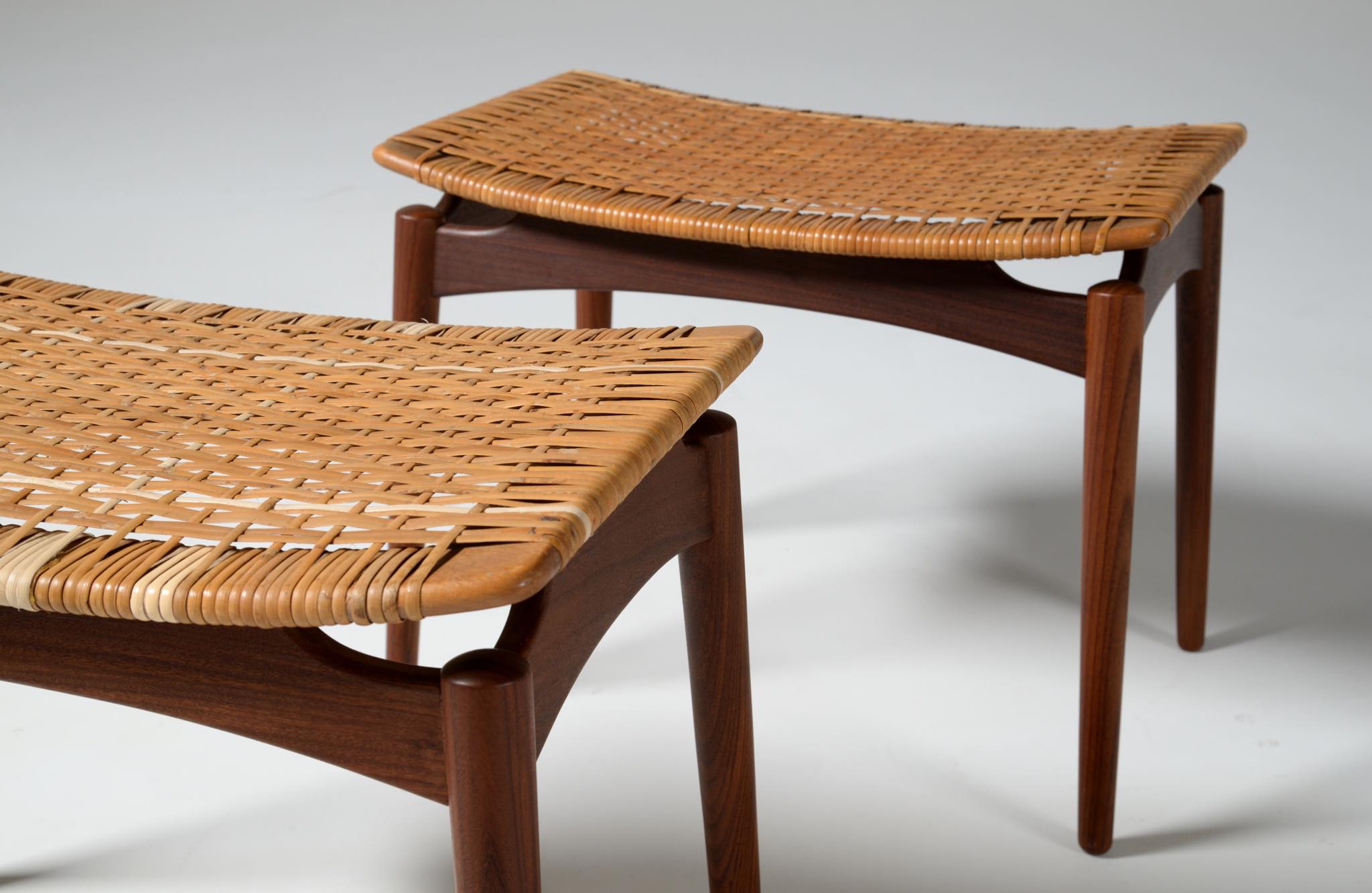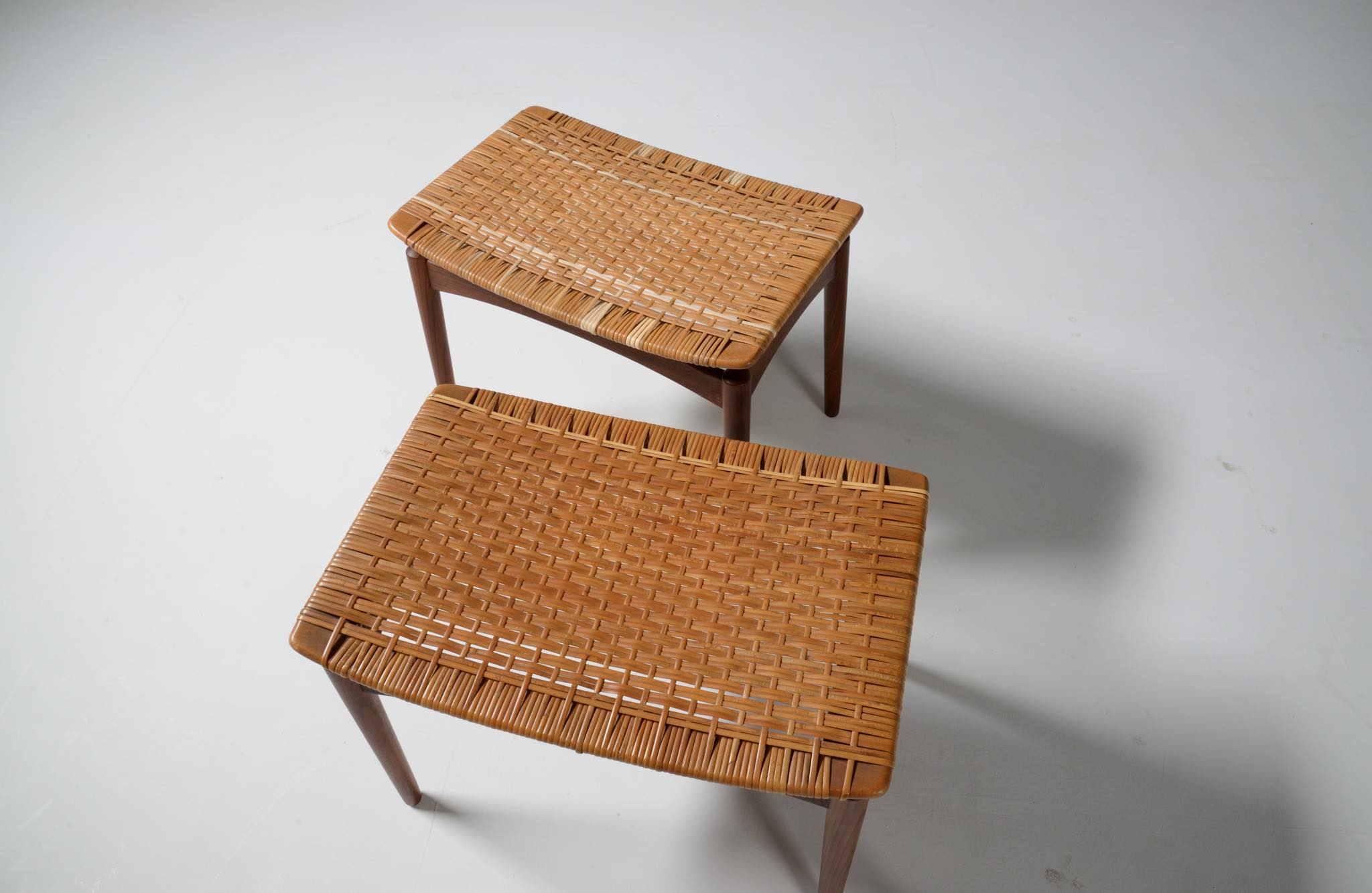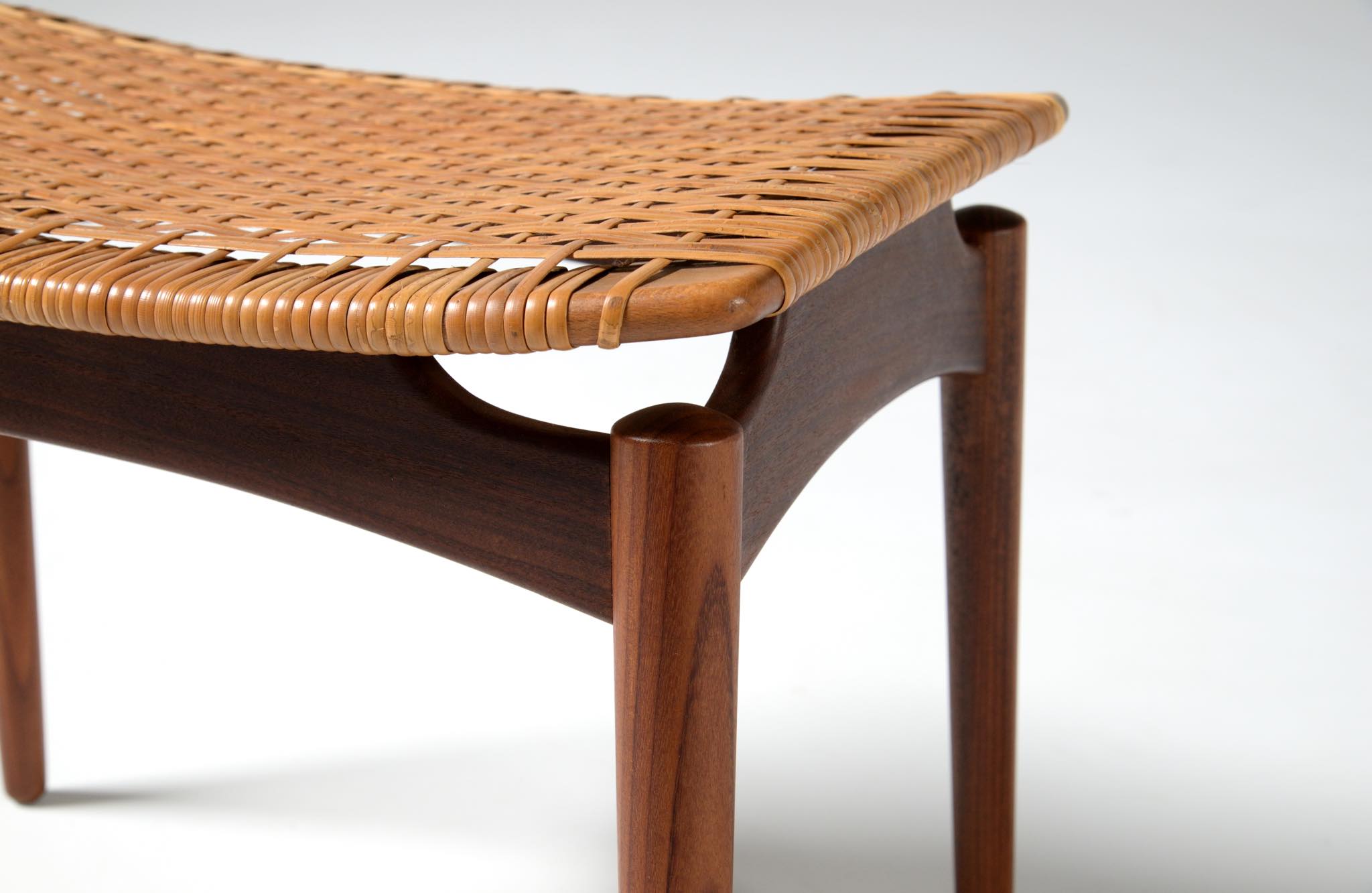 デンマークの Ølholm/オルホルム工房、Sigfrid Omann/シグフレッド・オマーンによるラタンスツールです。シートの籐はオリジナルの状態ですが、部分的に差し替えた箇所があります。こちらは単体での販売となります。籐の総張り替えのご相談も承ります。