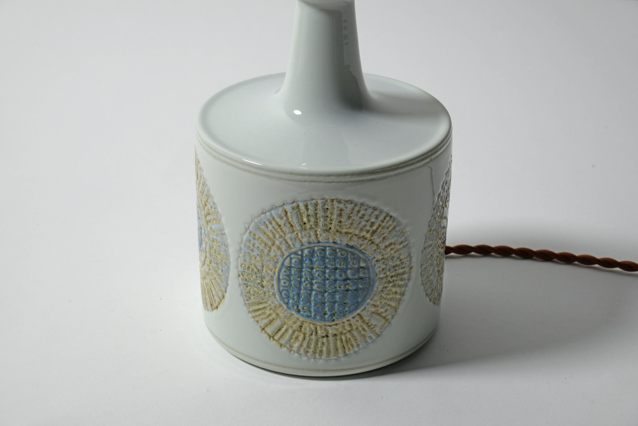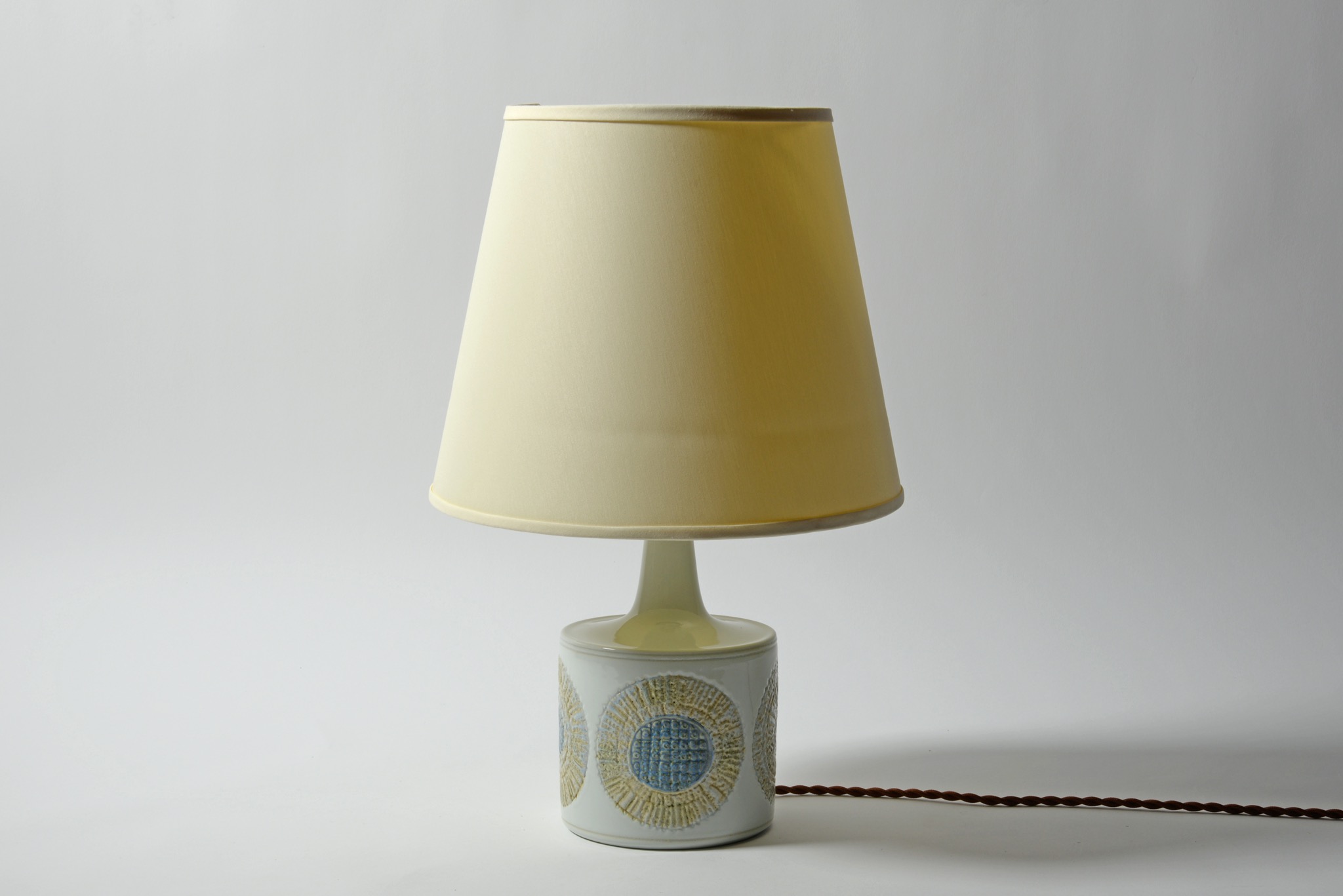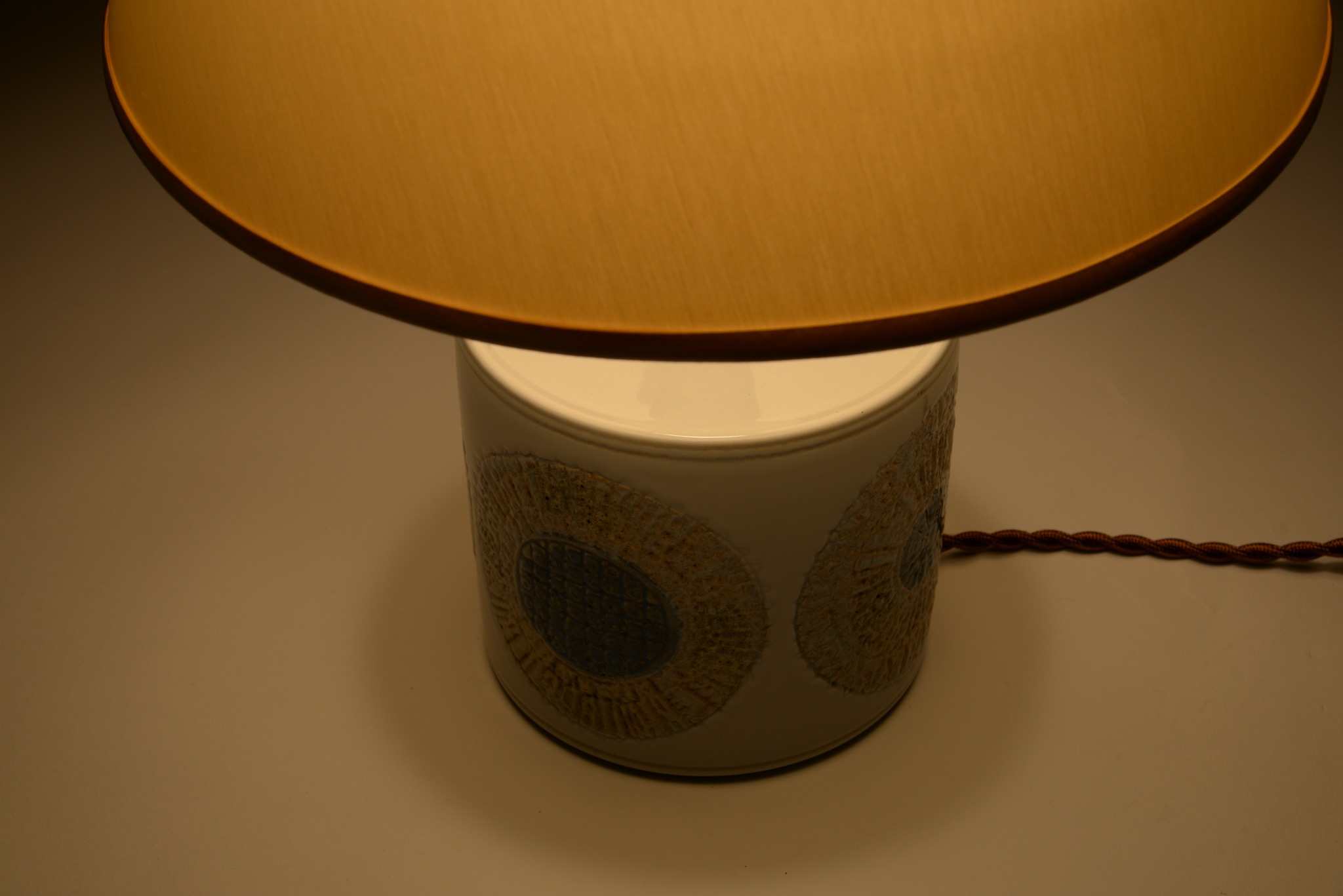 ロイヤルコペンハーゲン窯の”TENERA”をベースとしたテーブルランプです。デザイナーはノルウェー出身の若き女性デザイナーのKari Christensen/カリ・クリステンセンによるもので、照明メーカーのFog & Mörup社とのコラボレーションサインが確認できます。シェードはデッドストックのようで綺麗ですが、僅かな染みがあります。コンディションは良好です。