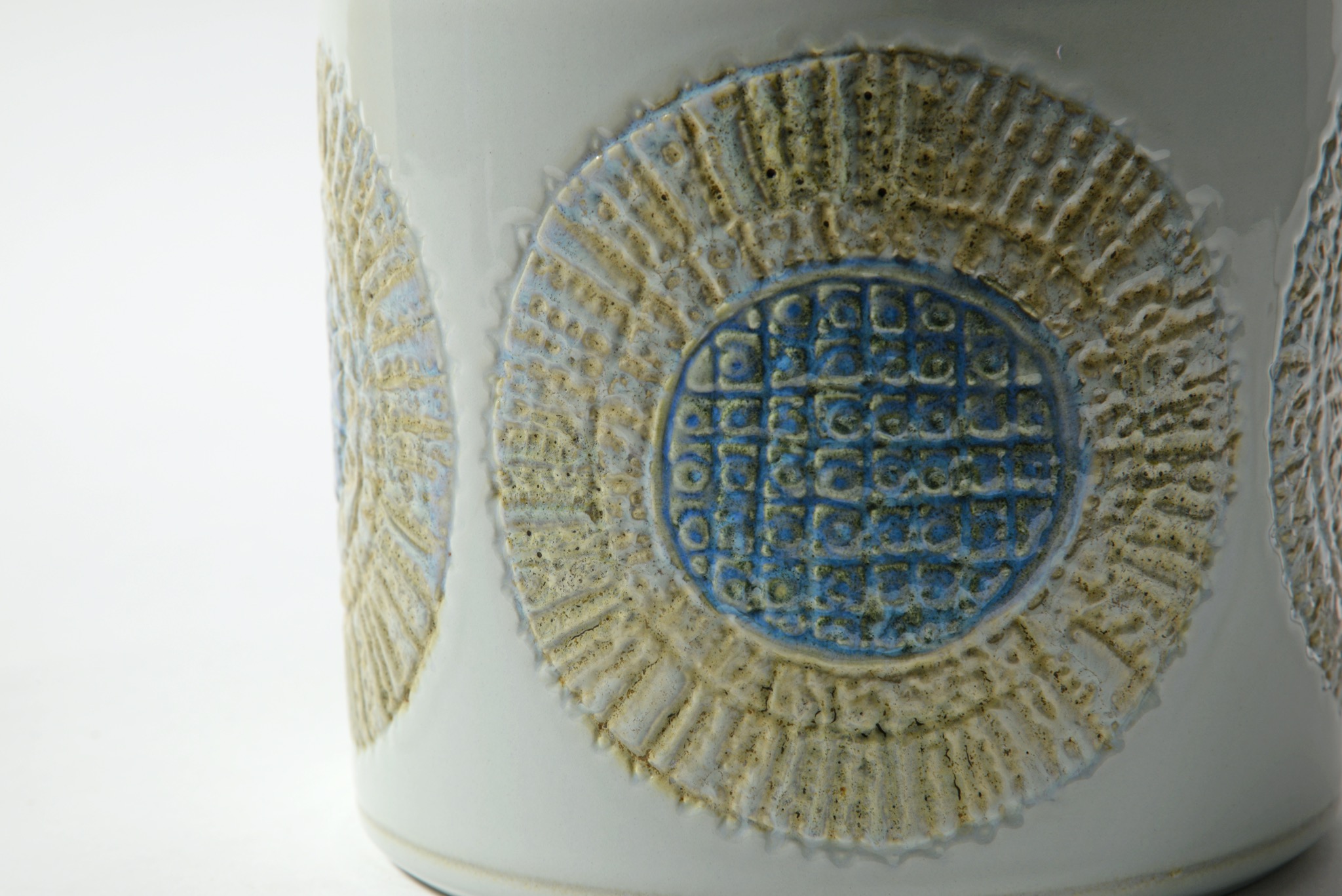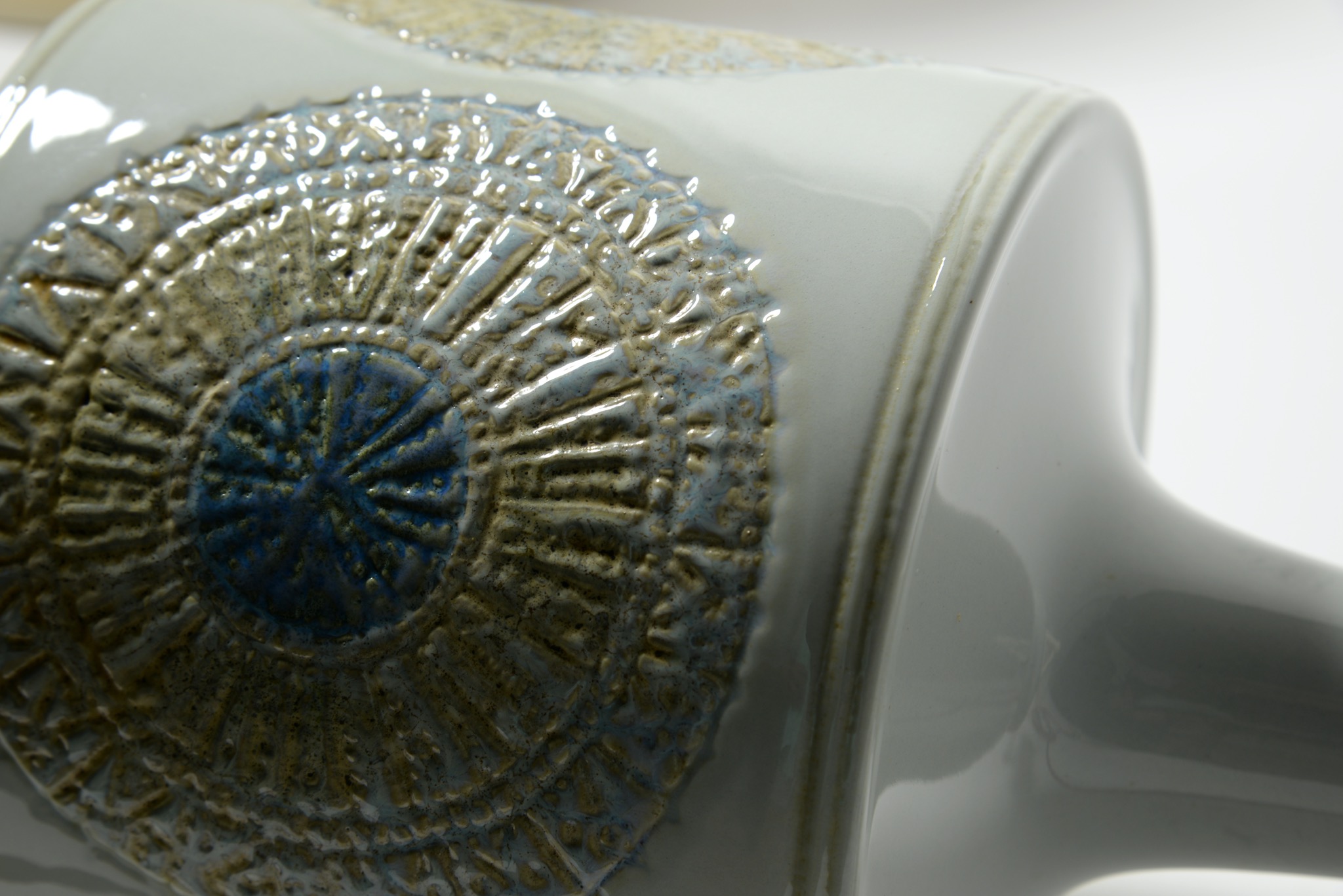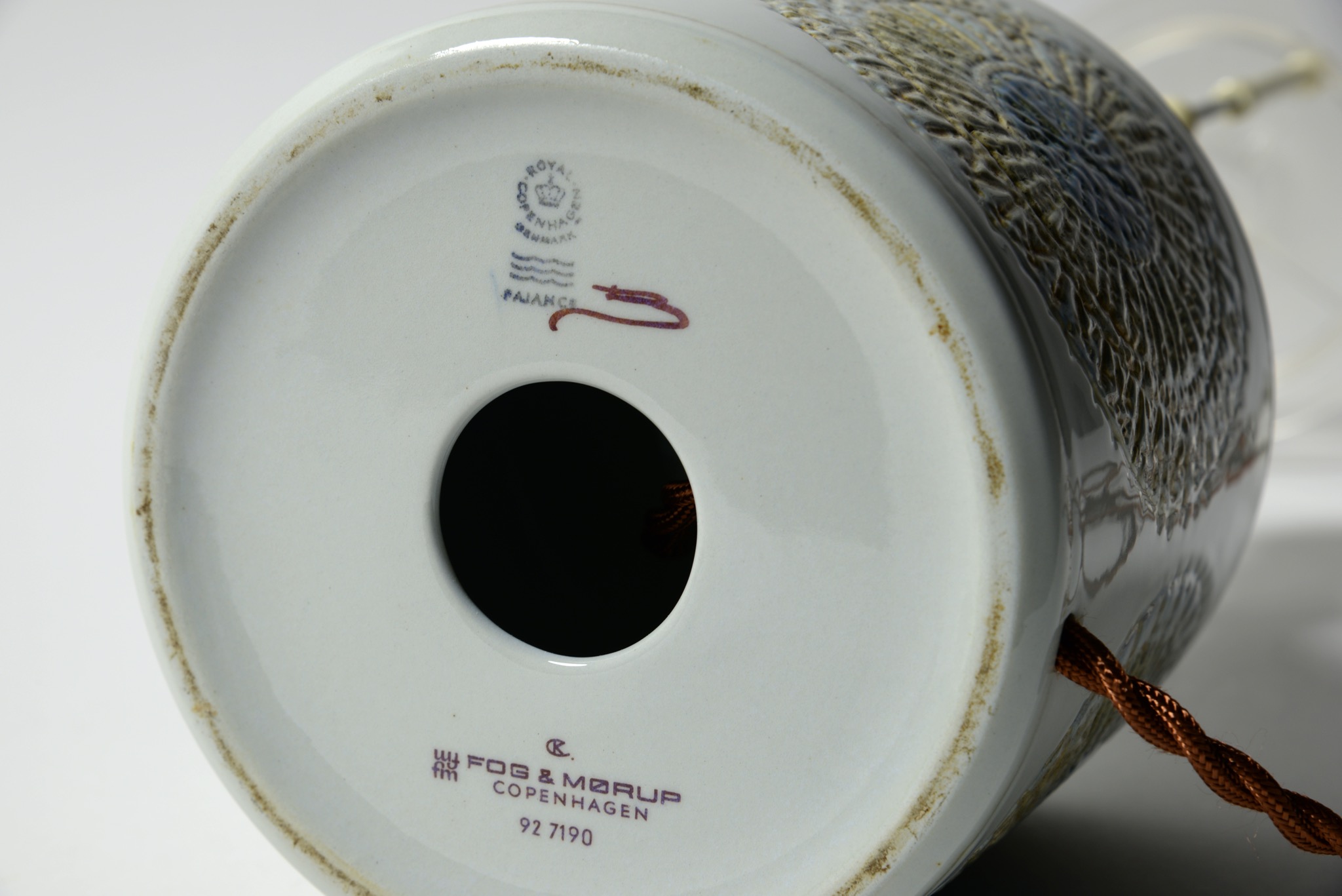 ロイヤルコペンハーゲン窯の”TENERA”をベースとしたテーブルランプです。デザイナーはノルウェー出身の若き女性デザイナーのKari Christensen/カリ・クリステンセンによるもので、照明メーカーのFog & Mörup社とのコラボレーションサインが確認できます。シェードはデッドストックのようで綺麗ですが、僅かな染みがあります。コンディションは良好です。