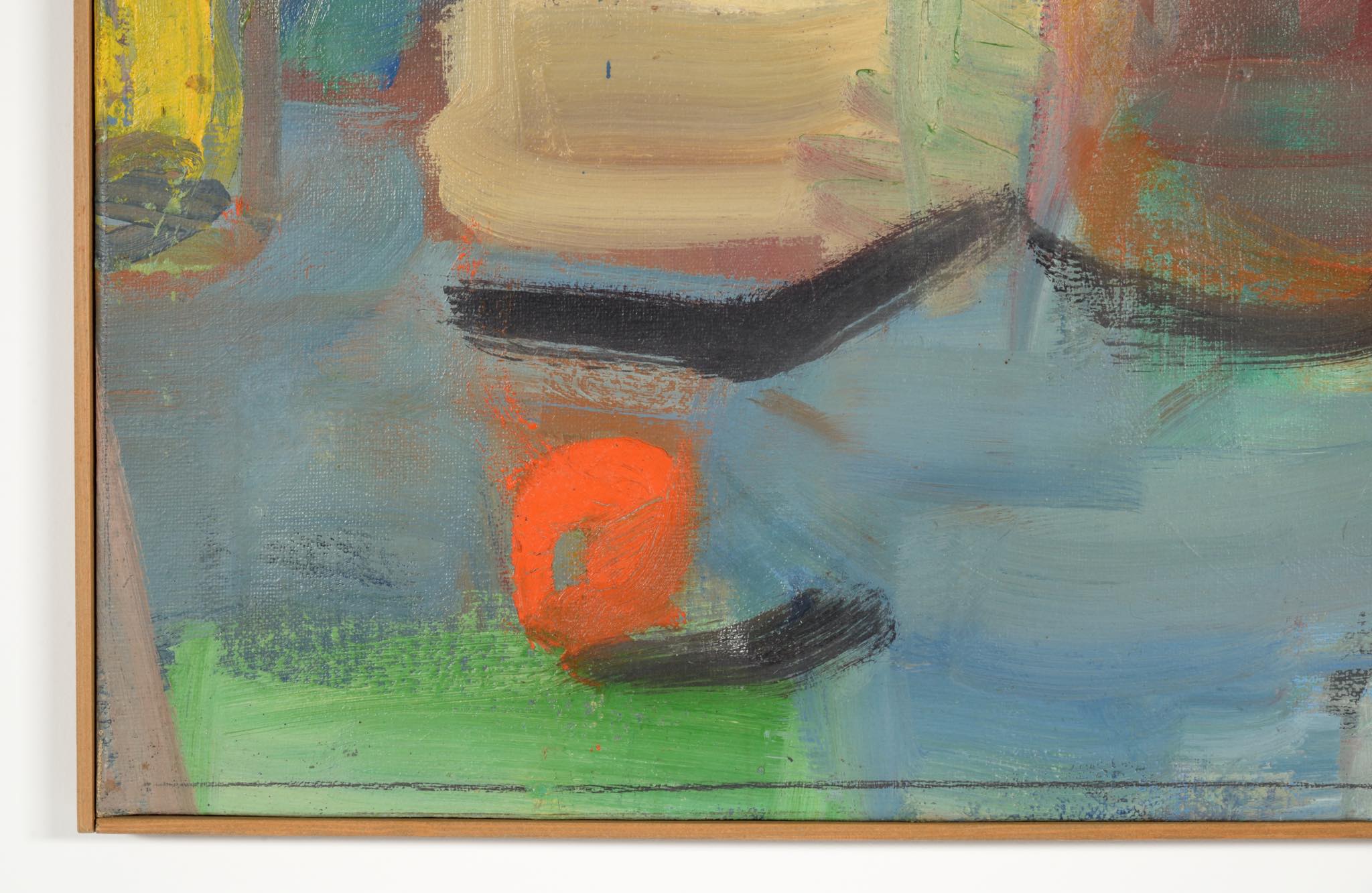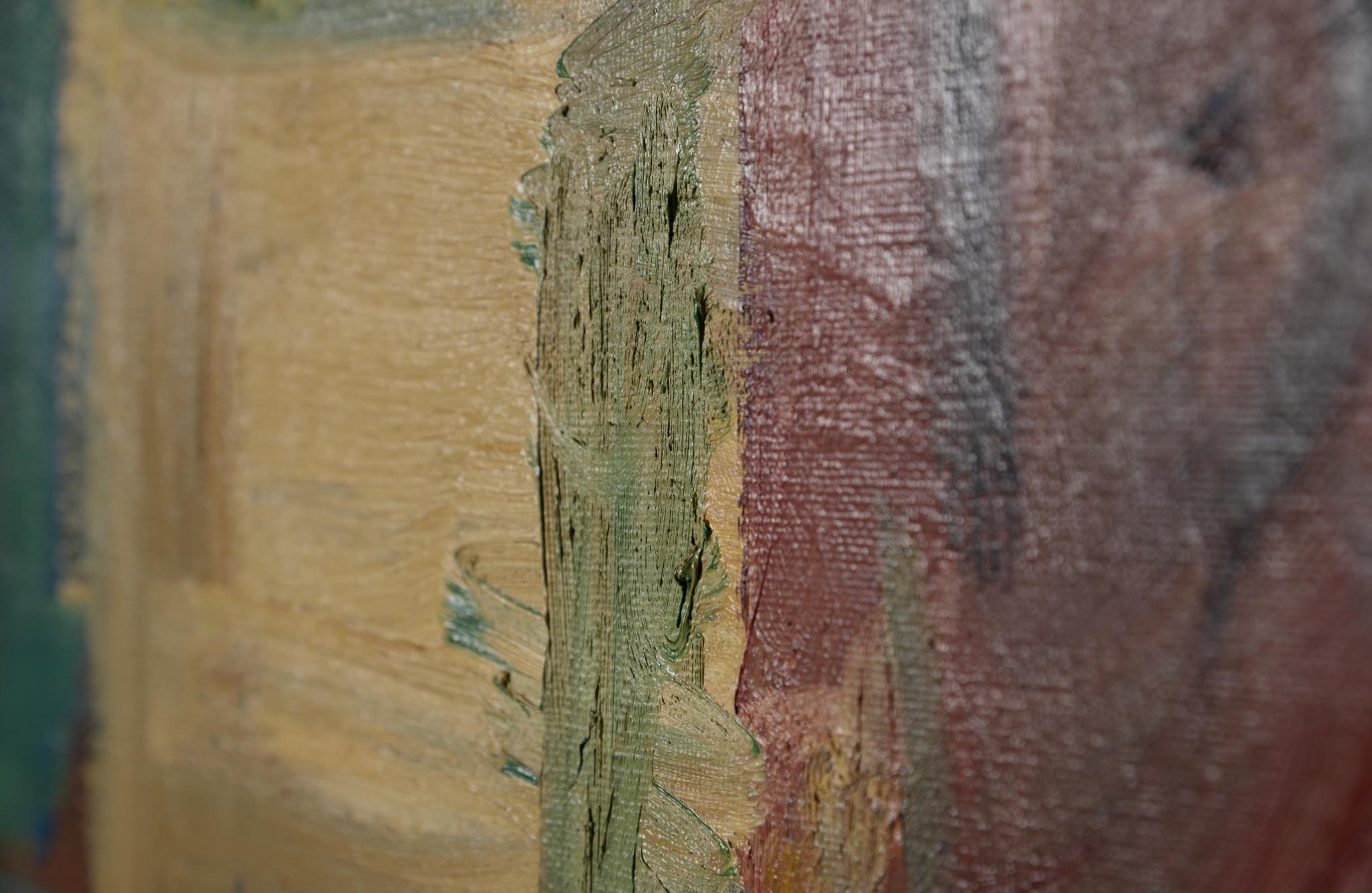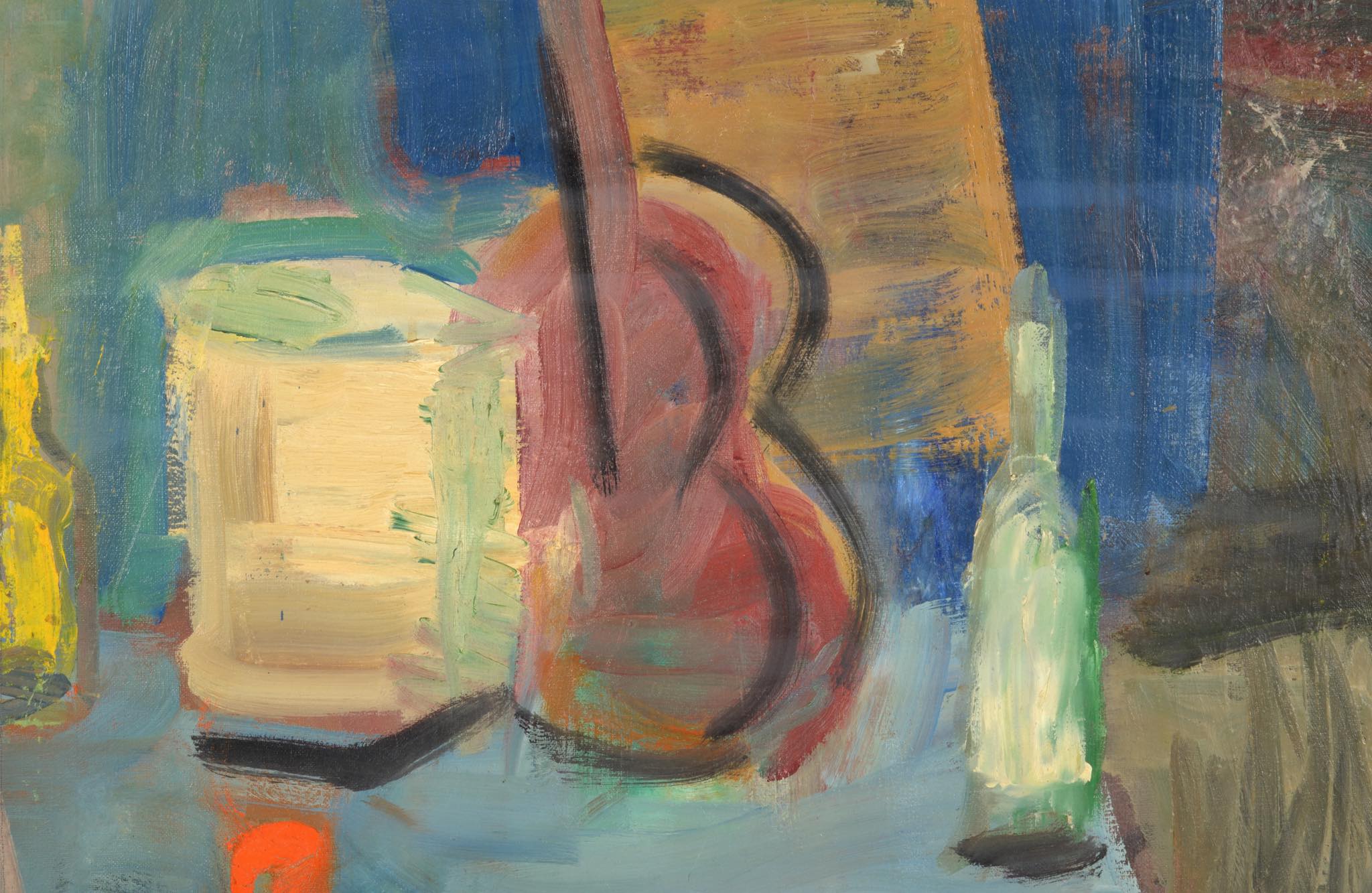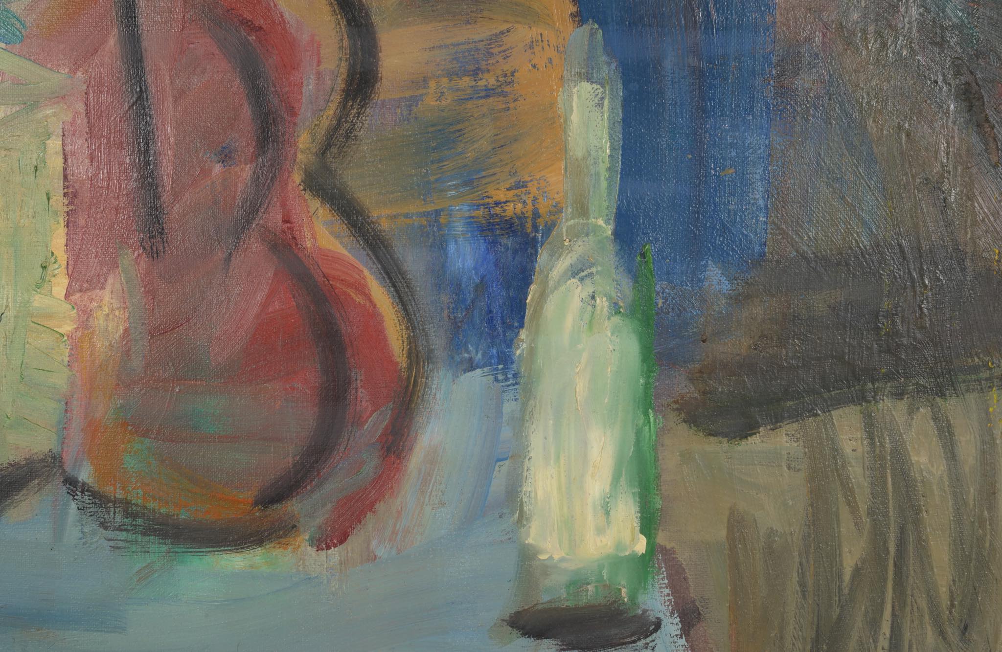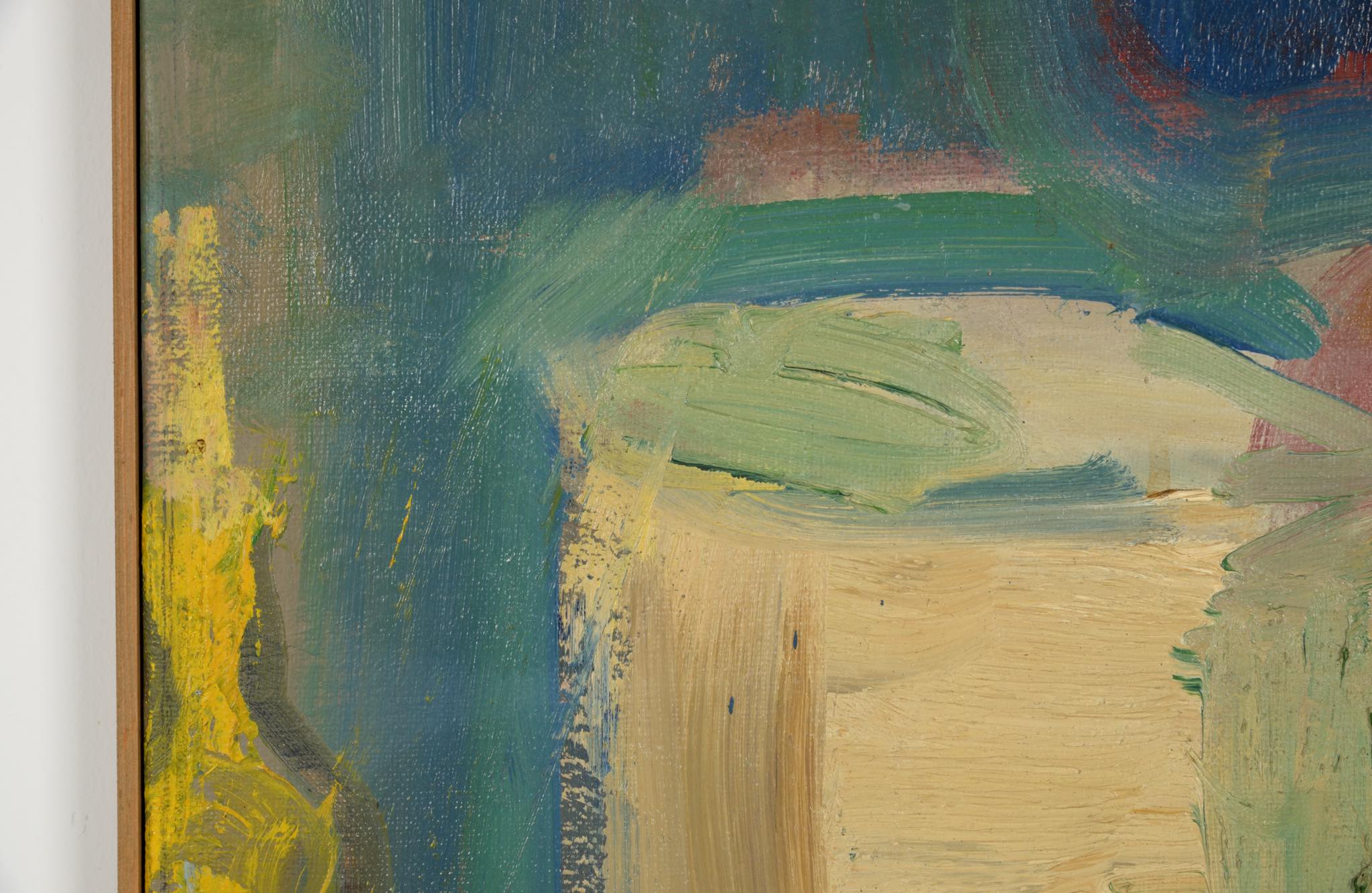 デンマークの芸術家、Evgenij Klenø/エヴゲニー・クレノによる油彩作品です。"Opstillet Violin"と題された作品で、卓上に並ぶバイオリンが独自の筆致で描かれており、クレノによる特有の世界観が表現されています。こちらは1978年にシャーロッテンボー宮殿で開催された「秋の展覧会」に出展された作品で、アーティストのファミリーによるコレクションより売り立てられたものとされています。フレームはパイン材を用いて新たに作成しました。