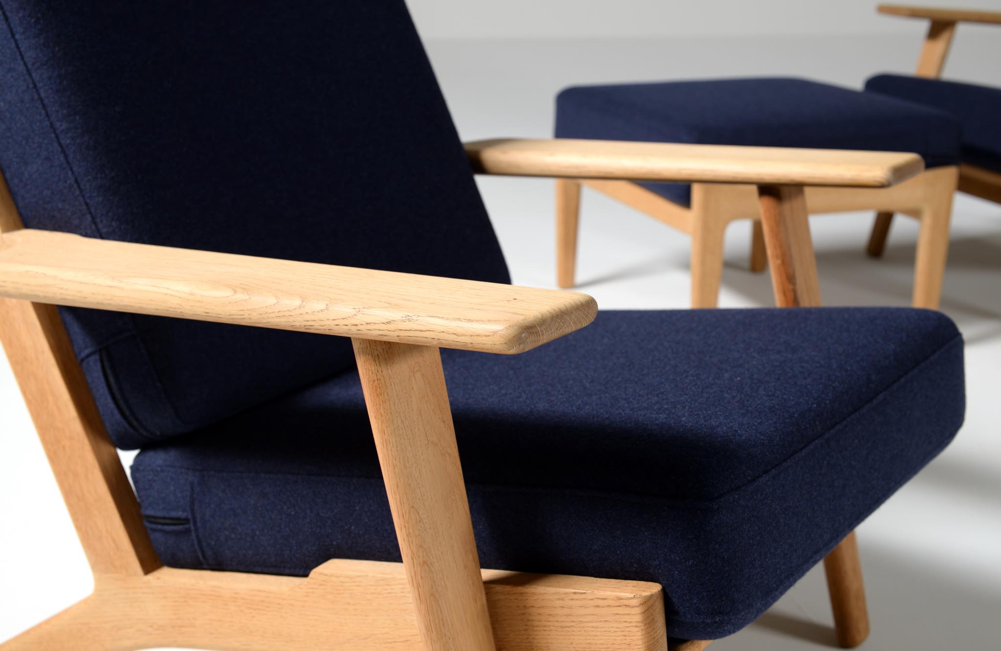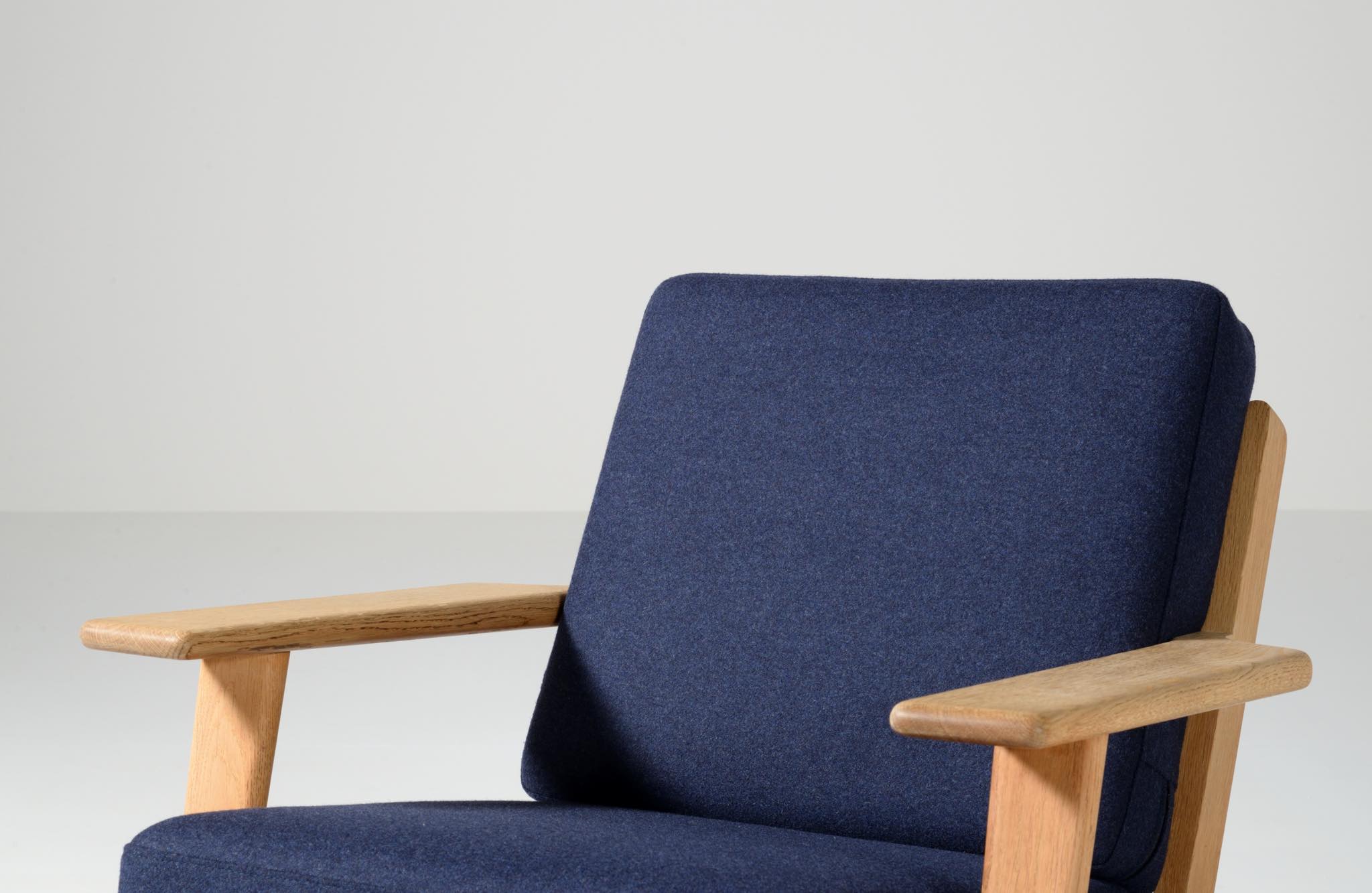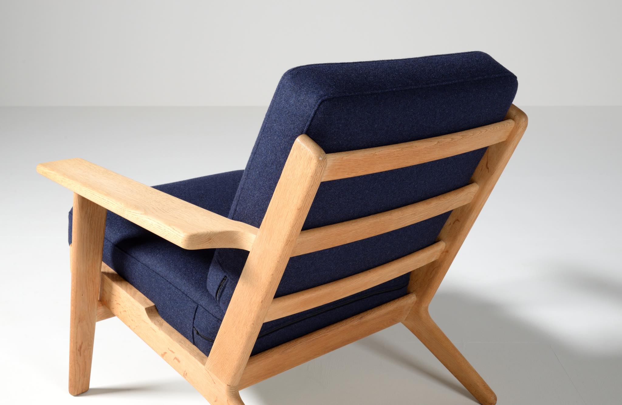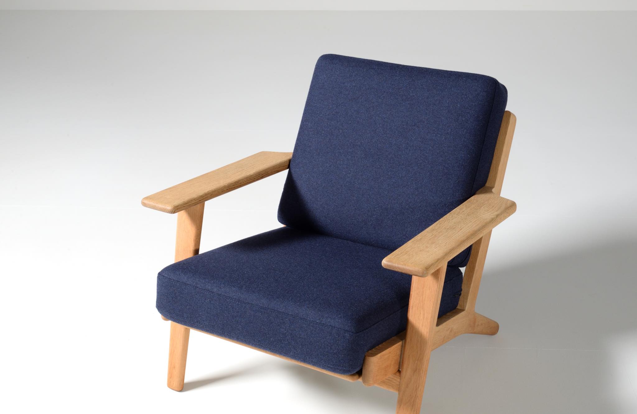 デンマークの巨匠デザイナー、Hans J. Wegner/ハンス・ウェグナーによるGE290イージーチェアです。近年デンマークの生地メーカー「Danish Art Weaving」のウールファブリックにて張り替えられた後、ショールームのような場所で飾られていましたが、ほとんど使用されなかったようでとても綺麗な状態です。
