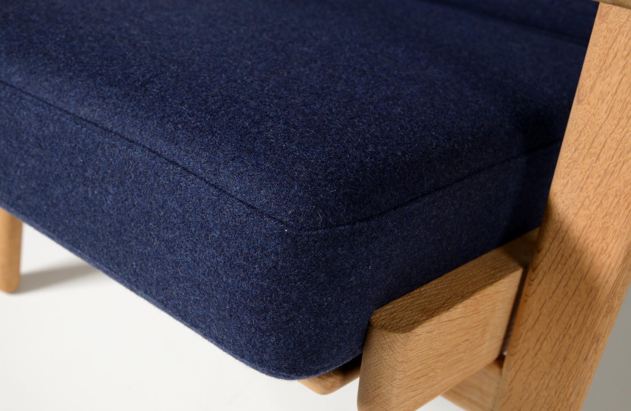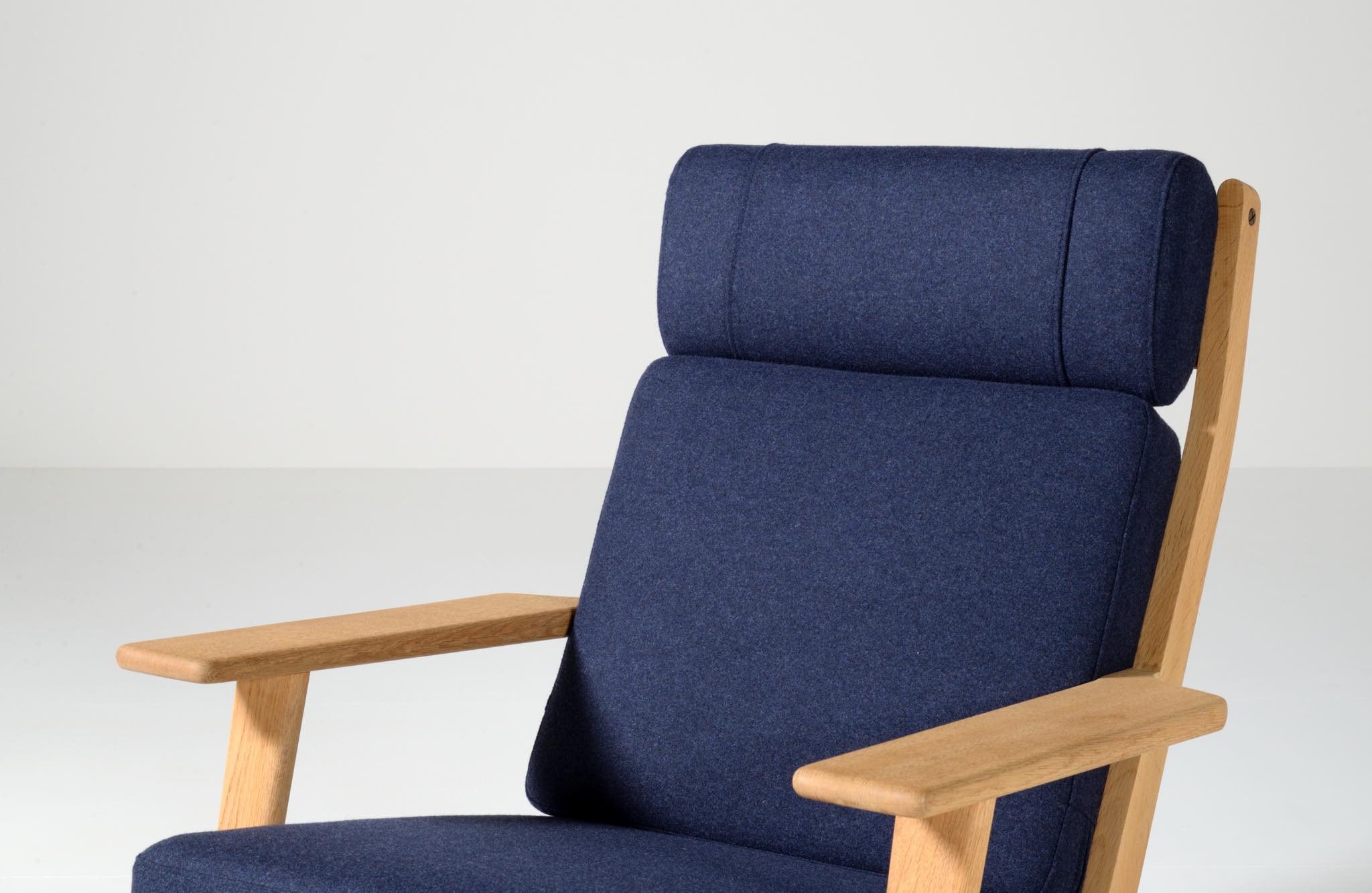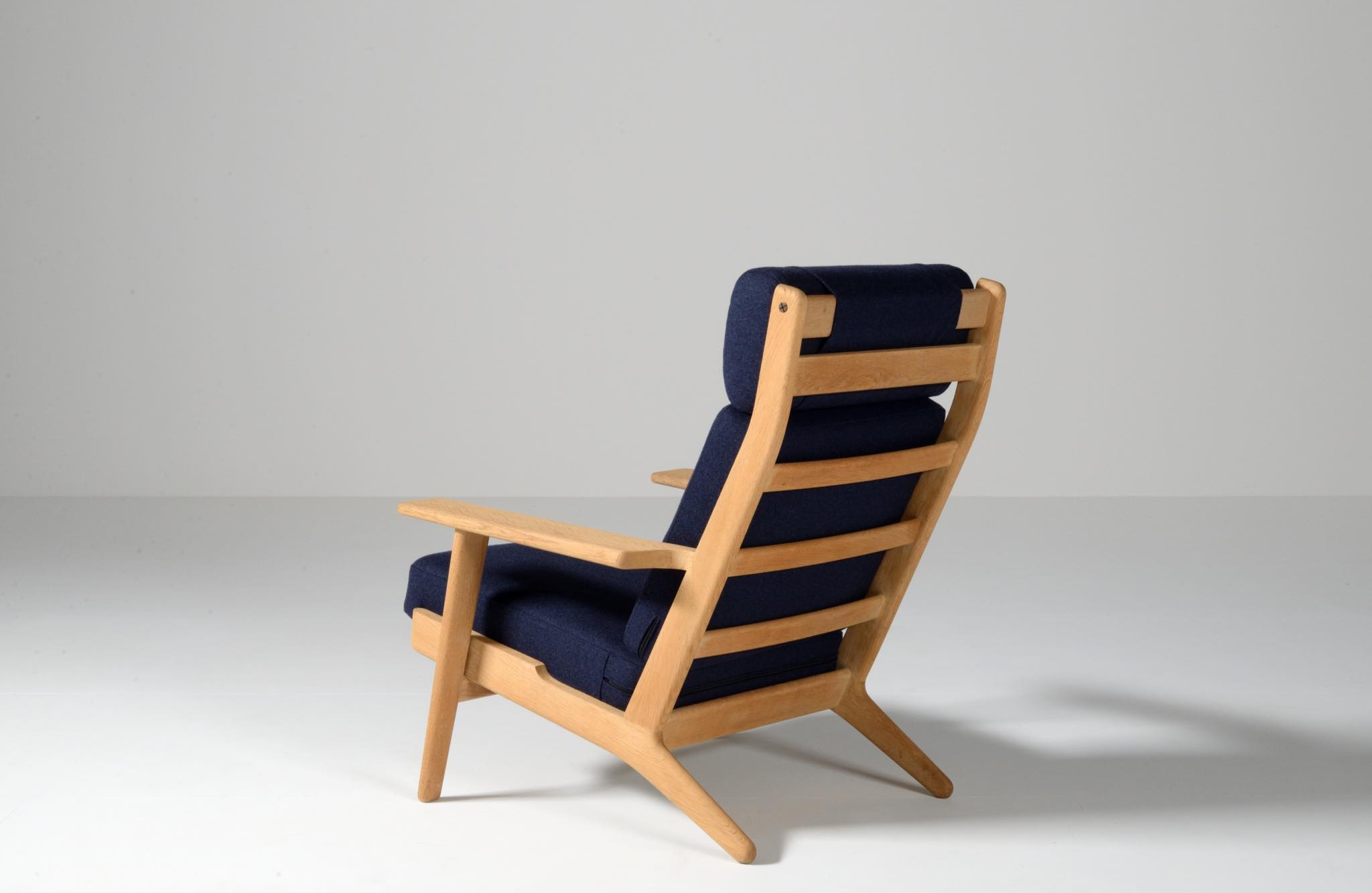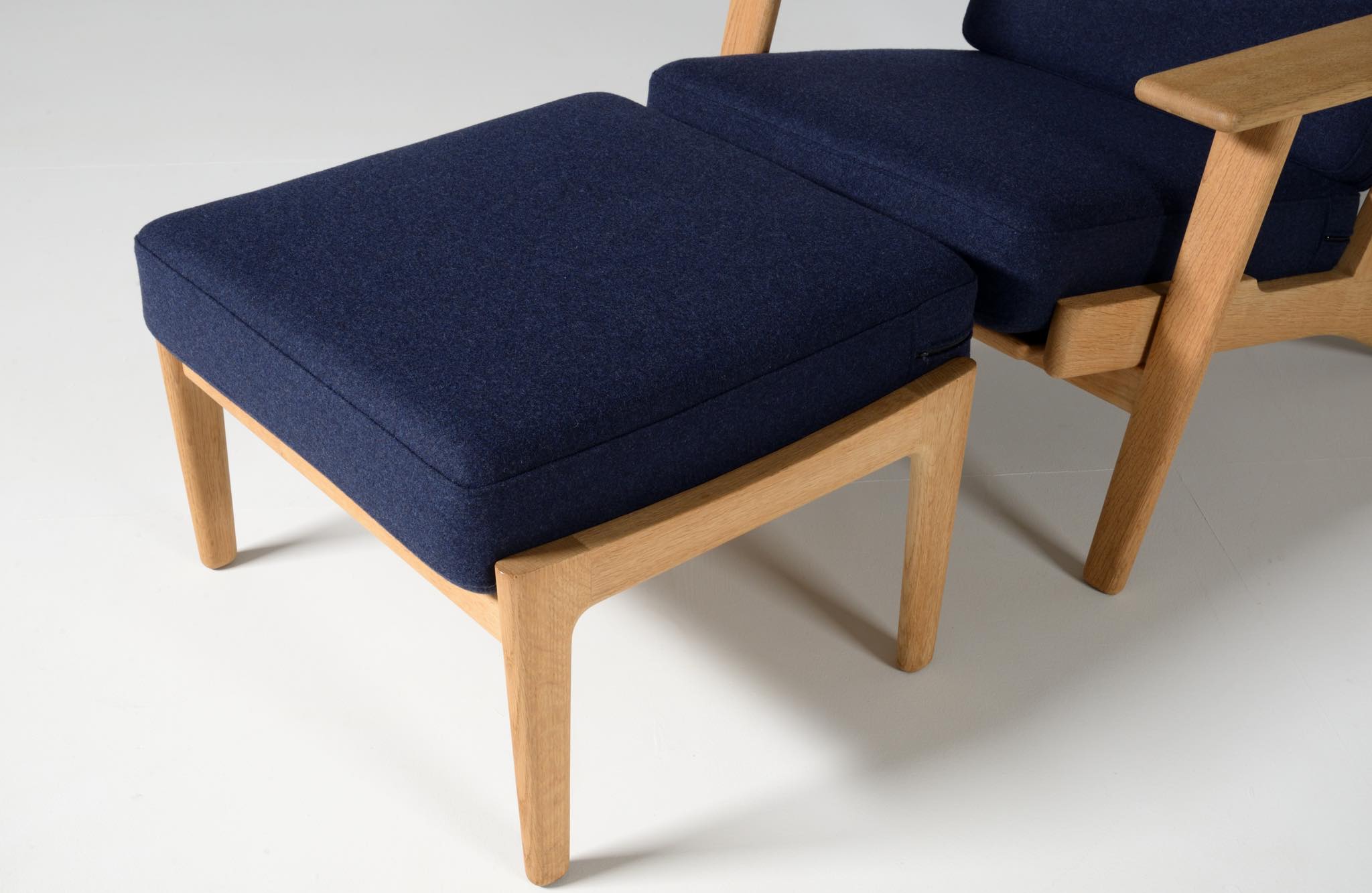 デンマークの巨匠デザイナー、Hans J. Wegner/ハンス・ウェグナーによるGE290ハイバックイージーチェアとフットスツールのセットです。近年デンマークの生地メーカー「Danish Art Weaving」のウールファブリックにて張り替えられた後、ショールームのような場所で飾られていましたが、ほとんど使用されなかったようでとても綺麗な状態です。こちらは椅子とフットスツールのセット販売となります。