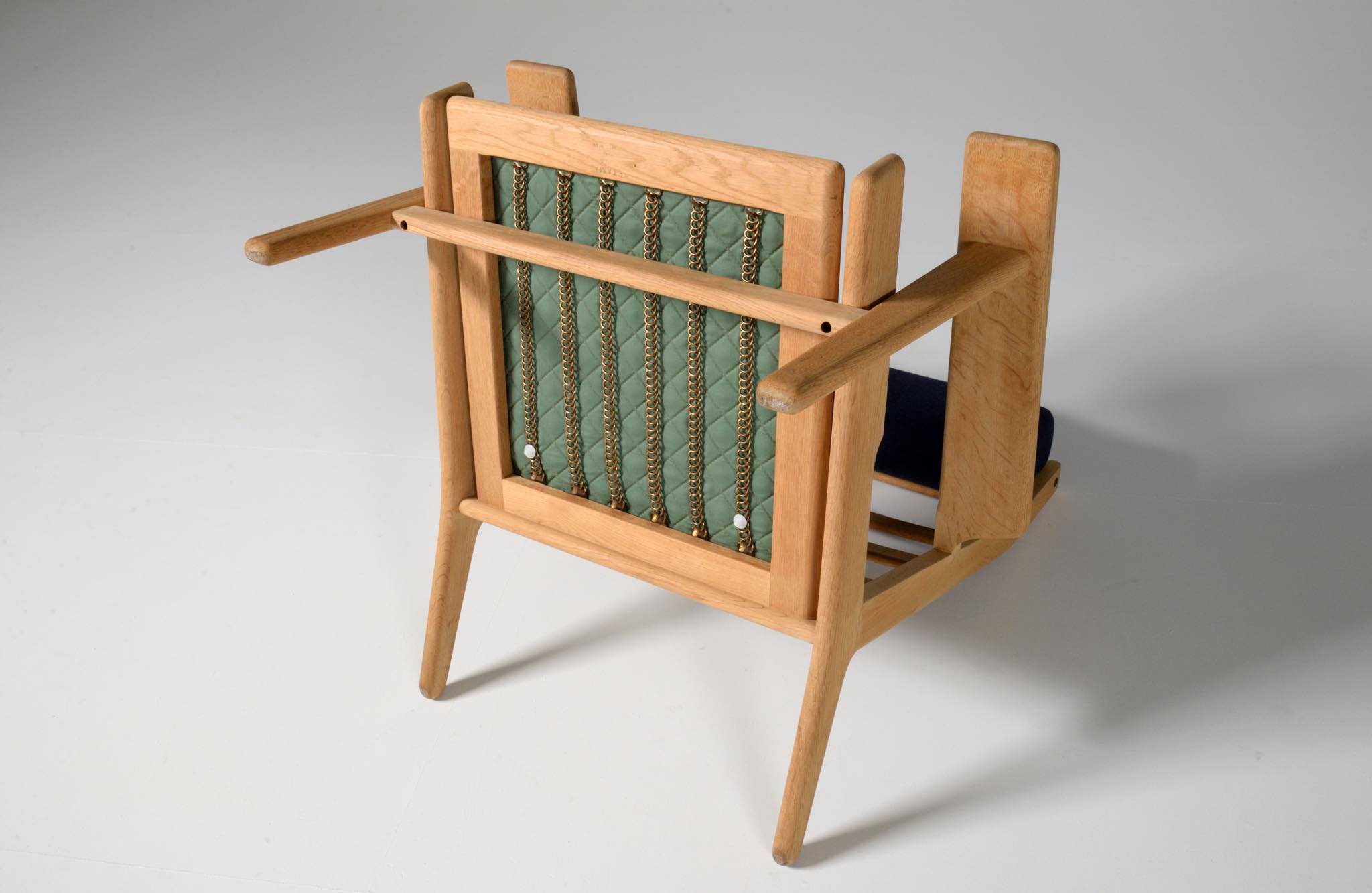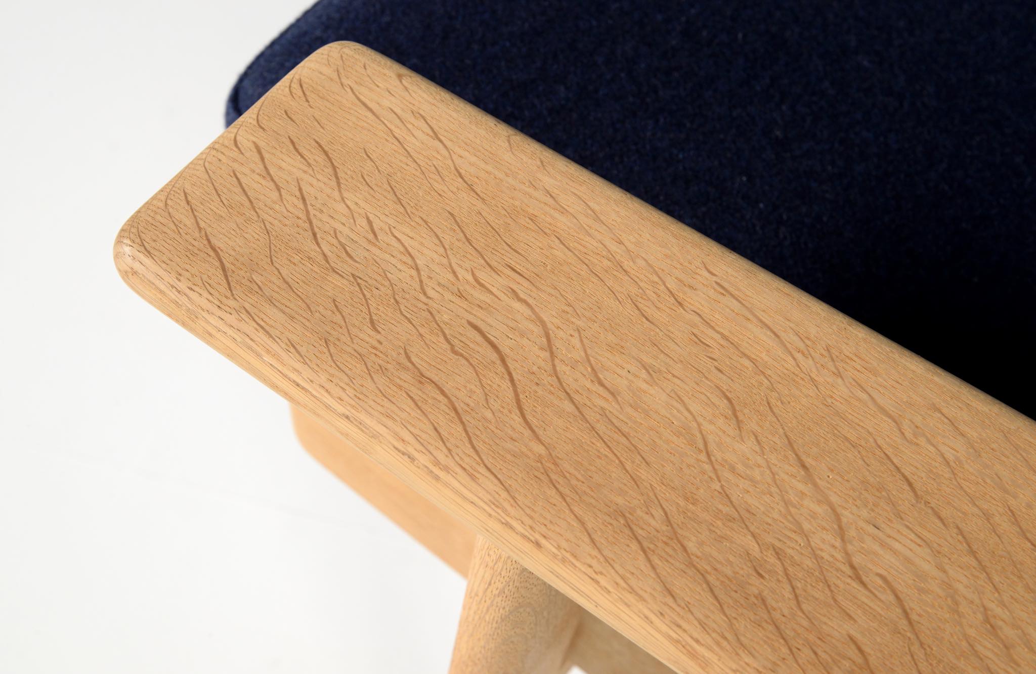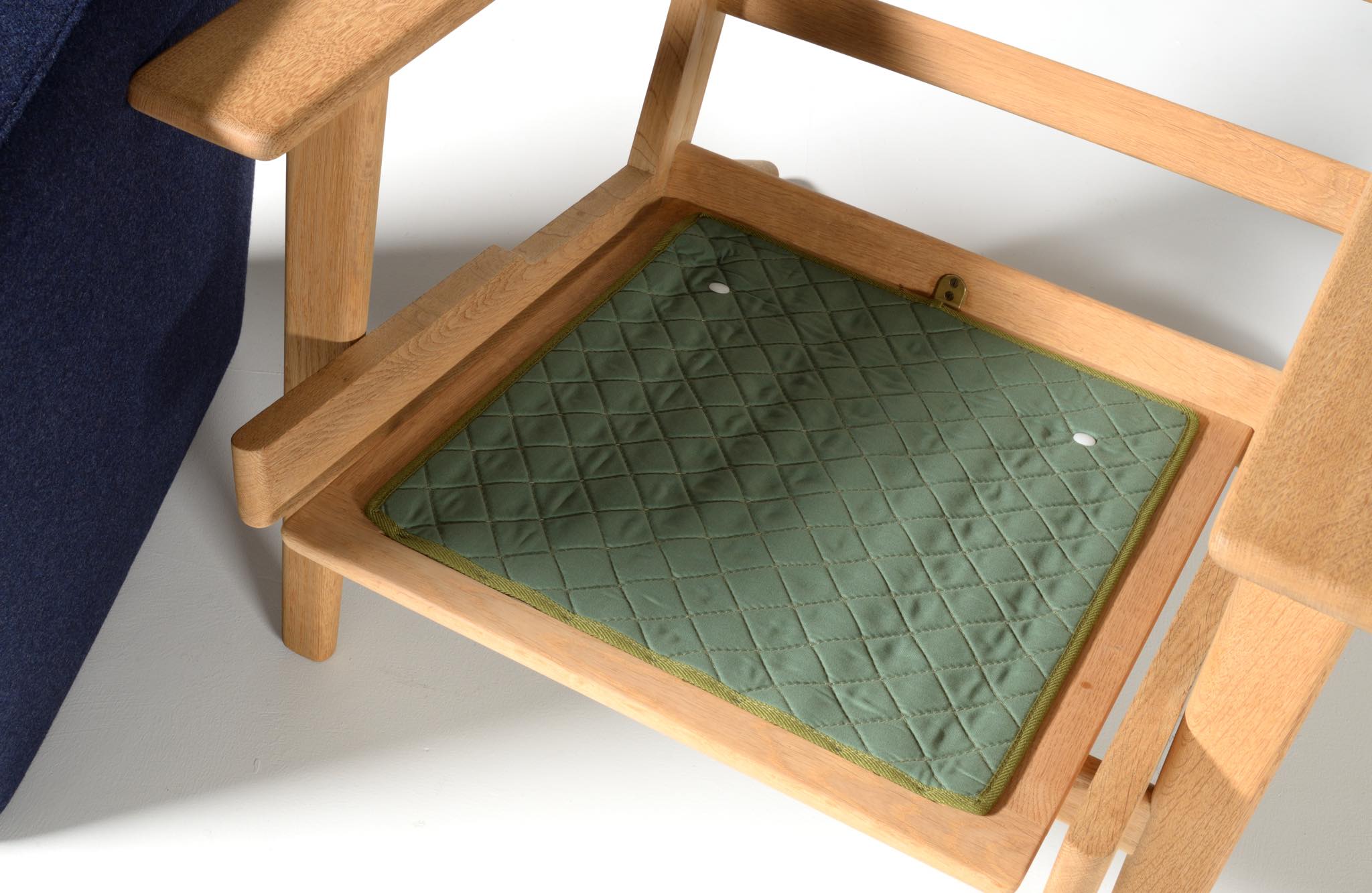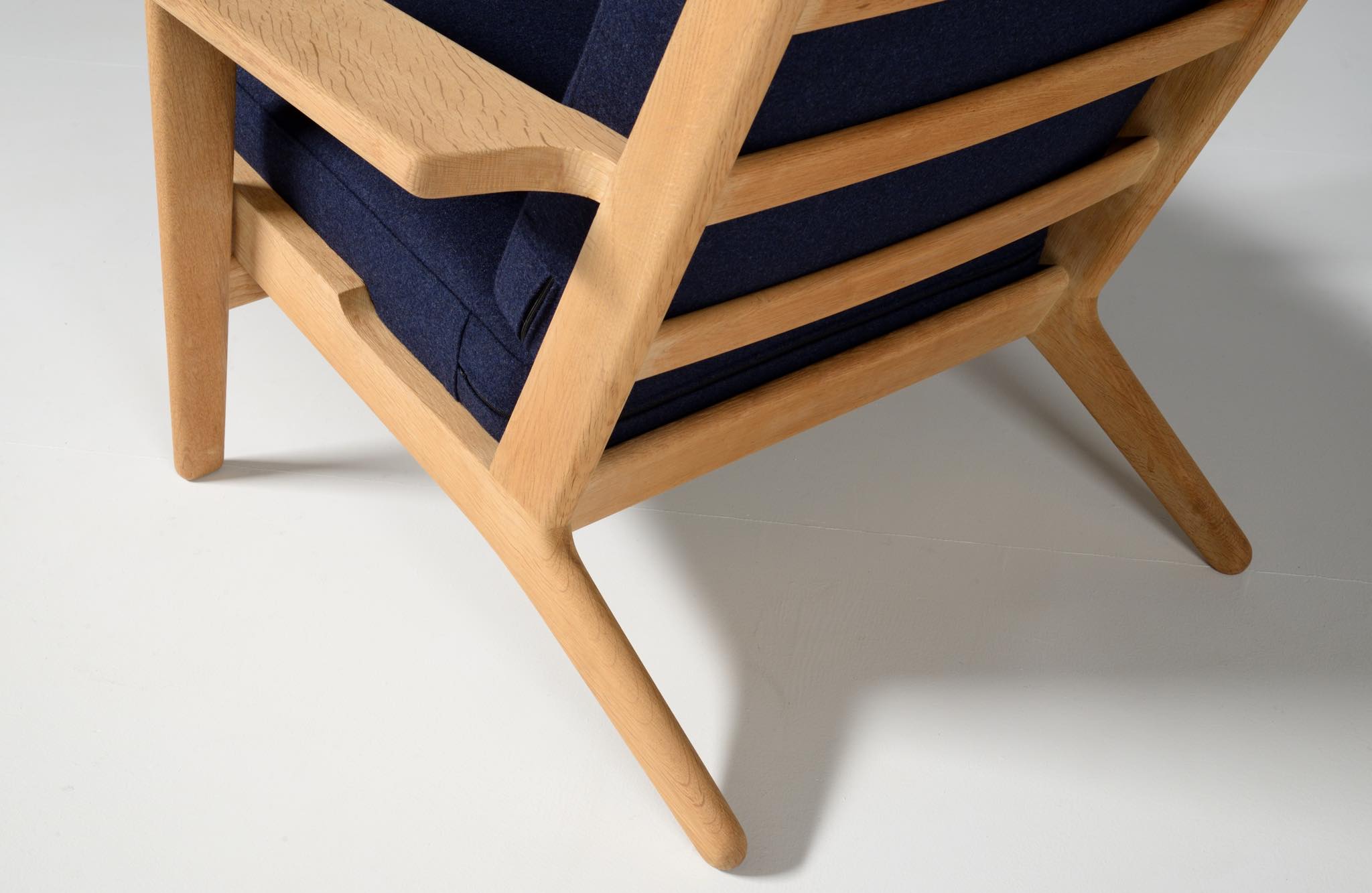 デンマークの巨匠デザイナー、Hans J. Wegner/ハンス・ウェグナーによるGE290ハイバックイージーチェアとフットスツールのセットです。近年デンマークの生地メーカー「Danish Art Weaving」のウールファブリックにて張り替えられた後、ショールームのような場所で飾られていましたが、ほとんど使用されなかったようでとても綺麗な状態です。こちらは椅子とフットスツールのセット販売となります。
