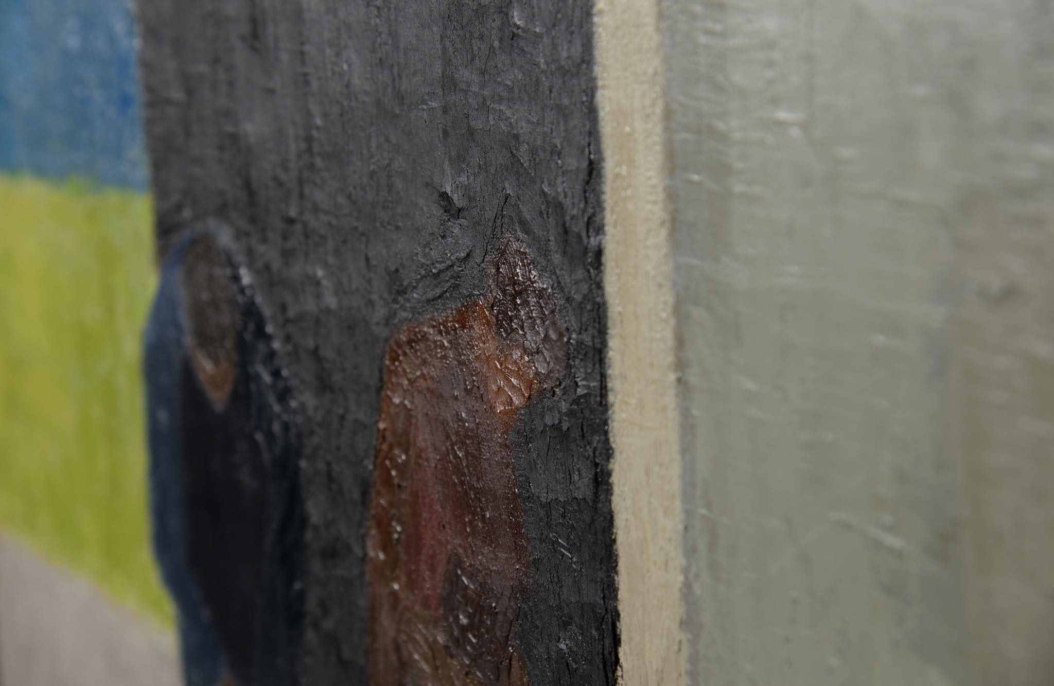 20世紀中葉に活躍したデンマーク、ボーンホルム島の画家、Axel Munch/アクセル・ムンクによる風景画油彩作品です。お天気に恵まれた作業日和、農夫たちのはたらく姿が独自の表現で描かれています。絵の具の一部に補修がありますが、きれいな状態です。