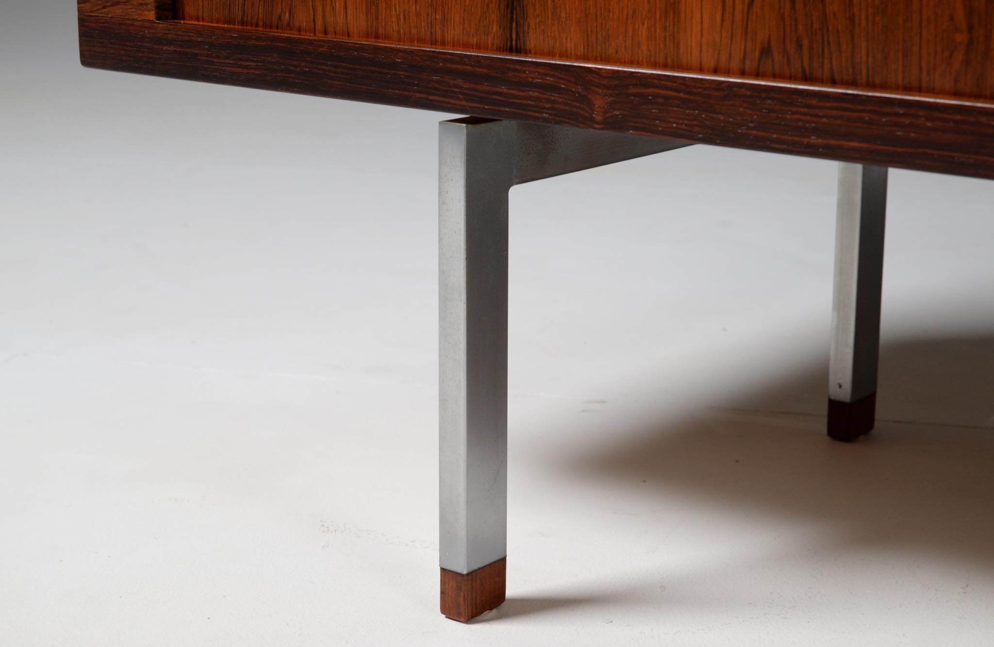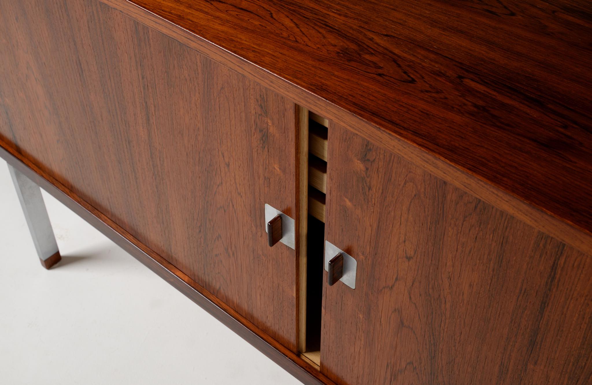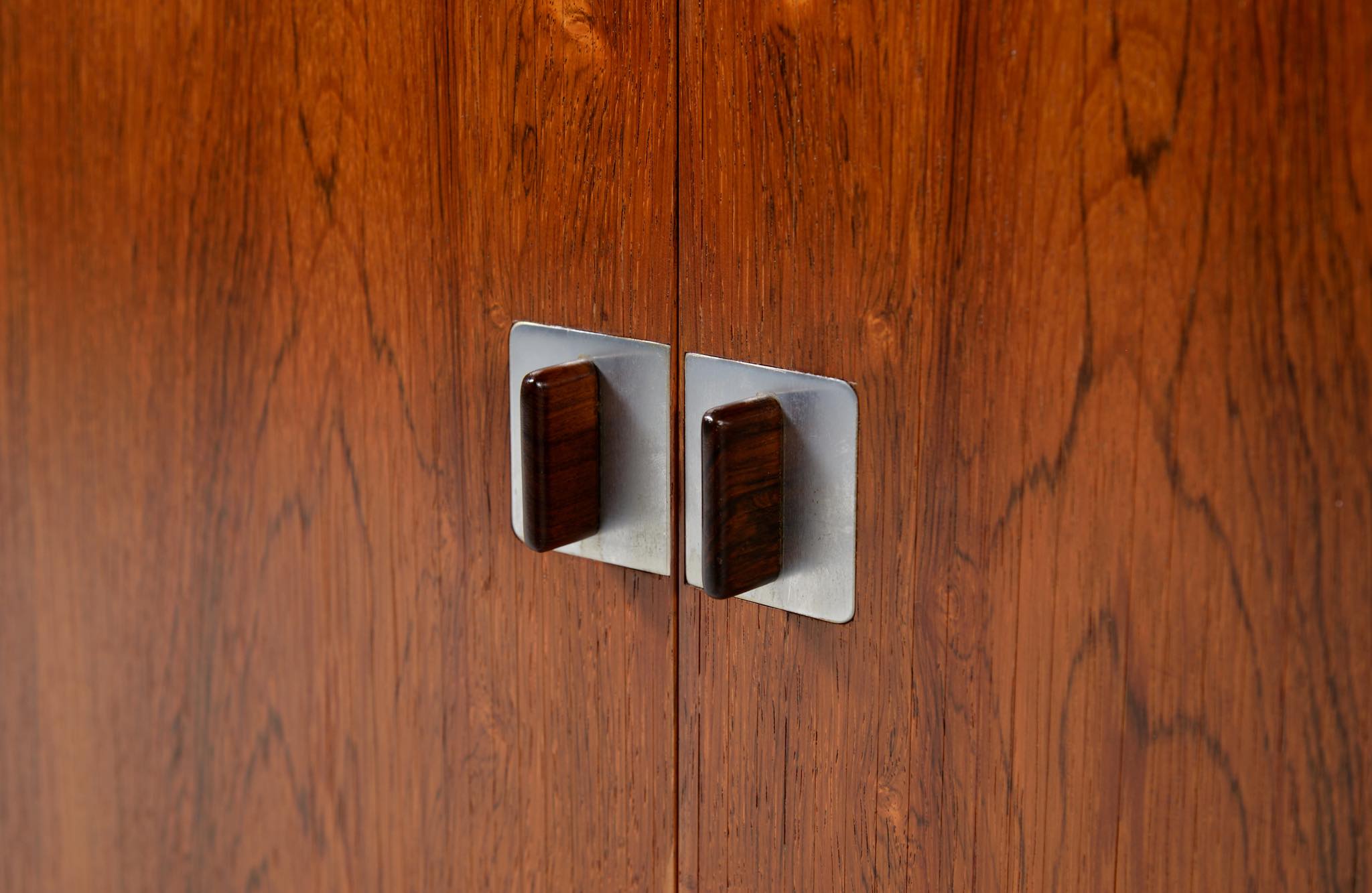 Hans J. Wegner/ハンス・ウェグナーによる RY25サイドボードキャビネット、ローズウッド材のタイプです。扉にはタンブールドアと称される蛇腹式で開閉する引戸を備えており、20世紀のデンマーク家具工芸の素晴らしさを垣間見ることができます。木取りも良く、コンディションは良好です。