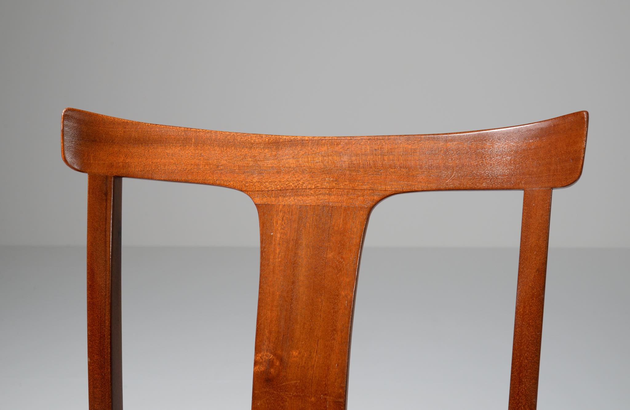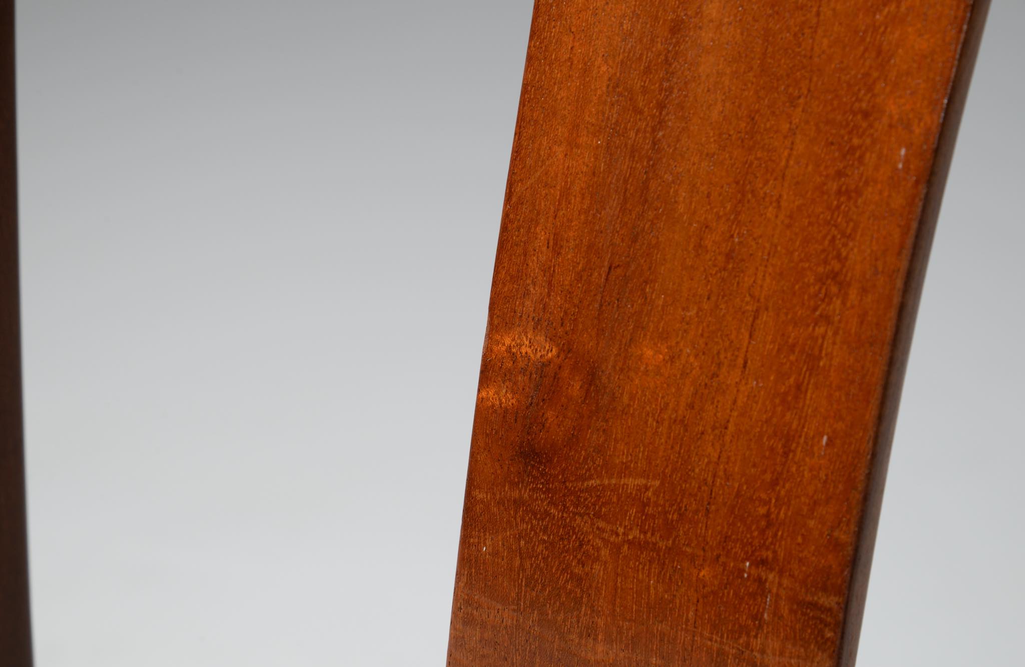 デンマークを代表する家具デザイナーのOle Wanscher/オーレ・ヴァンシャーによるベネディクトチェア、良質なマホガニー材を用いたタイプです。ヴァンシャーのプロダクトを手がけた名工 A.J.イヴァーセン工房によって1942年に発表されたモデルで、優雅なデザインの笠木が印象的です。こちらは1963年に発表された改良型で、よりシンプルなデザインとなっています。シートはオリジナルの皮革のまま、内部の緩衝材を入れ替えました。ヴィンテージコンディションとして良い状態です。