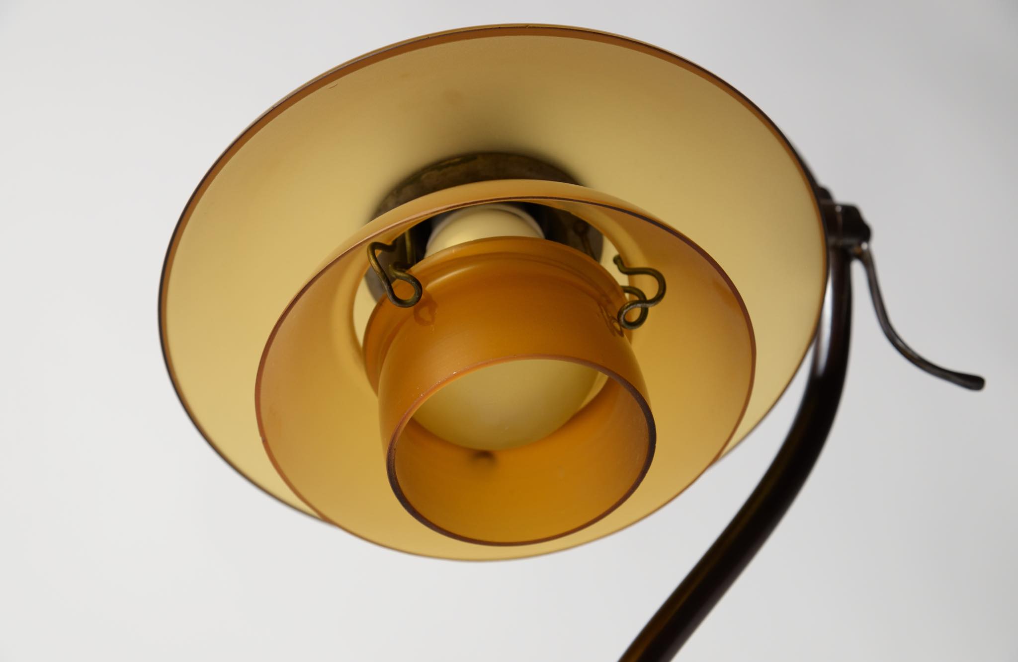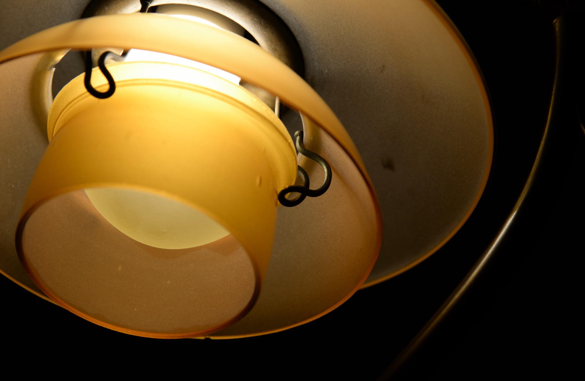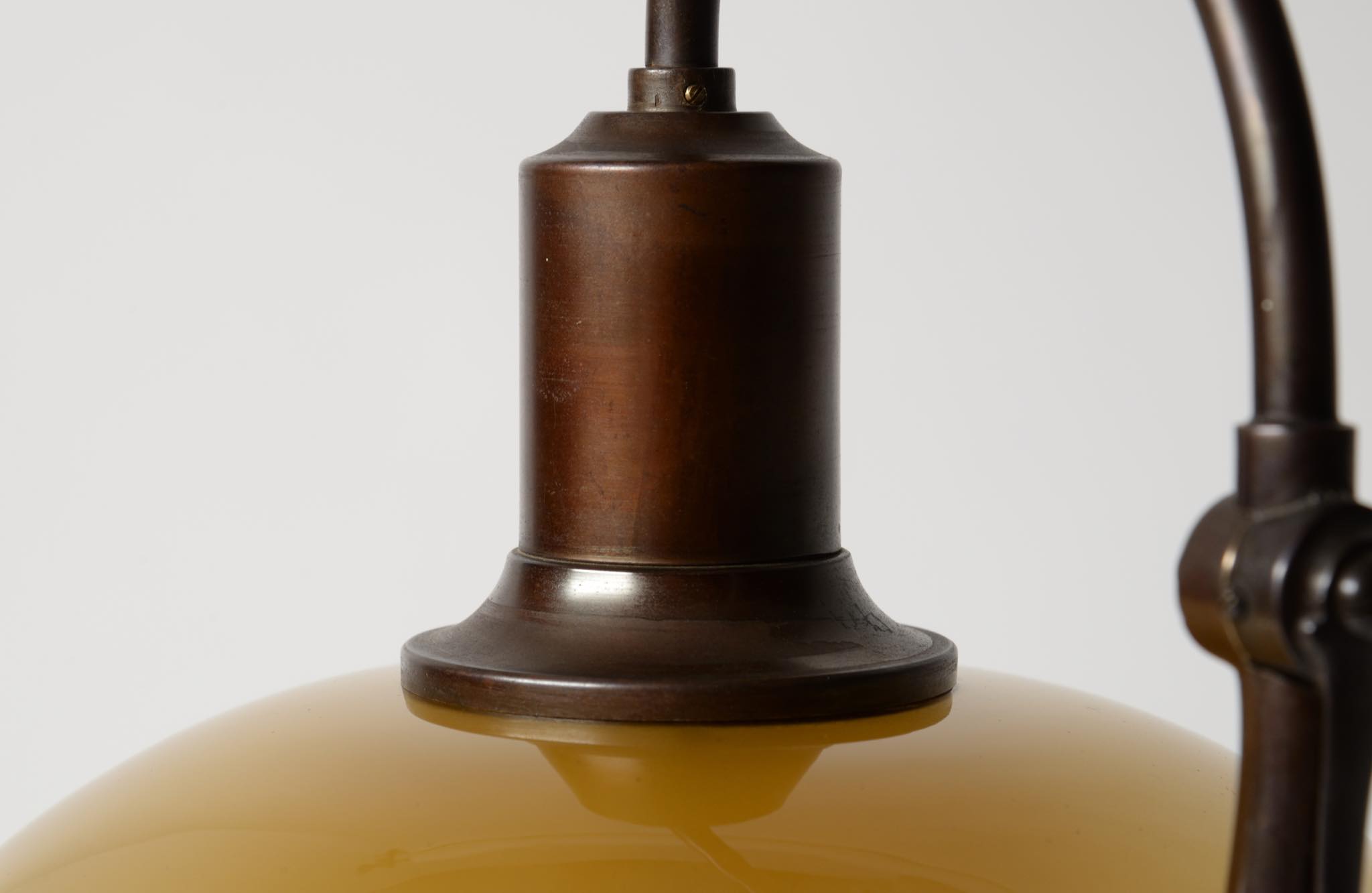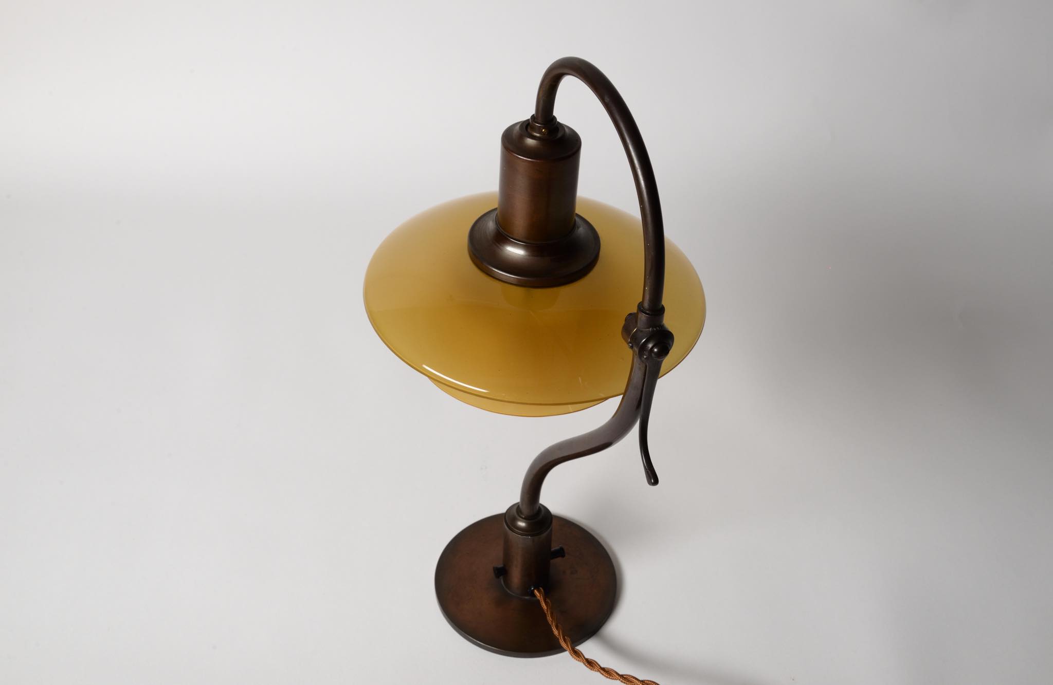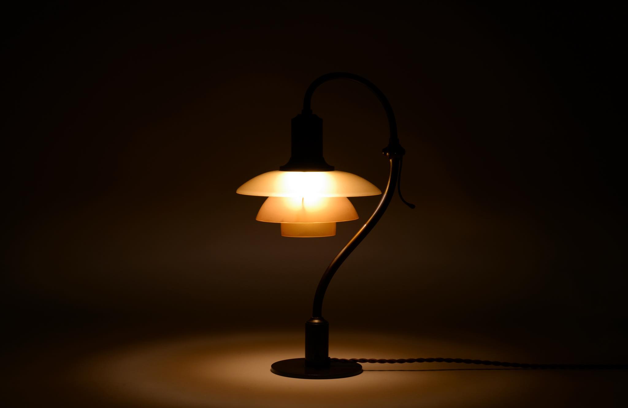 デンマークのデザイナー、Poul Henningsen/ポール・ヘニングセンによってデザインされたPH2/2テーブルランプです。このモデルは1931年から1950年までの期間製造されていたもので、通称”クエスチョンマーク”と呼ばれ、文字通り?型のフレームにシェードを吊るデザインです。リーディングに使いやすいよう、首を左右に倒す事が可能です。シェードはボトムボウルを備えたオリジナルで、コンディションは良好です。こちらのアイテムは、電気工事士資格保持者による配線等の確認、メンテナンス等を行なっておりますが、あくまでも観賞用としてご理解ください。