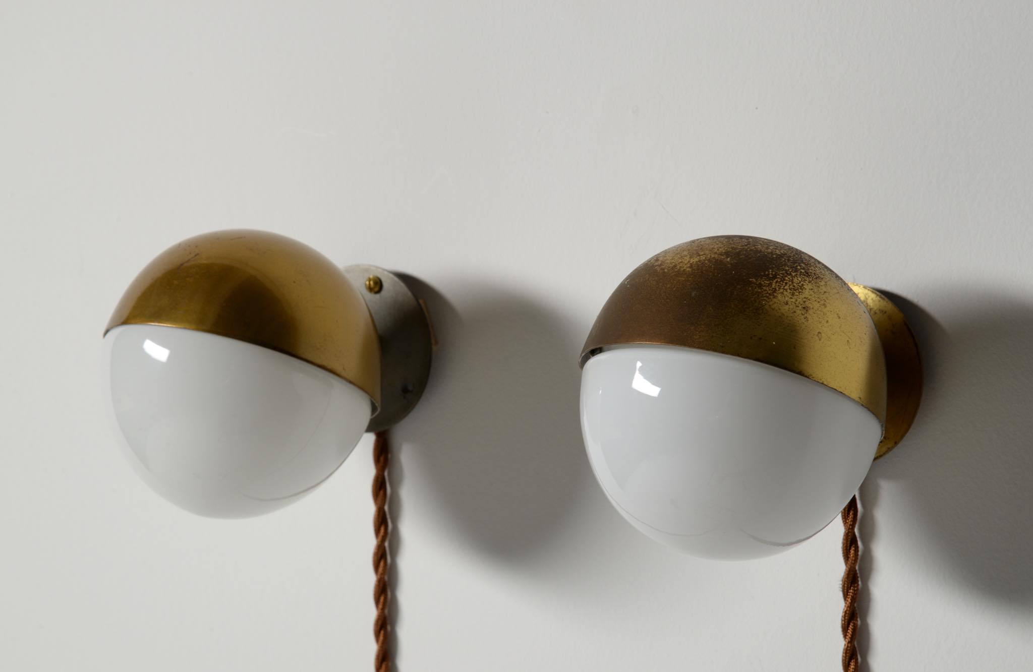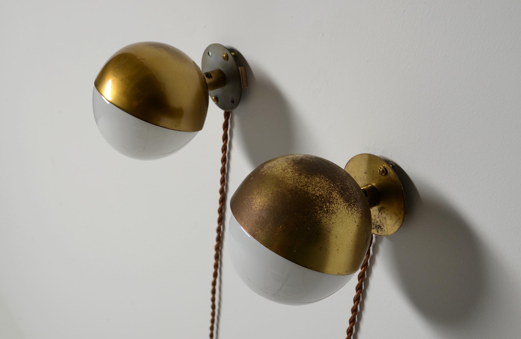 デンマークを代表する建築家、Vilhelm Lauritzen/ヴィルヘルム・ラウリッツェンによってデザインされたウォールランプ、スモールサイズです。ペアで入荷しましが、元々は別な場所で使われていたようで、それぞれのコンディションに差があるので個別販売とします。電気工事士資格保持者により配線等の確認、メンテナンスは行なっていますが、あくまでも観賞用としてご理解ください。
