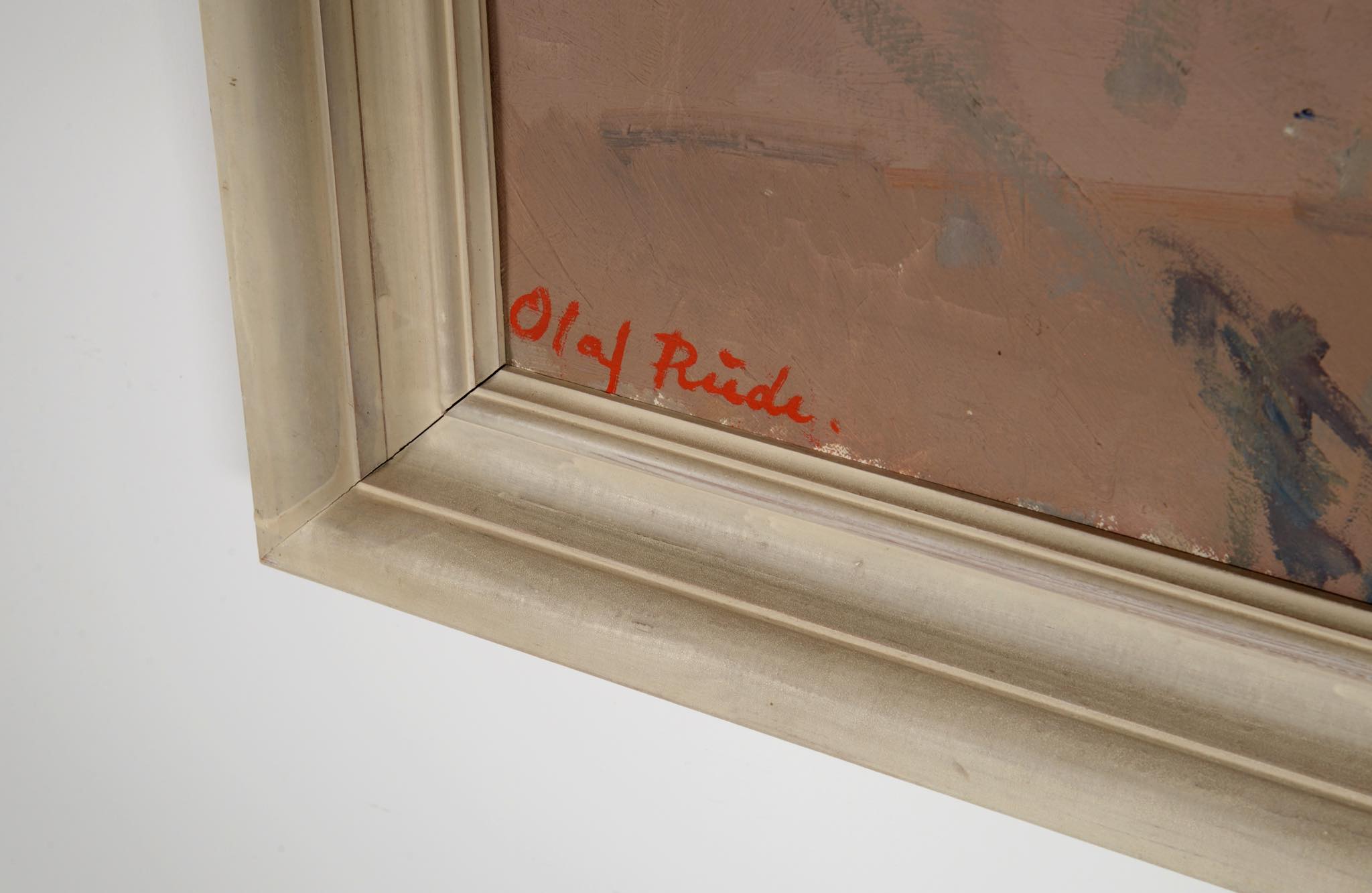 エストニアに生まれ、デンマークへ渡り活動。1905年、コペンハーゲン工科大学で学んだ後、Kunstnernes Frie Studieskoler/クンストナーネス・フリー・スタディスクールに於いてクリスチャン・サートマンやヨハン・ローデから美術の基礎を学びます。Kunstnernes Frie Studieskolerとは、それまで美術教育の中心的役割を担うデンマーク王立芸術アカデミーの教育方針に不満を抱いた学生らによって1882年に設立された美術学校で、美術教育に於いて王立アカデミーとは異なる代替プログラムを提供、デンマークの近代美術の中心的な機関として多くの芸術家を生み出し、1912年まで運営されました。Kunstnernes Frie Studieskolerを卒業したオラフ・ルードは、1911年にパリへ渡り、ポール・セザンヌの影響を受けます。また、デンマークへの帰国後、第一次世界大戦の時代に、形式や線、そして色彩に焦点を当てた表現を試みました。1919年にはBornholm島に移り、風景画を中心に描きます。オラフはデンマークに於けるモダニズムのひとりであり、鮮やかな色彩を風景画に用いたため、"デンマークのマティス" と呼ばれることもありました。1953年から1956年まで王立デンマーク美術学院の教授を務めました。