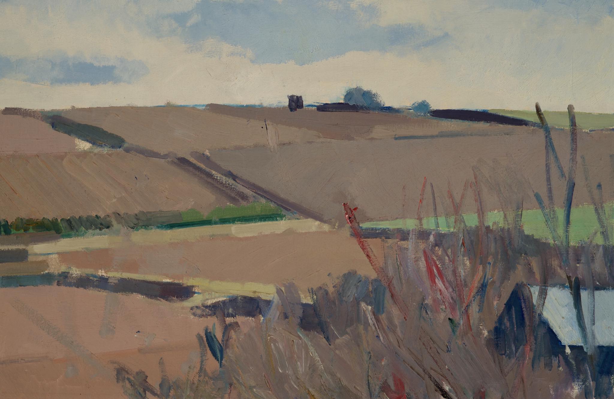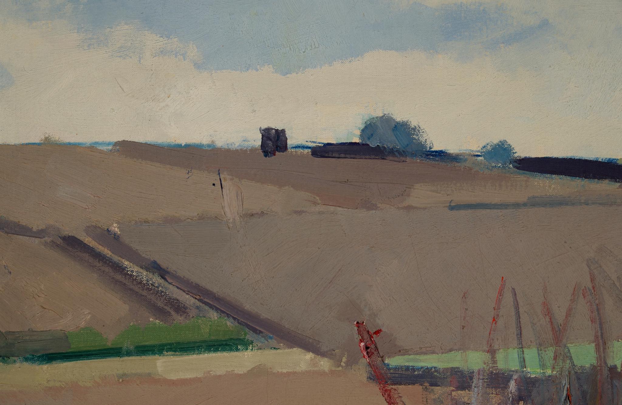 デンマークの画家、Olaf Rude/オラフ・ルードによる油彩作品です。早春の頃の田園風景を描いたものでしょう。絵の具でラフに塗装された木製のフレームはオリジナルではないかと思われ、作品に良く合っています。コンディションは良好です。