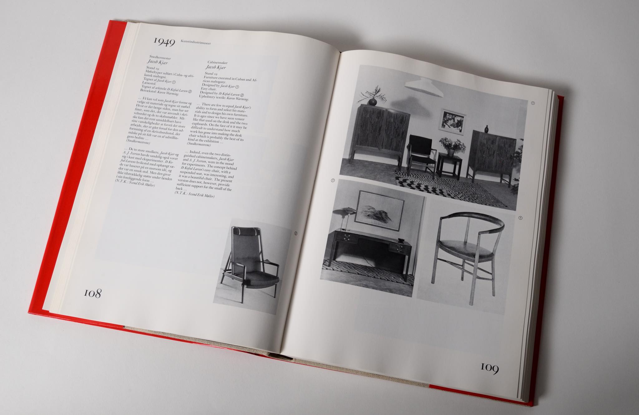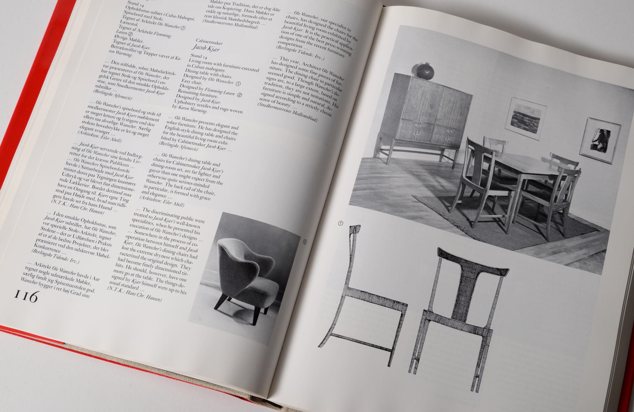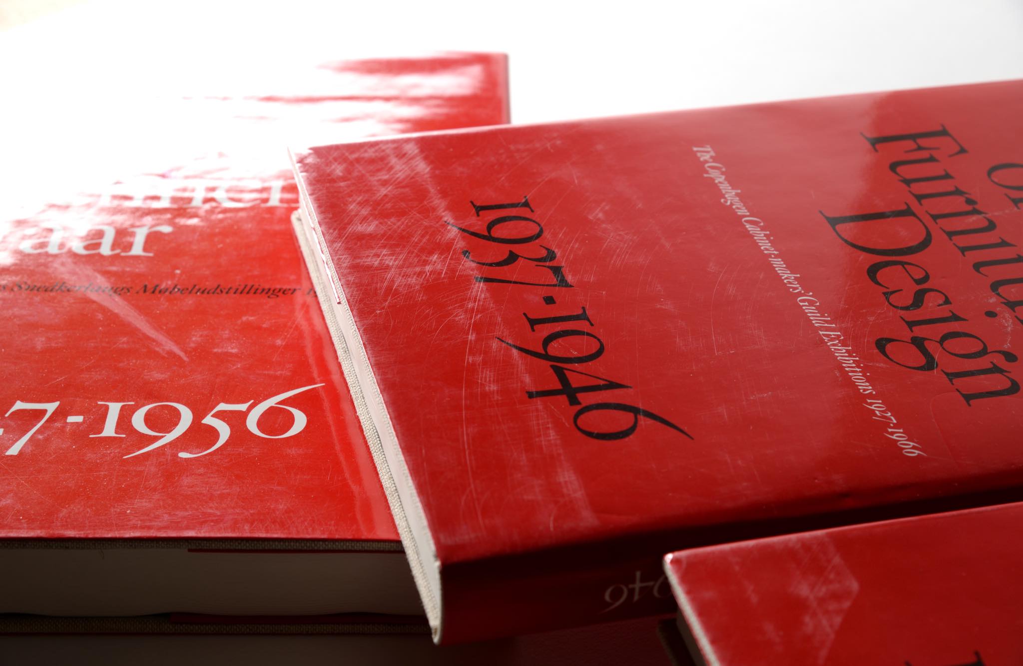 デンマークを代表する家具デザイナーの Grete Jalk/グレーテ・ヤルクによって1987年に出版された、デンマーク家具工芸展覧会の資料 ”40 Years of Danish Furniture Design”、通称『赤い本』です。この書籍は、1926年から40年間続いた家具工芸の年次展示会で発表されたすべての展示記録をまとめた図録で、1780枚のモノクロ写真とイラストを含む 全1372ページ、4巻からなる貴重な資料となります。