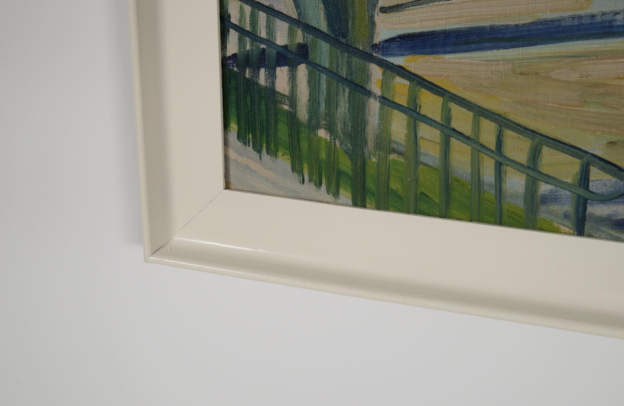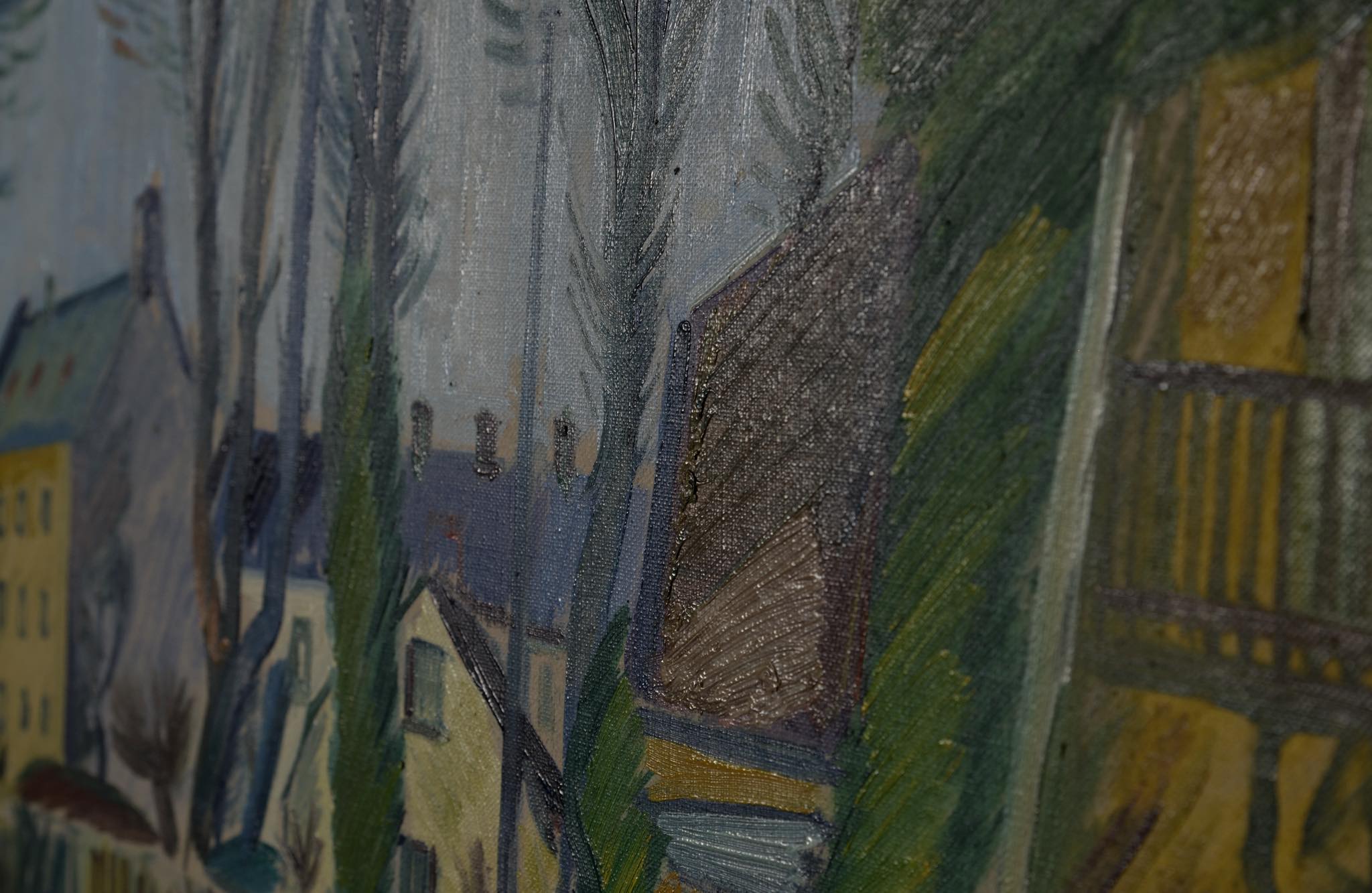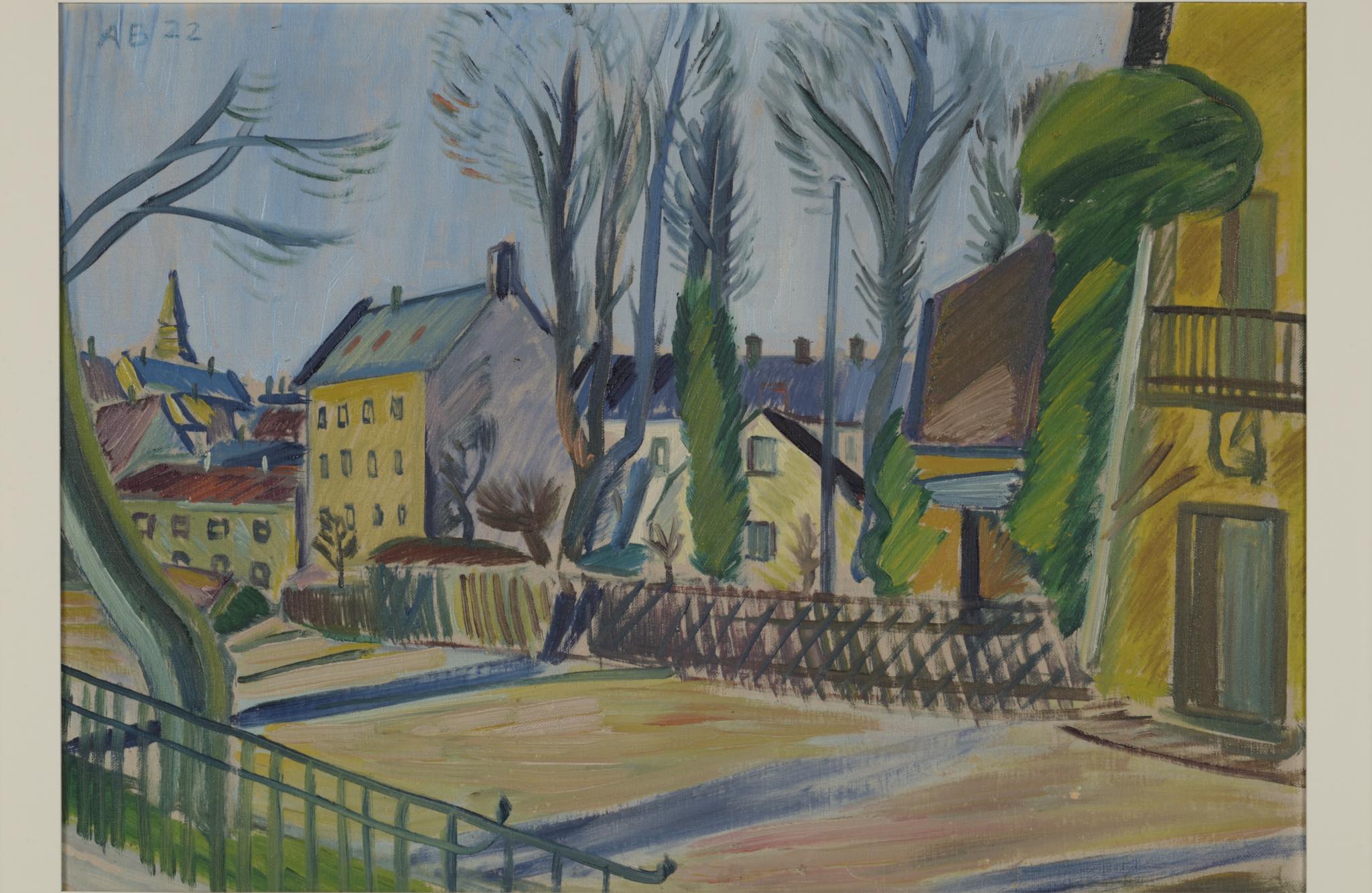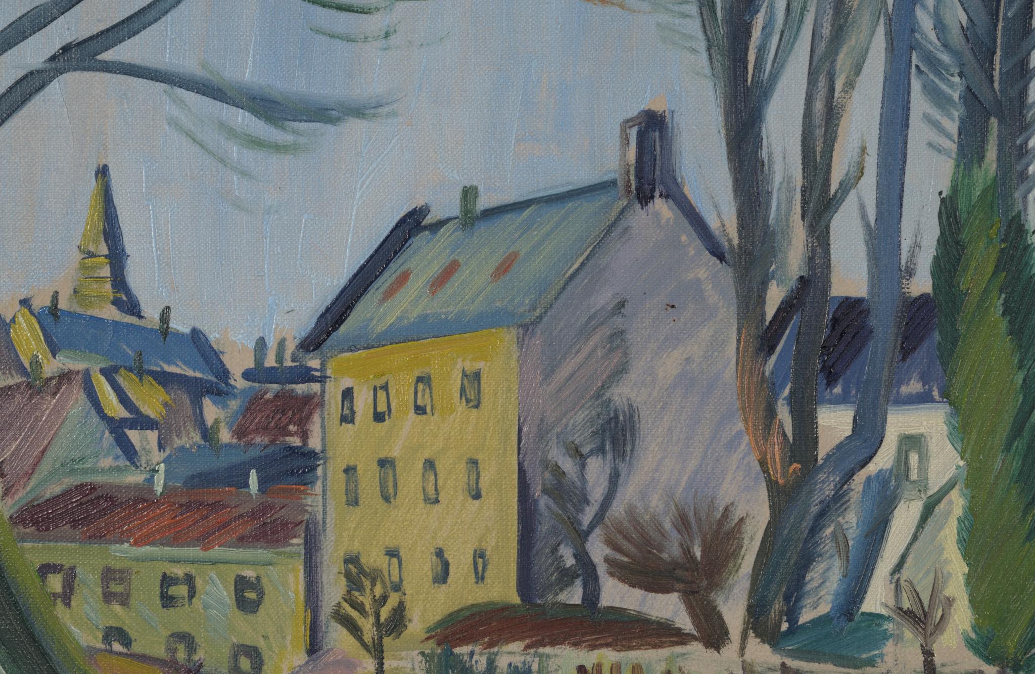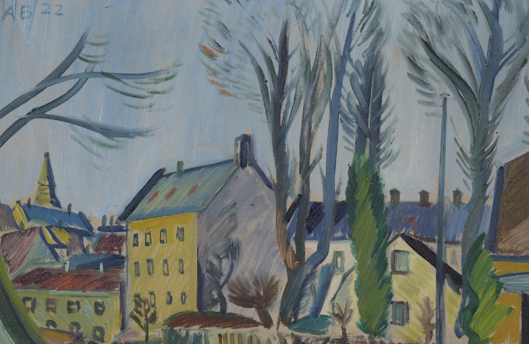 デンマークの画家、Axel Bentzen/アクセル・ベンツェンによる風景画油彩作品です。1922年と早い頃の作品で、今からちょうど100年前に描かれたものです。素早い筆致で街並みを描いており、当時としては斬新な表現だったのではないでしょうか。フレームはオリジナルと思われ、コンディションは良好です。