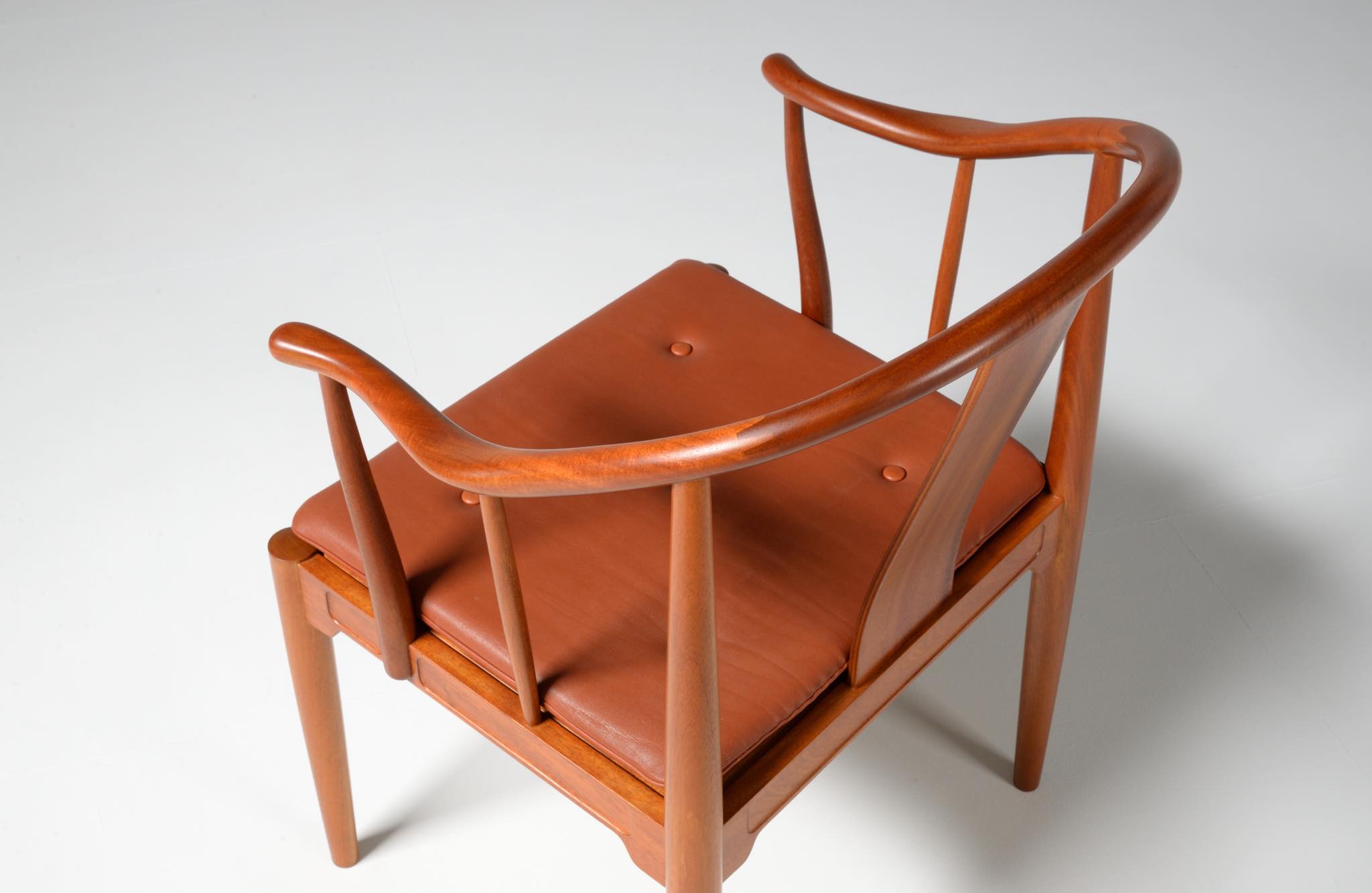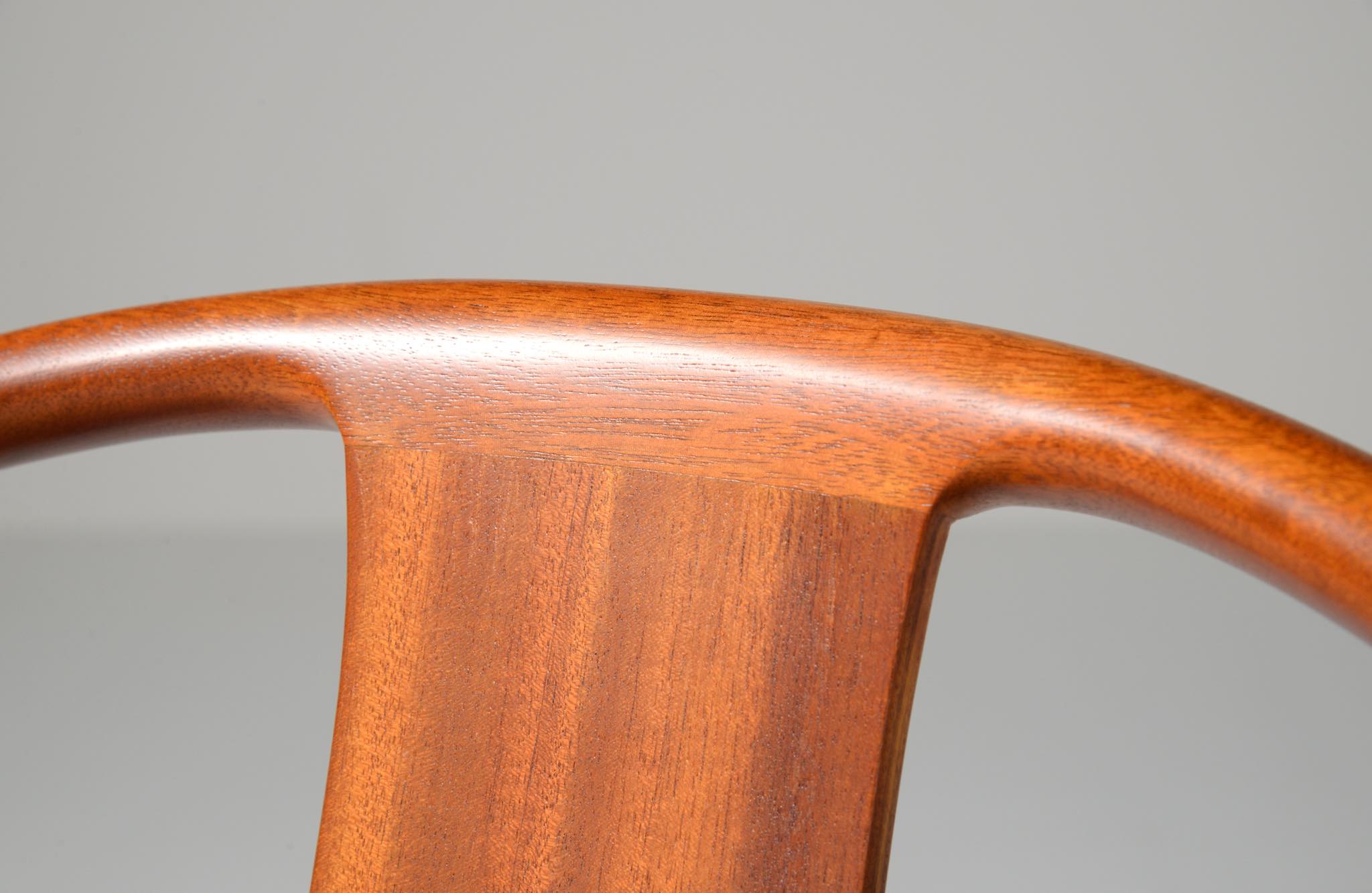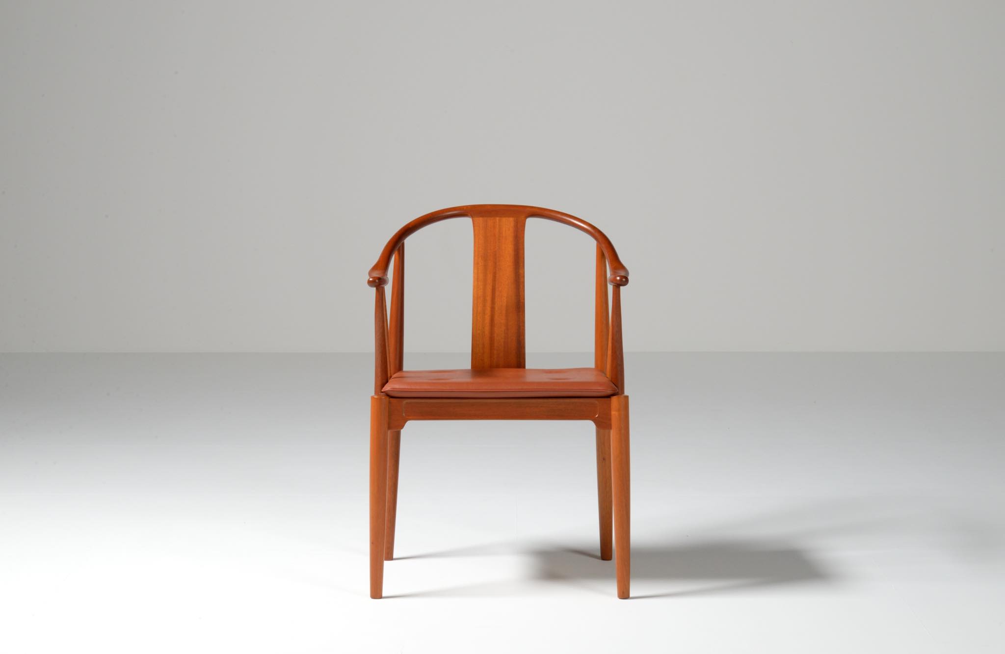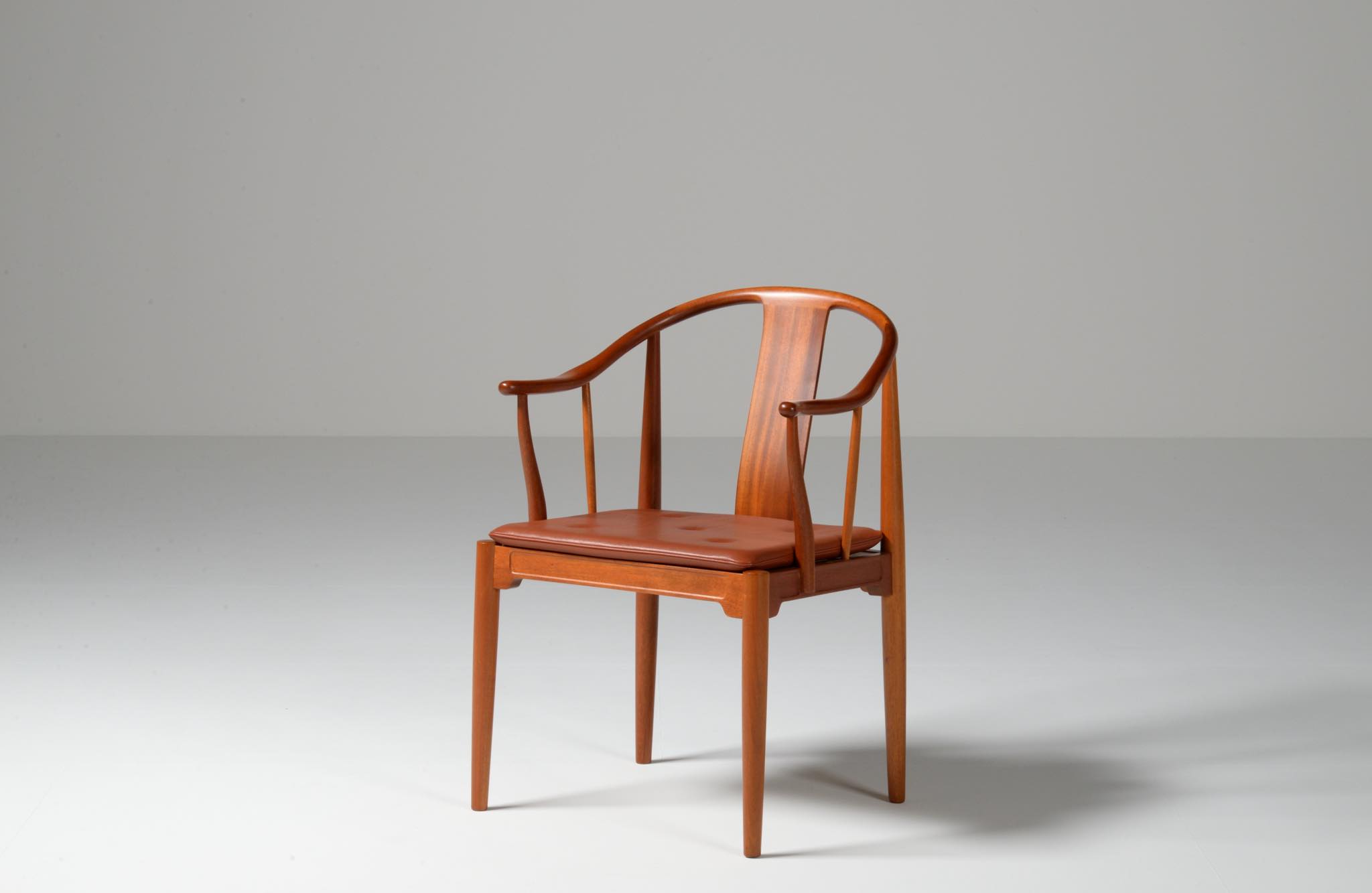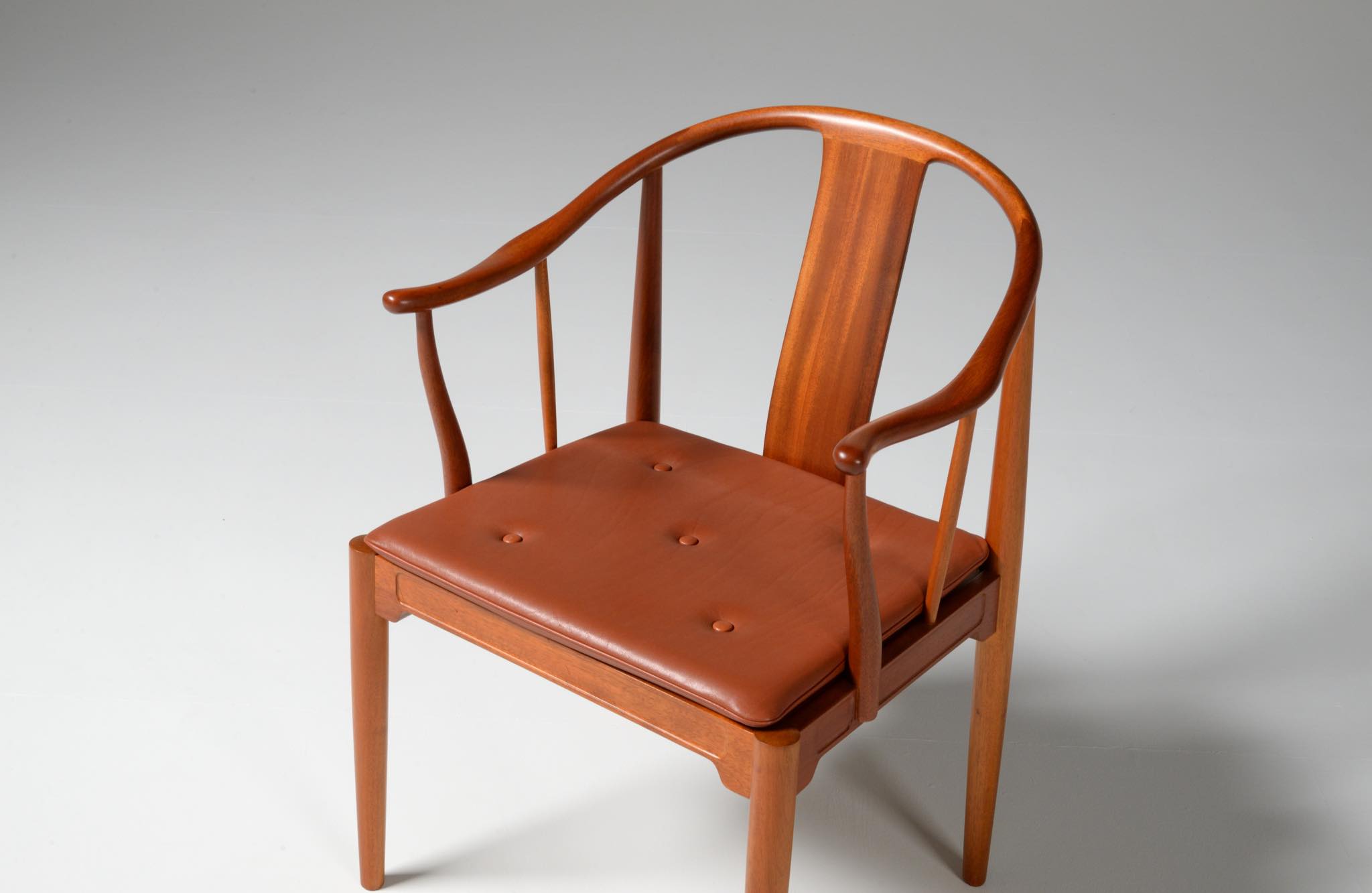 Hans J. Wegner/ハンス・ウェグナーによって1944年に発表された名作椅子 ”チャイナチェア” 、現在では廃番となっているマホガニー材のモデルです。中国明王朝時代の肘付椅子(圏椅/クワン・イ)をリ・デザインしたモデルで、ウェグナーの代表作のひとつとされています。オリジナルのクッションは劣化もなく良い雰囲気です。