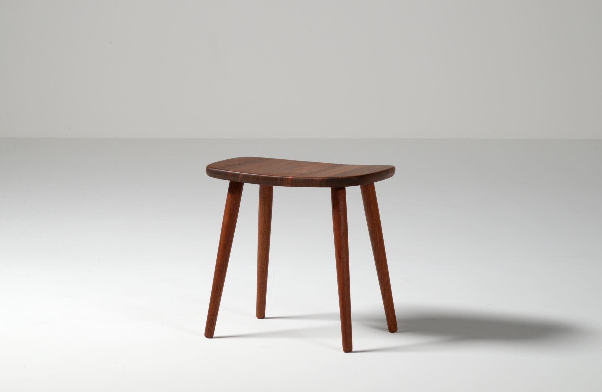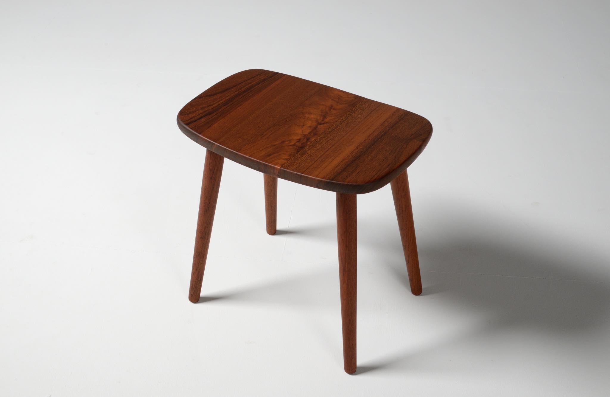 デンマークで作られたチーク材のスツールです。1950~60年代頃のものでしょうか。詳しい工房等は分かっておりませんが、良質なチークの無垢材を集成して作られており、作りはしっかりとしています。