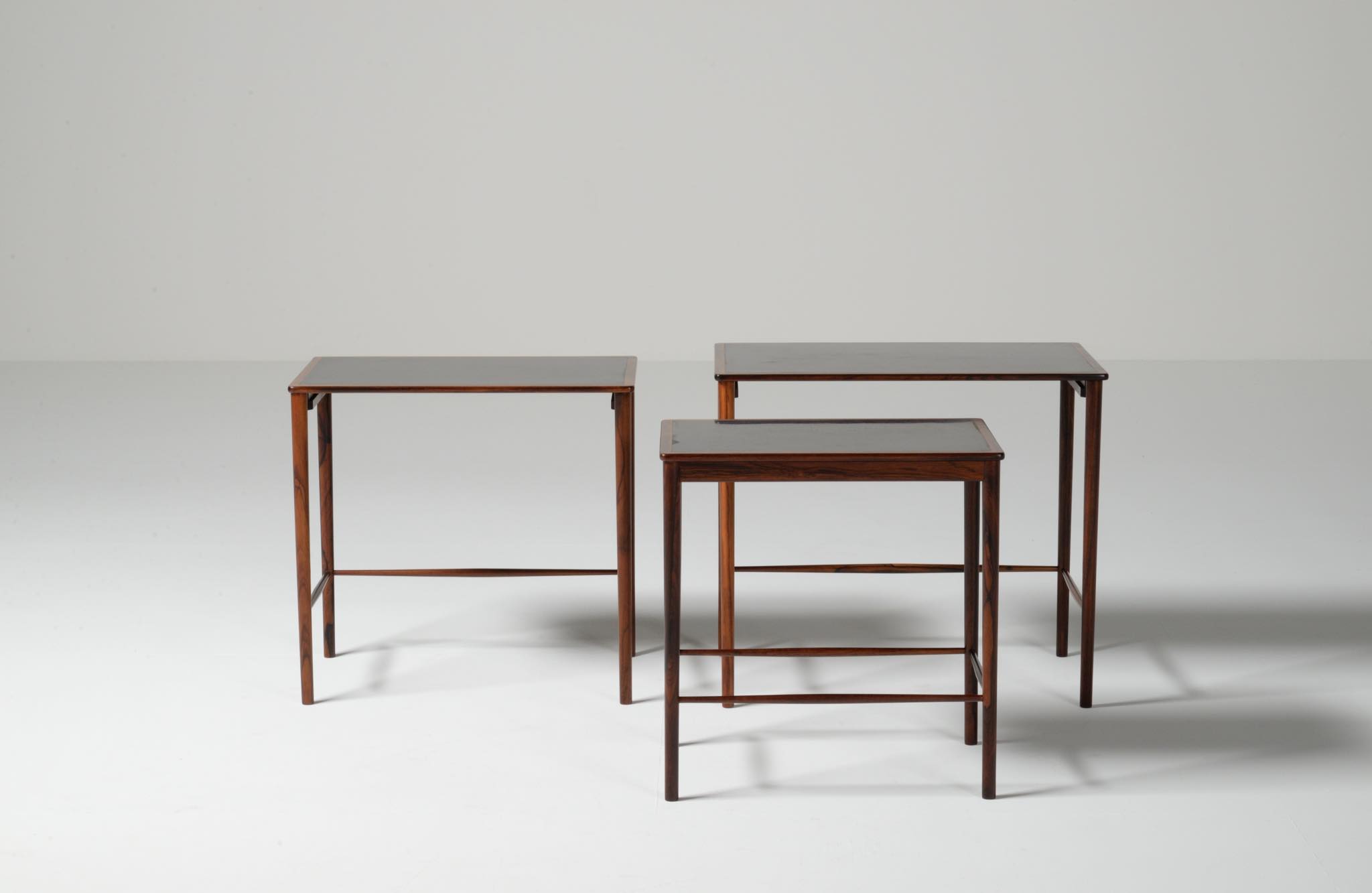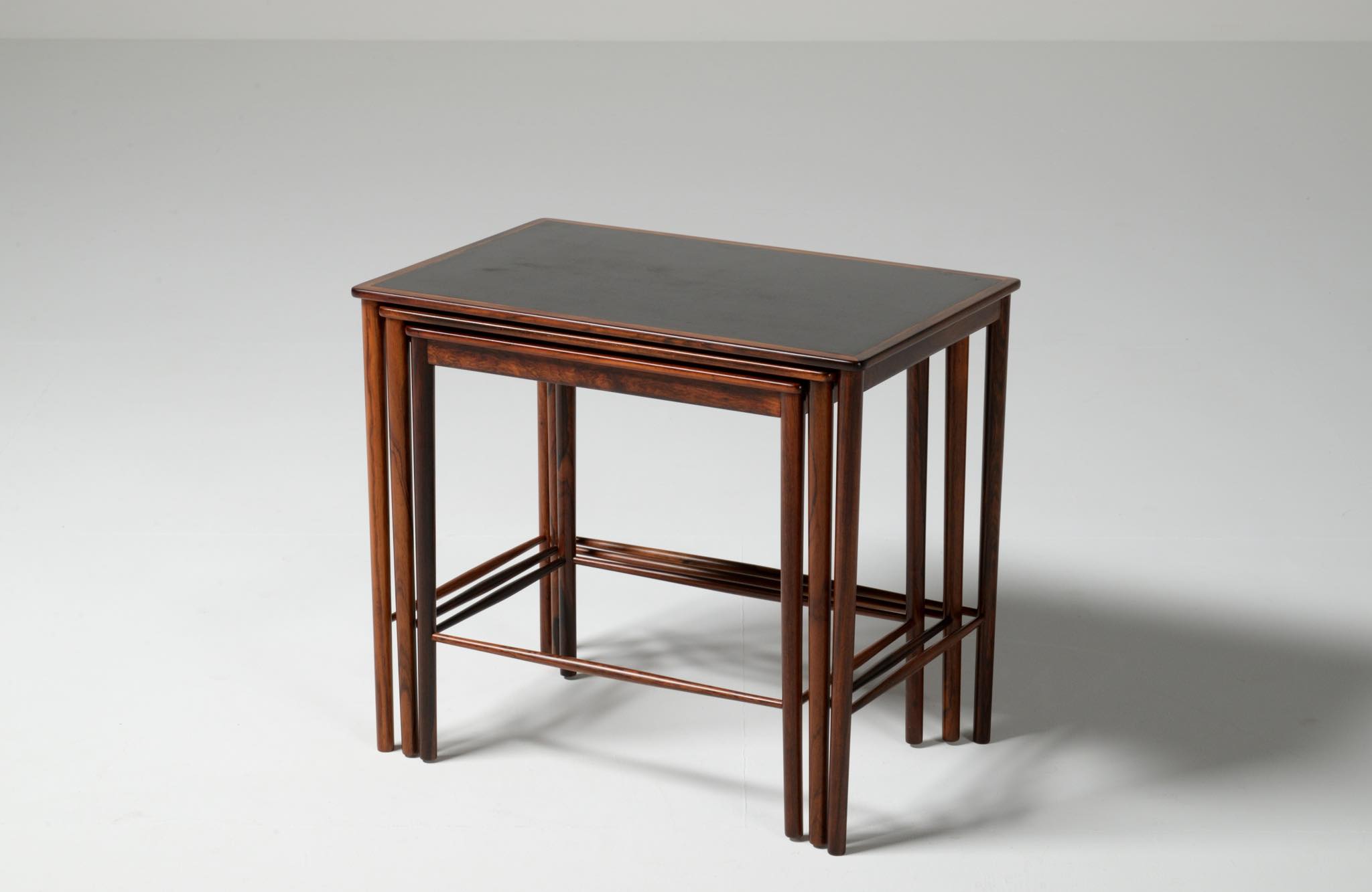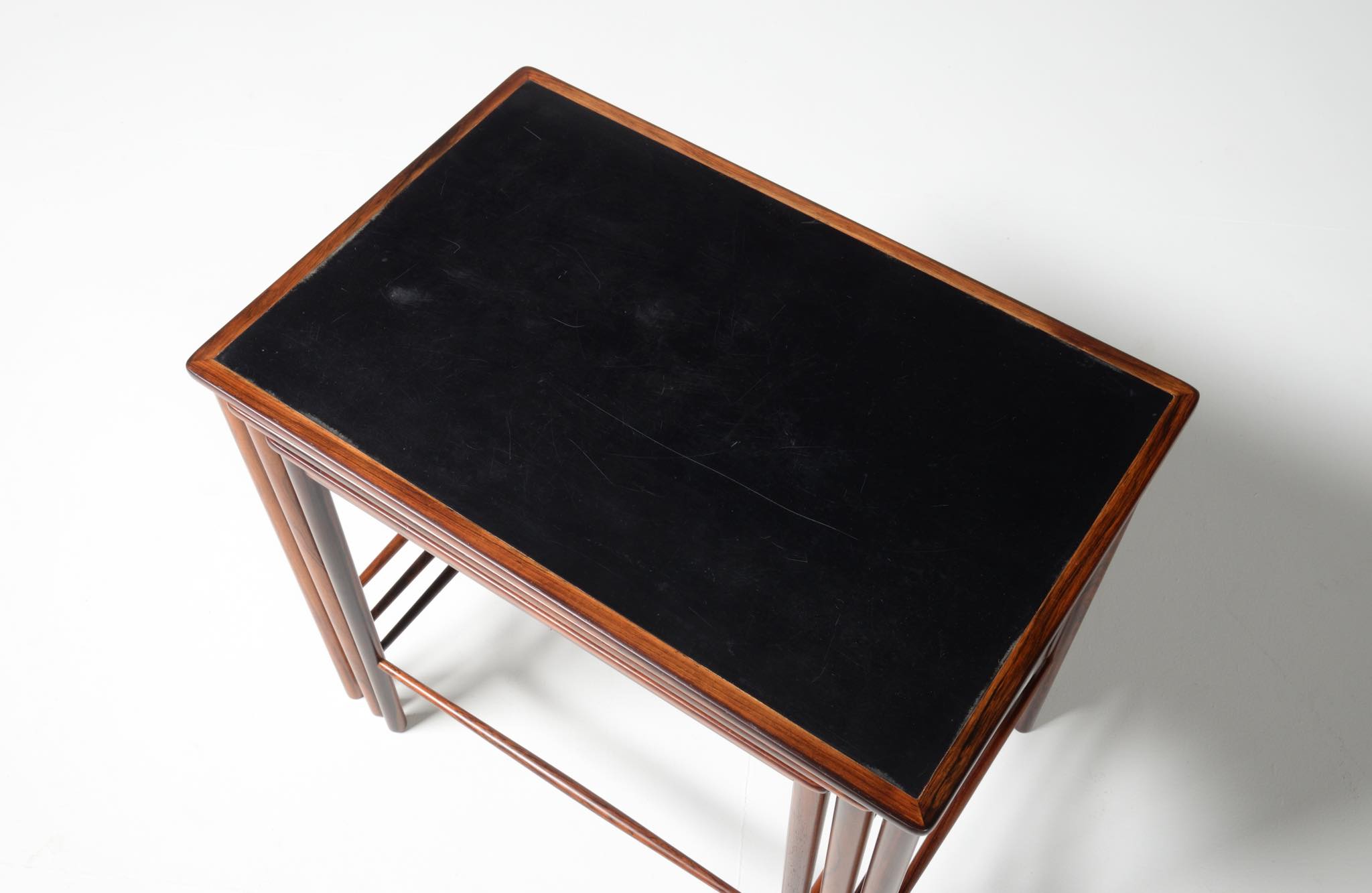 デンマークの家具デザイナー、Kai Winding/カイ・ウィンディングによるネストテーブルです。ブラジリアンローズウッドのフレームにフォーマイカが張られたもので、当時人気を得たモデルです。フォーマイカに経年の小傷がありますが、コンディションは良好です。