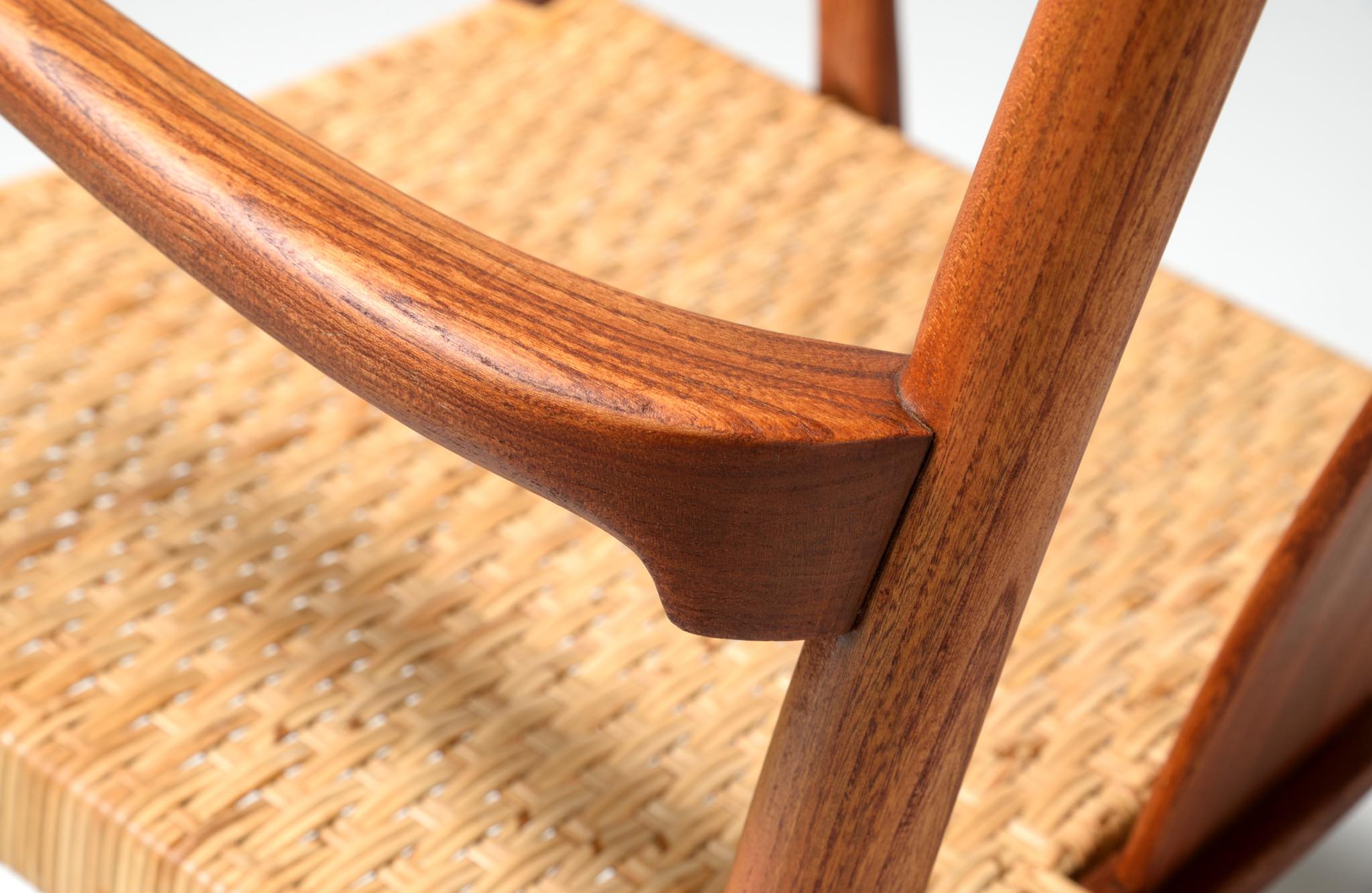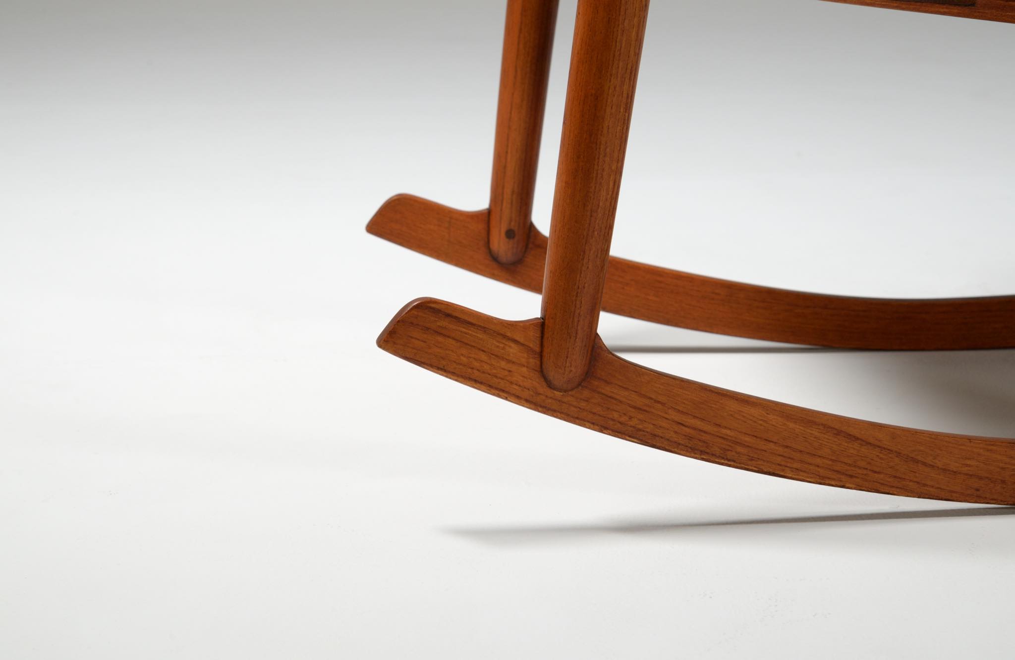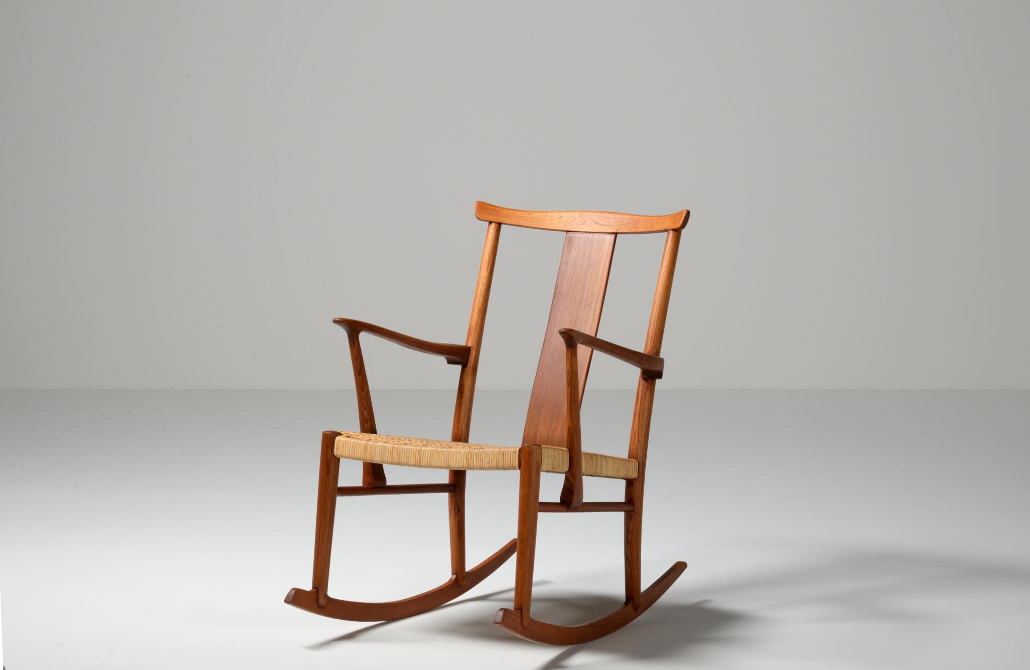 デンマークの家具デザイナー、Aksel O. Larsen/アクセル・ラーセンによる"model 1773"ロッキングチェアです。1942年にフリッツ・ハンセン社より発表されたモデルで、中国明時代後期の上流階級の間で流行した、Yoke-back arm chair/ヨークバック (官吏の帽子椅子) からインスパイアされたようです。フレームはエルム材、籐のシートはかつて張り替えられているようで、良い経年感です。