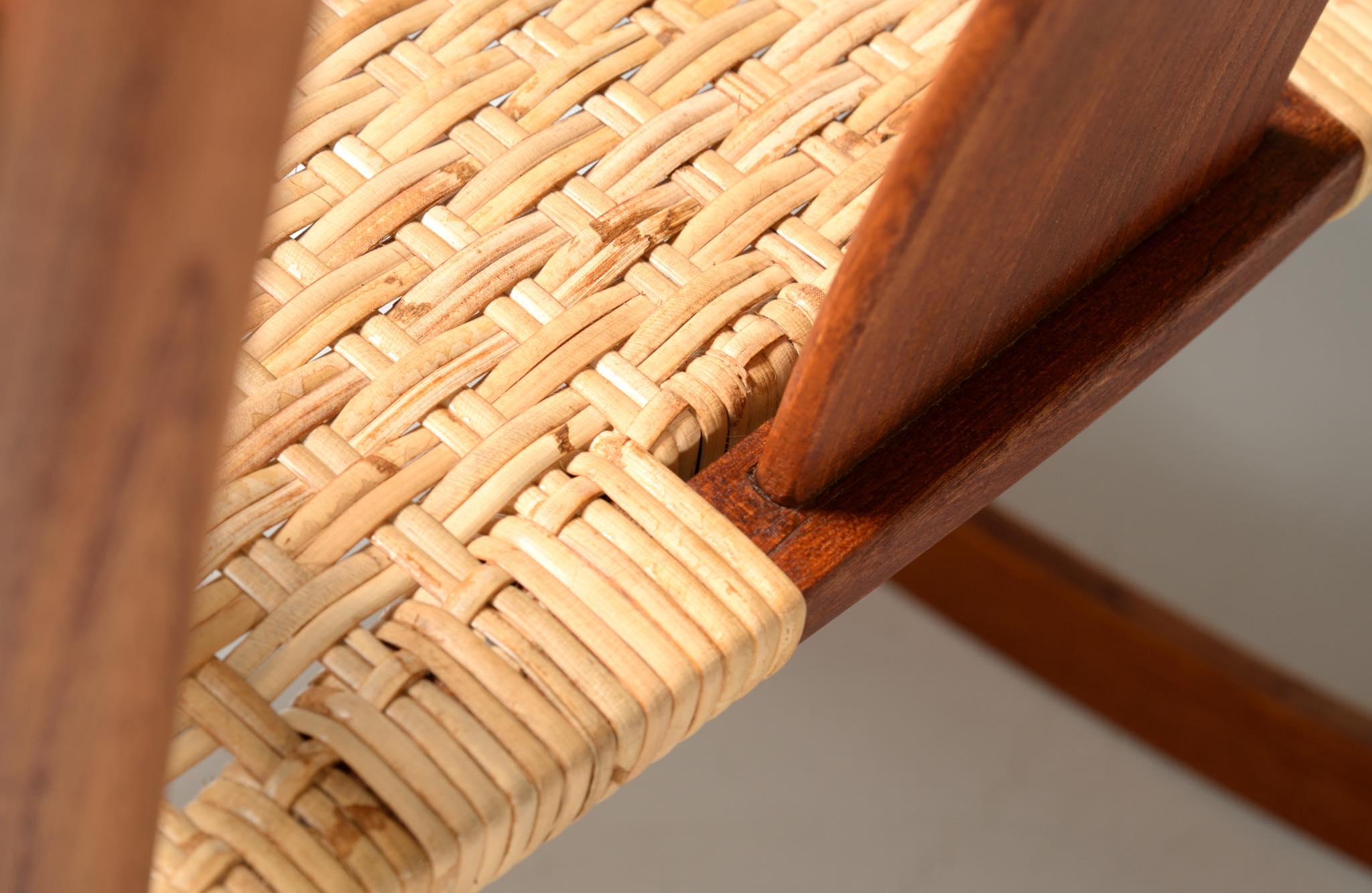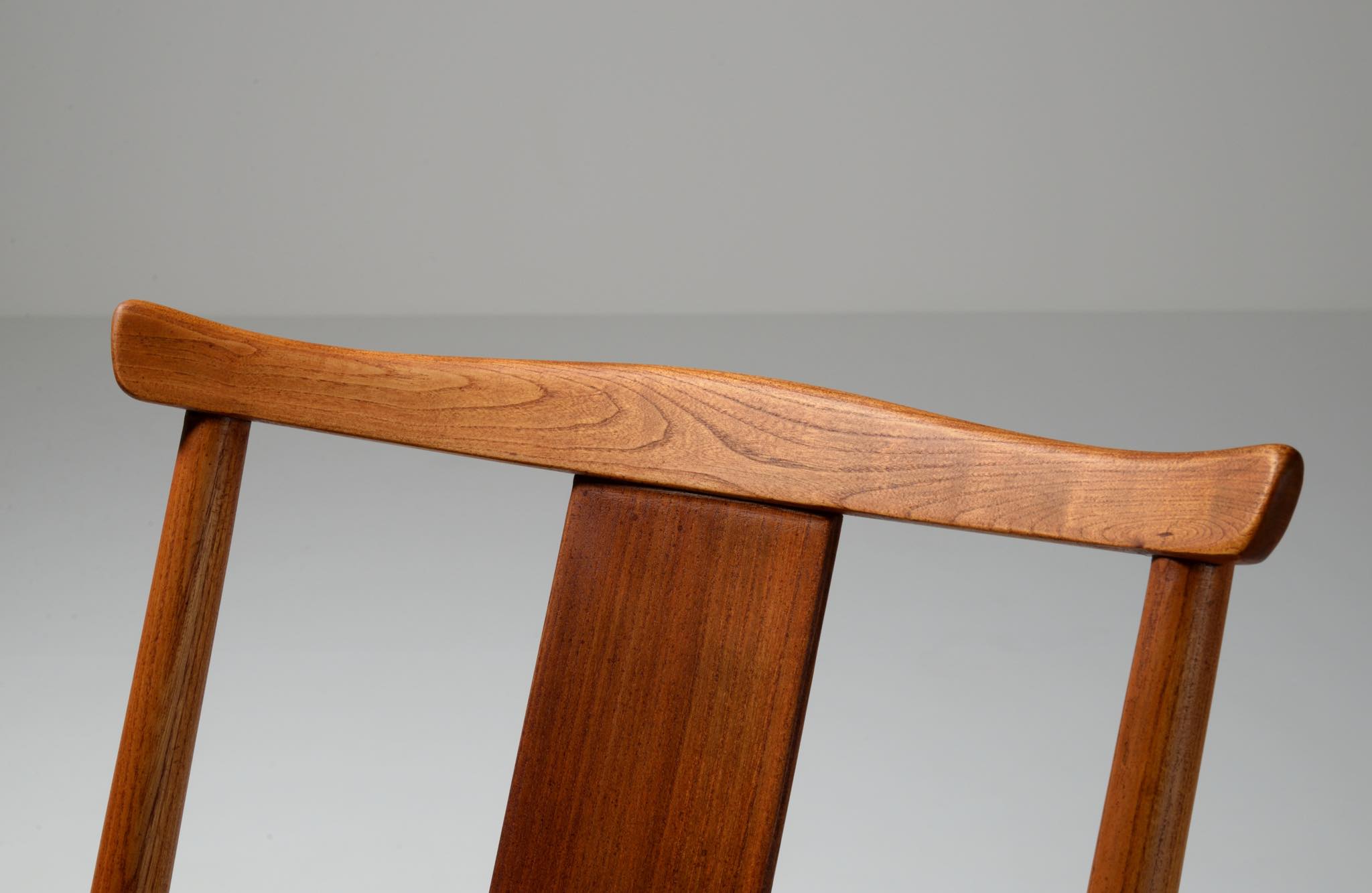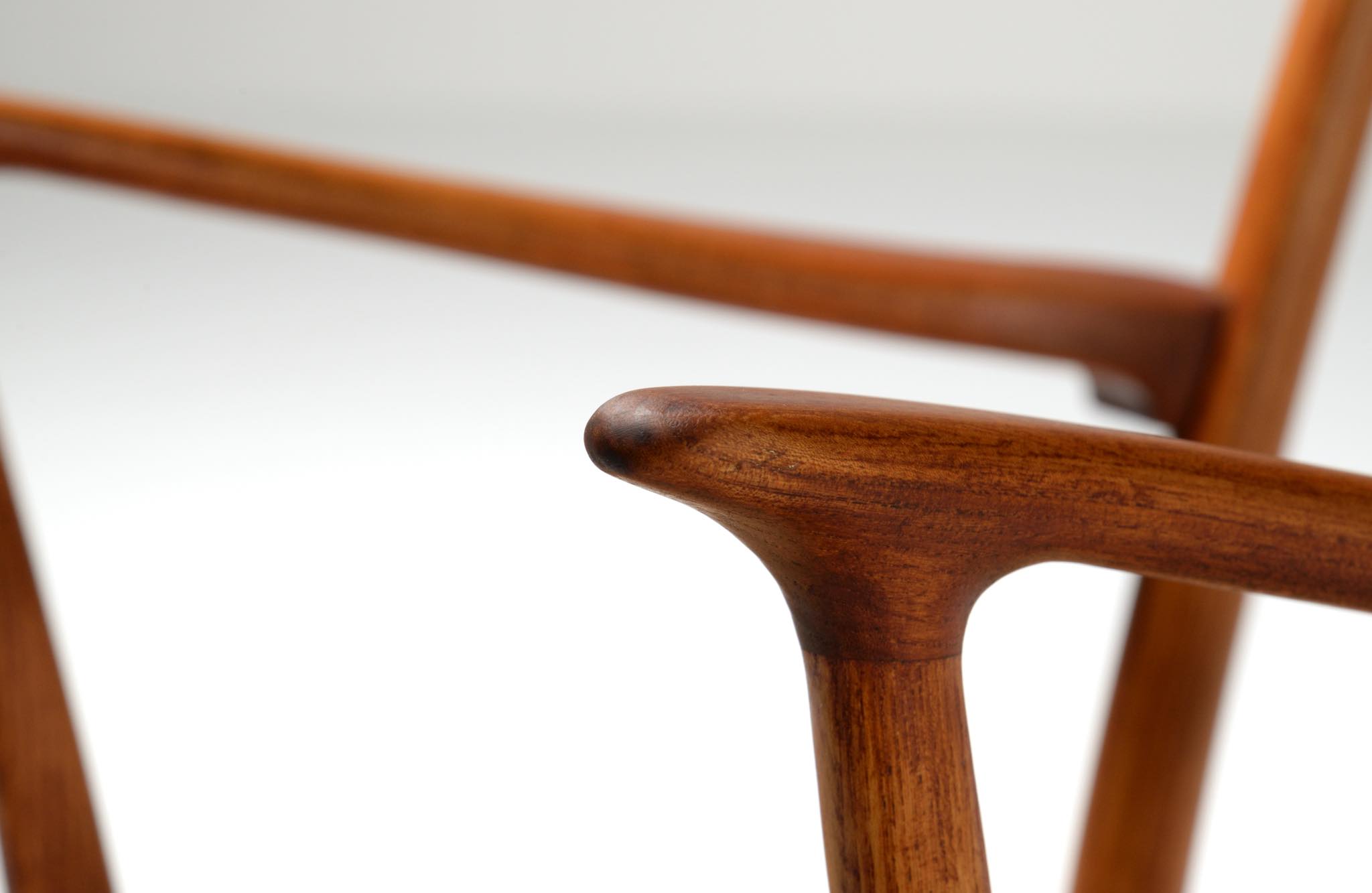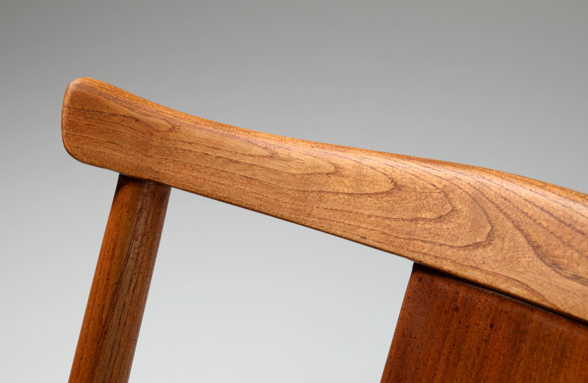 デンマークの家具デザイナー、Aksel O. Larsen/アクセル・ラーセンによる"model 1773"ロッキングチェアです。1942年にフリッツ・ハンセン社より発表されたモデルで、中国明時代後期の上流階級の間で流行した、Yoke-back arm chair/ヨークバック (官吏の帽子椅子) からインスパイアされたようです。フレームはエルム材、籐のシートはかつて張り替えられているようで、良い経年感です。