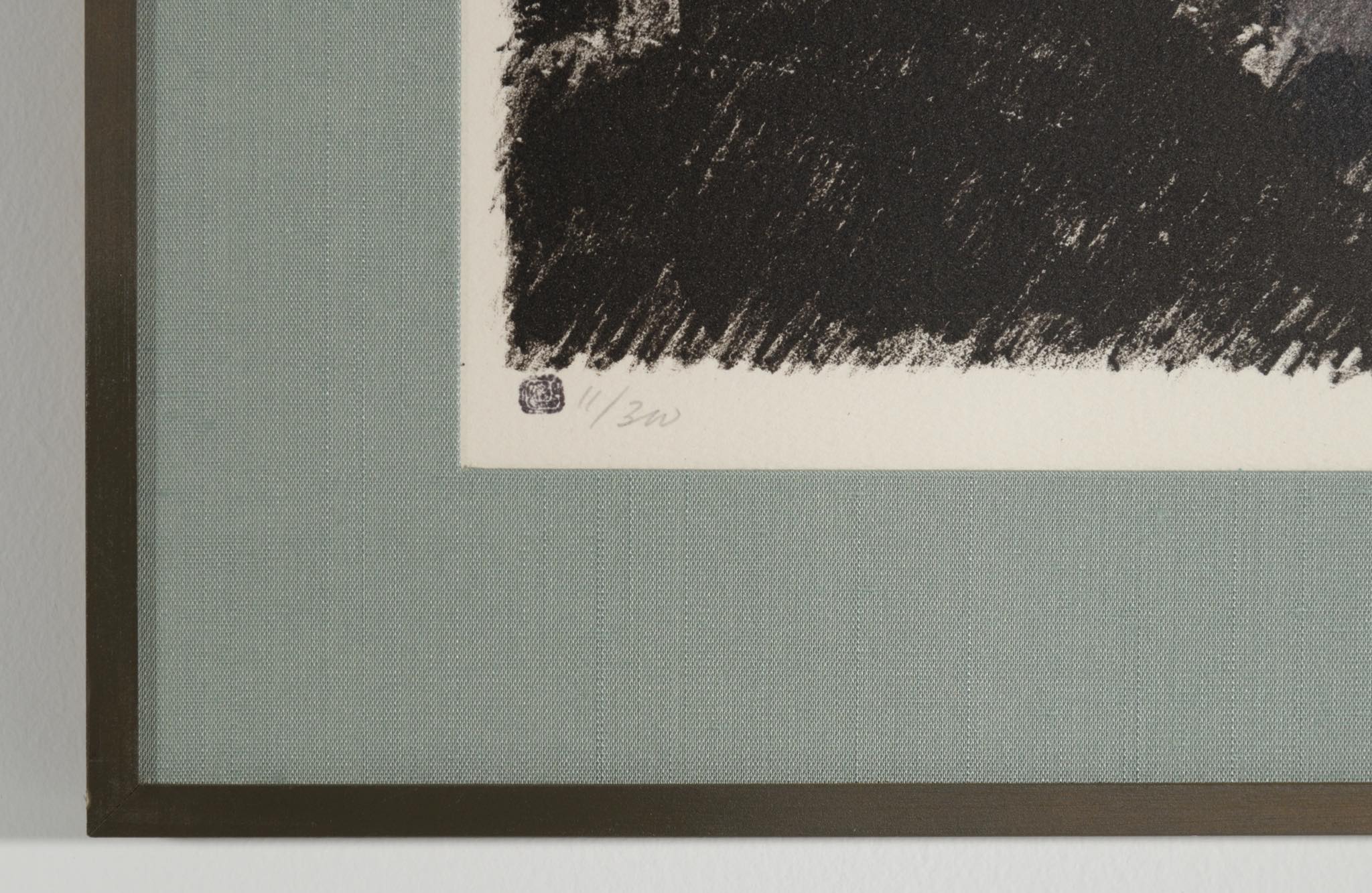 Lithograph in colors in new frame with new fabric mat