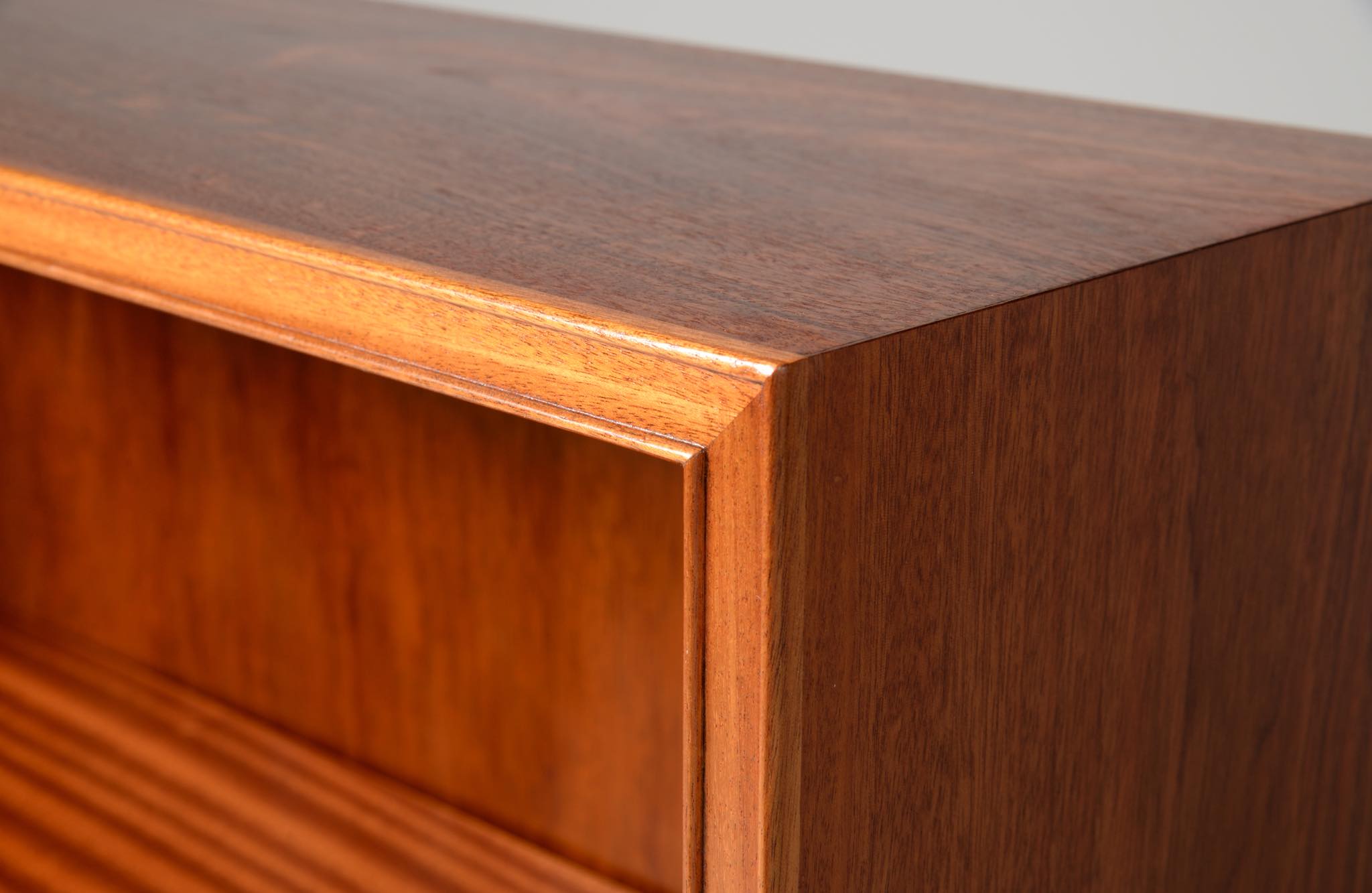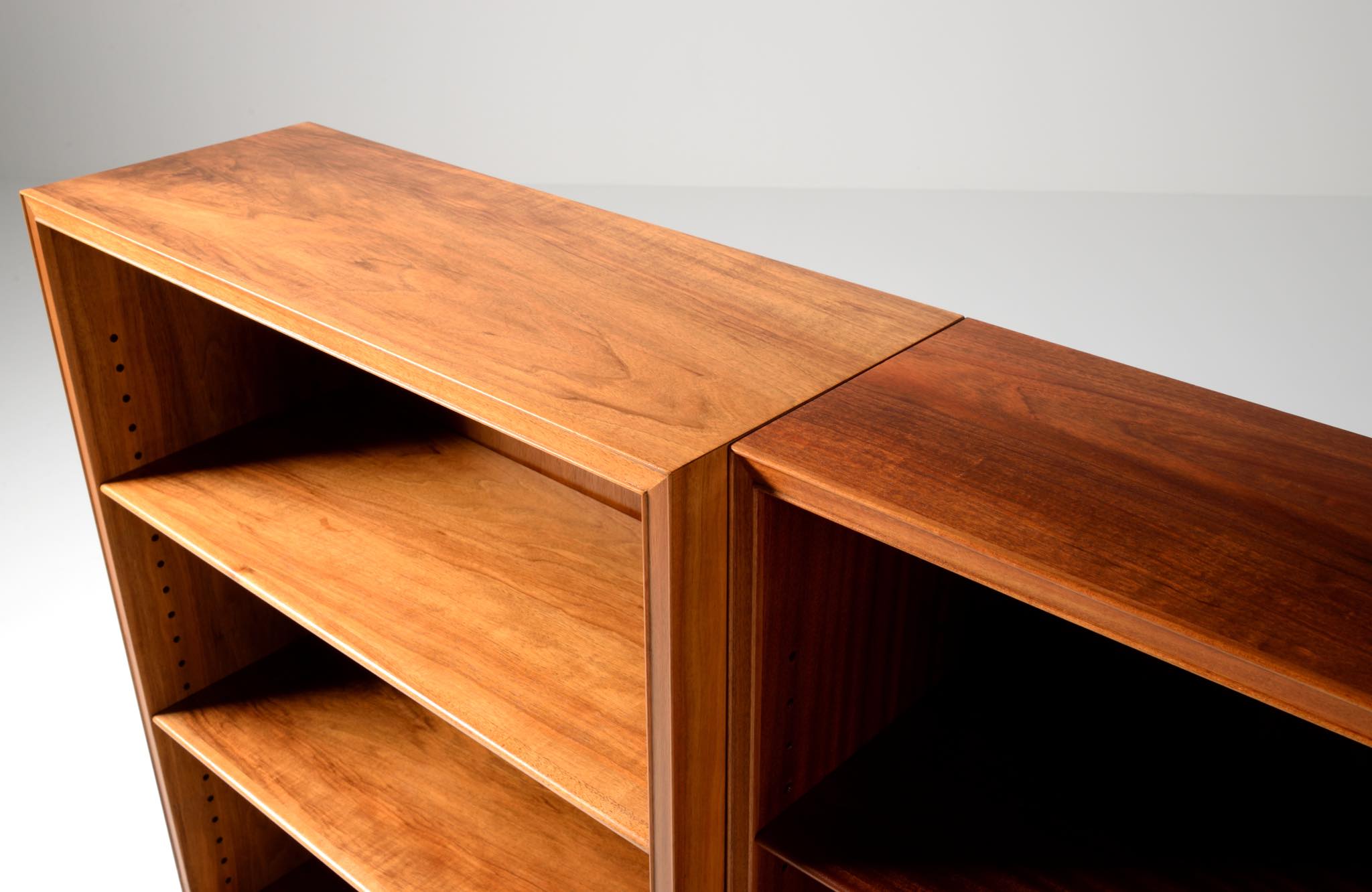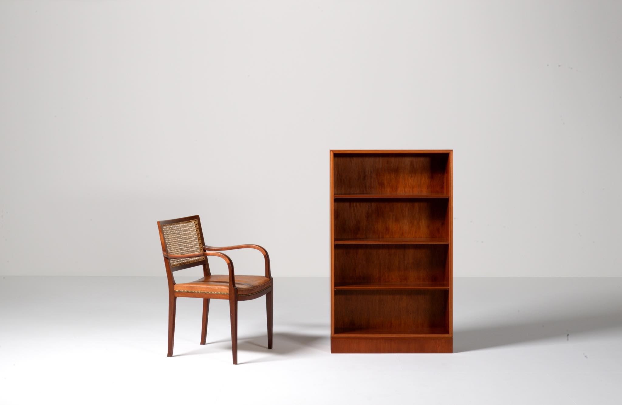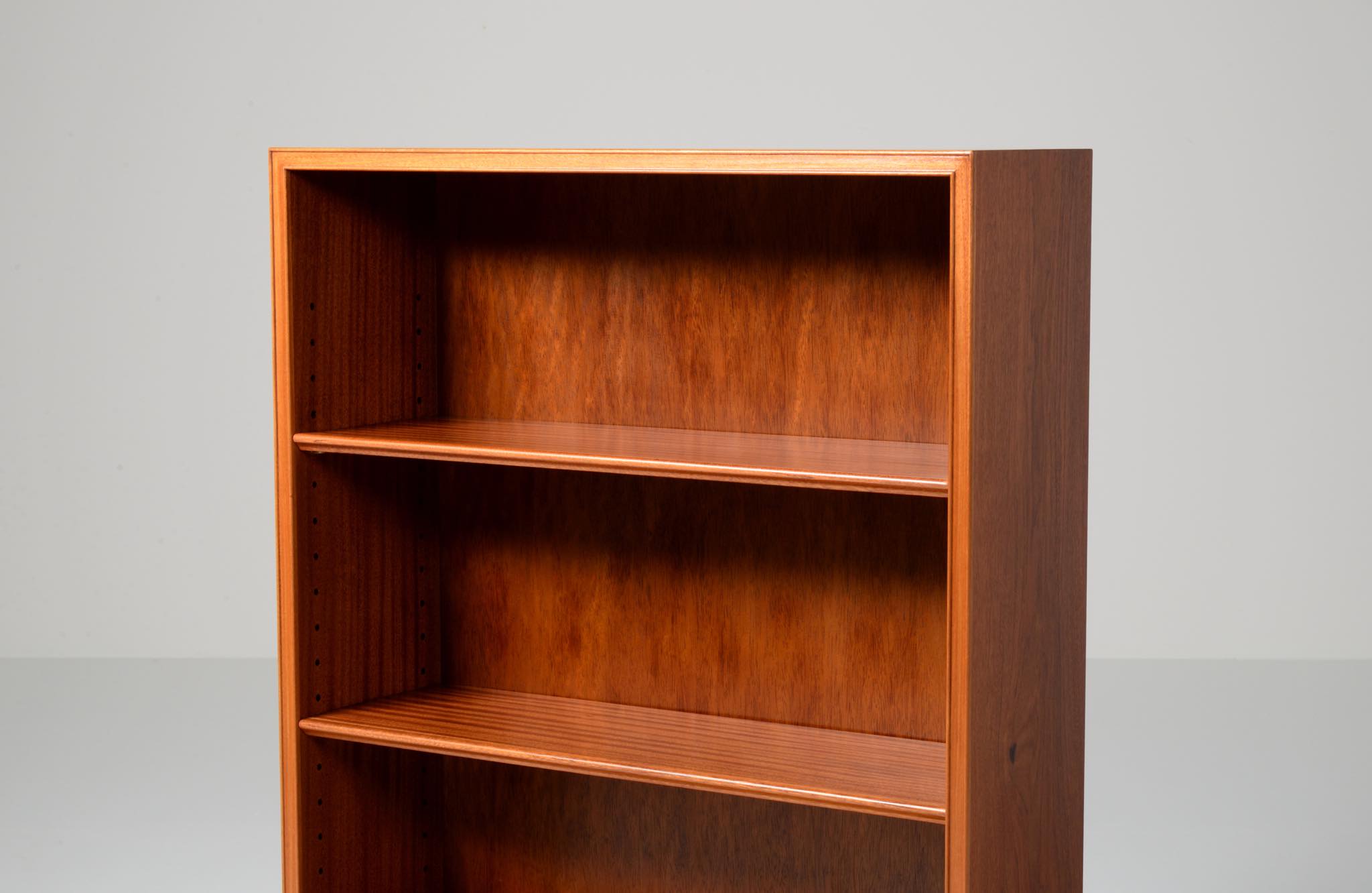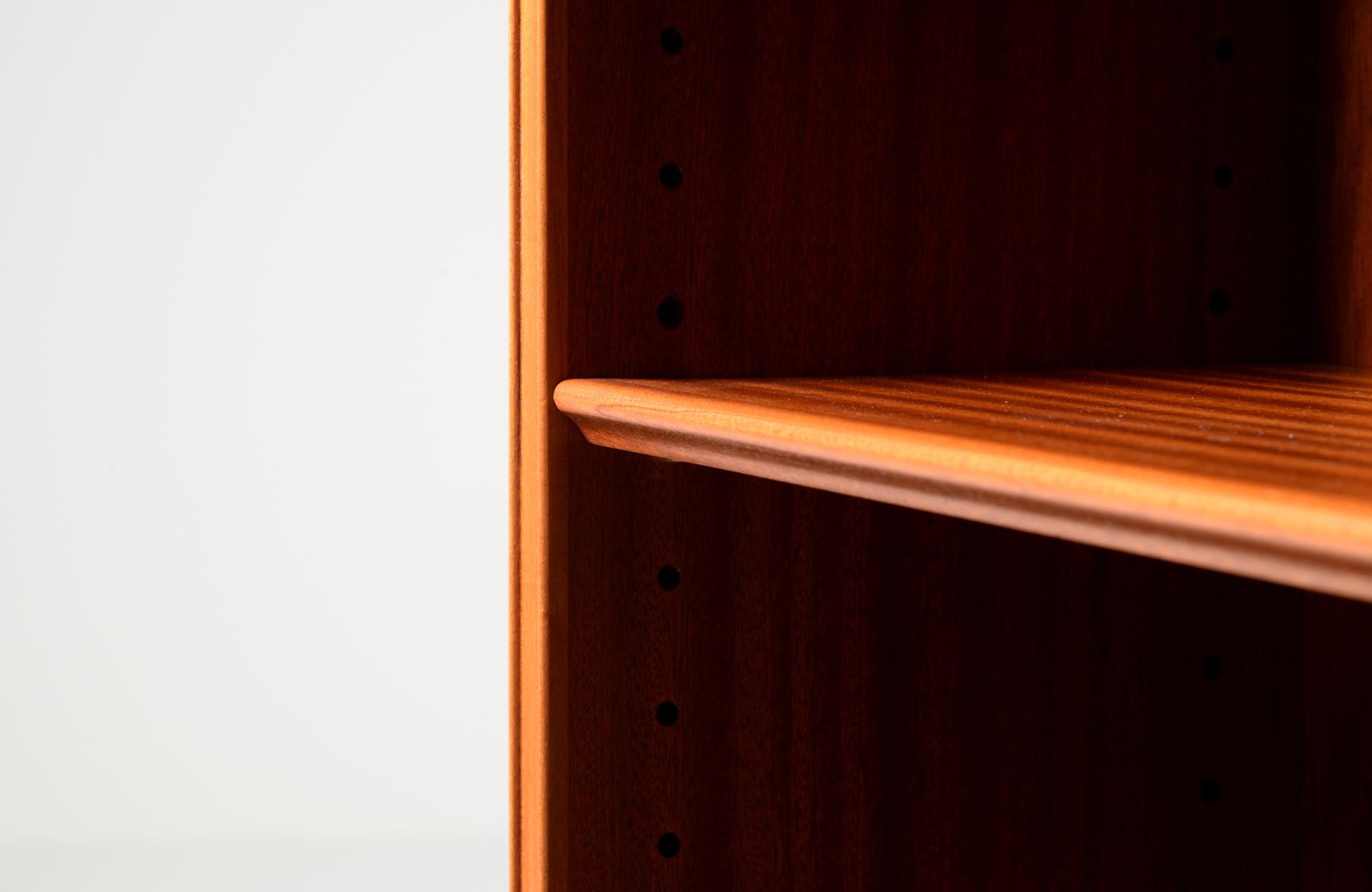 20世紀に於けるデンマーク家具デザインの礎を築いたデザイナー兼キャビネットメーカーの Frits Henningsen/フリッツ・ヘニングセンによるブックシェルフです。1940年代頃に作られたものでしょう。小ぶりなサイズ感に加え、クラシカルな趣を残したままモダンな佇まいでまとめたデザインは当時人気を博したようです。マホガニー材が用いられています。