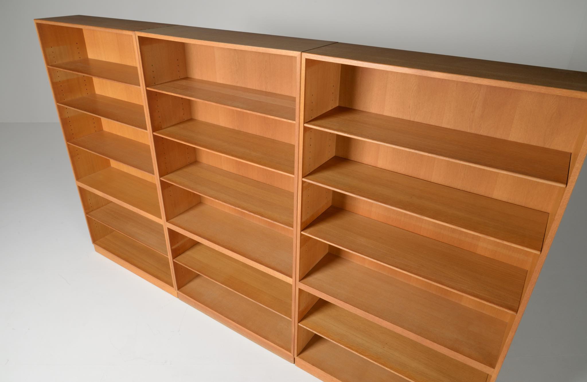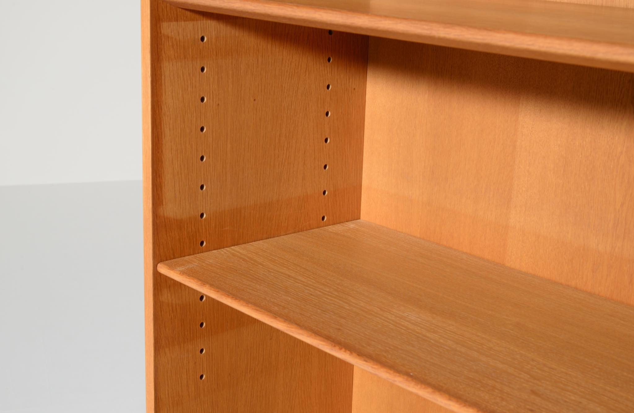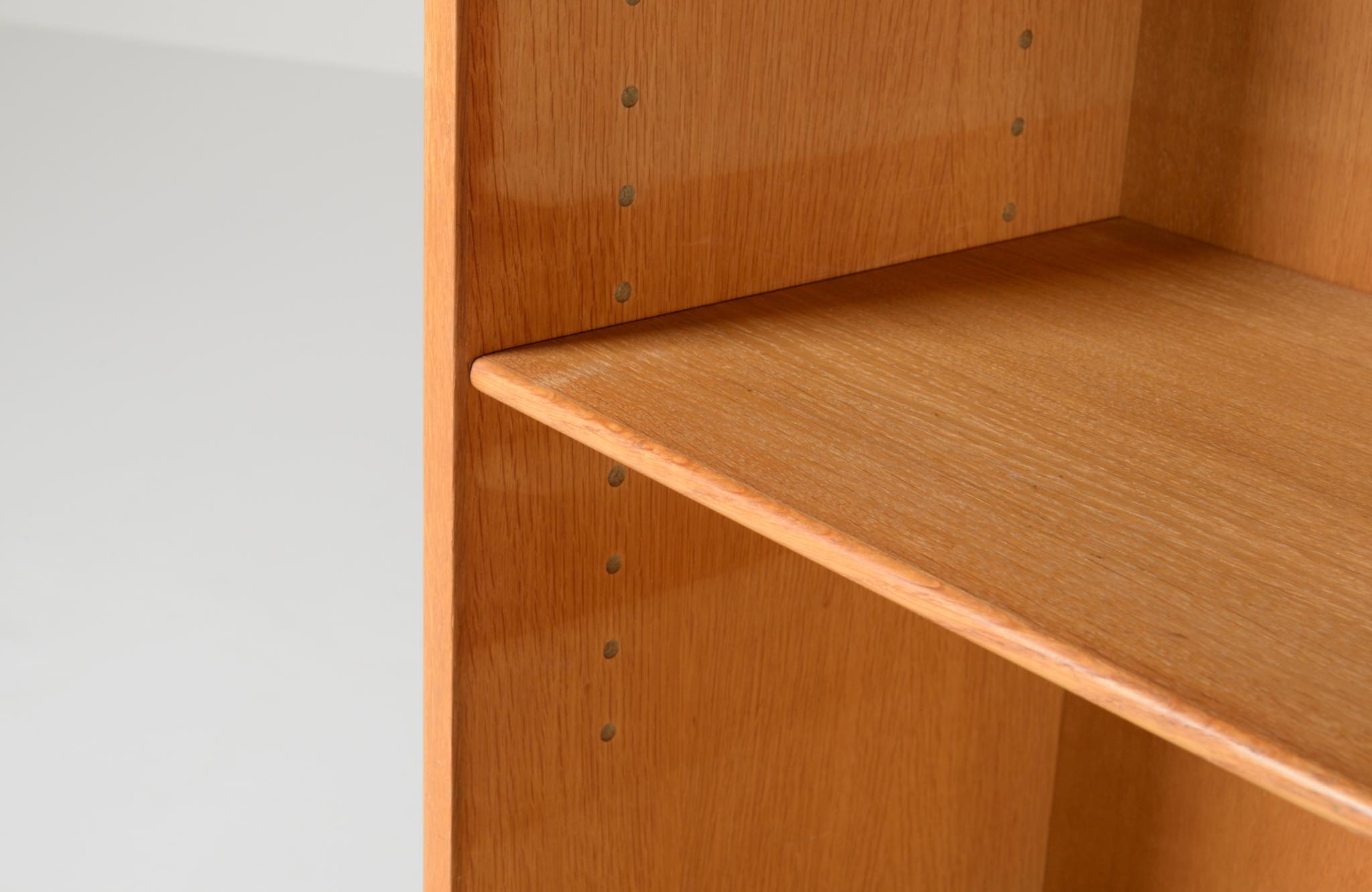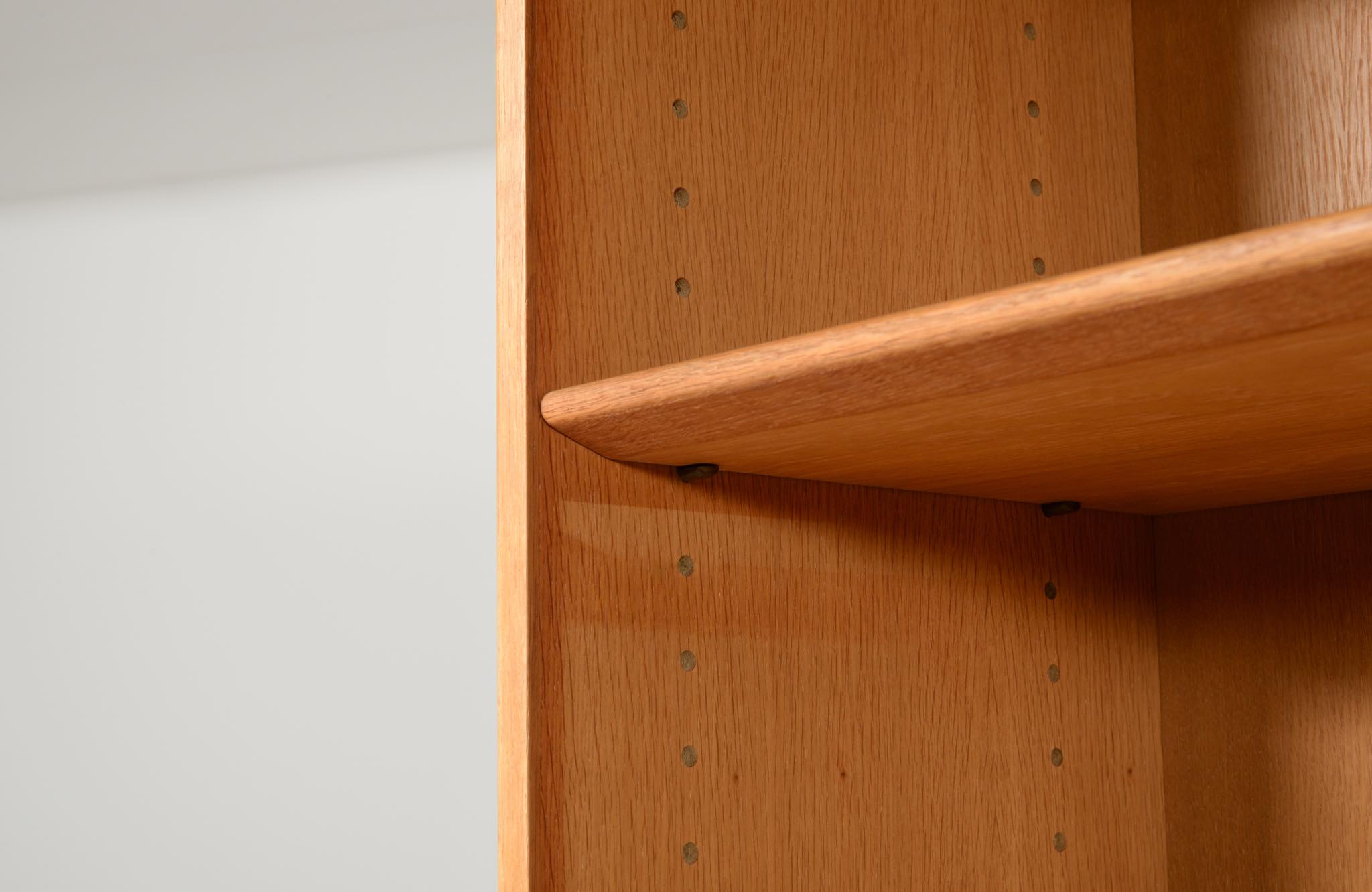 Børge Mogensen/ボーエ・モーエンセンによるブックケースシリーズ、Søborg møblerによって1960~70年代頃に作られたオーク材の書棚です。中央下部の厚みのある棚板が構造の役割となっており、それ以外の棚板は可動します。経年感が見られますが綺麗な状態です。こちらは単体での販売となります。