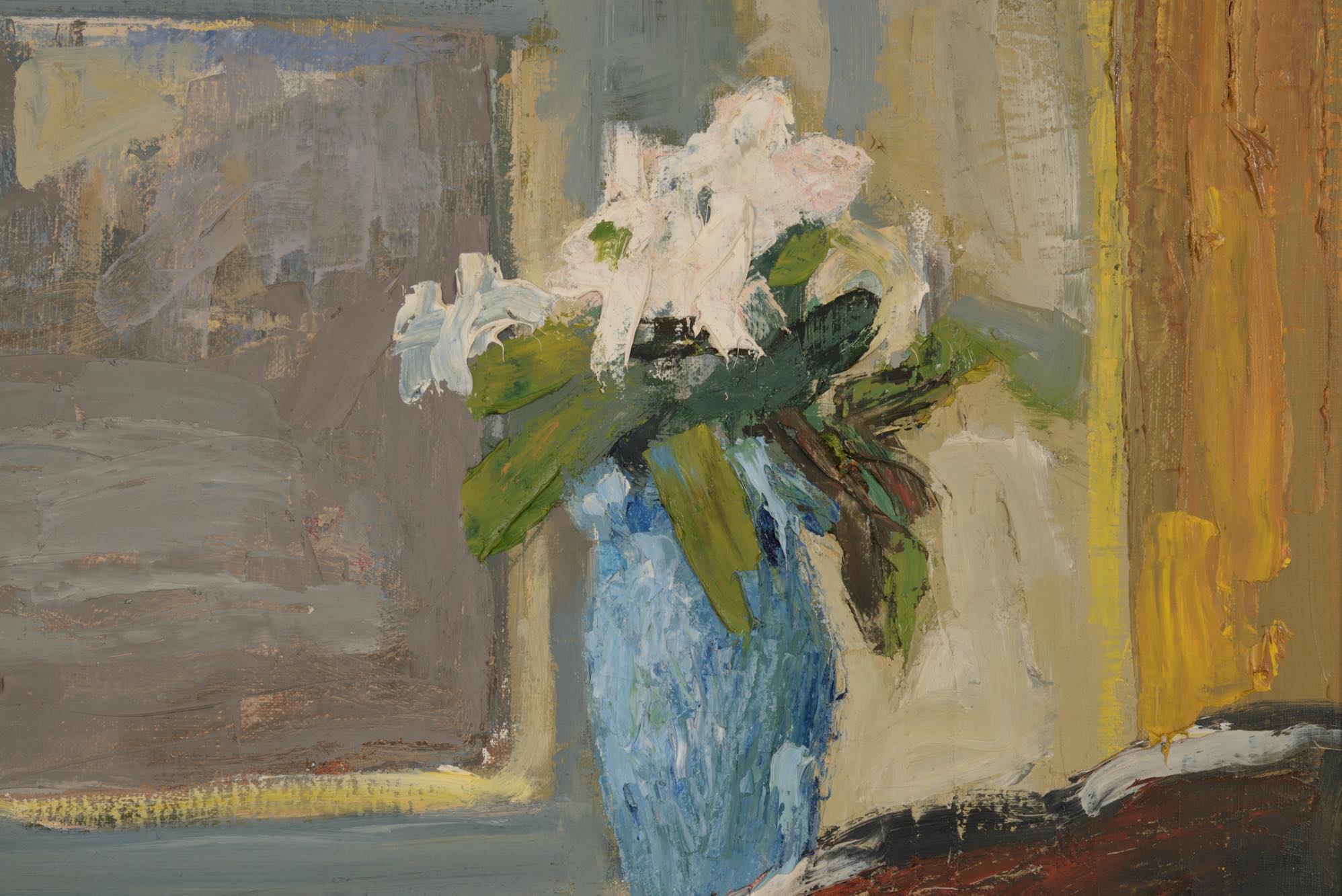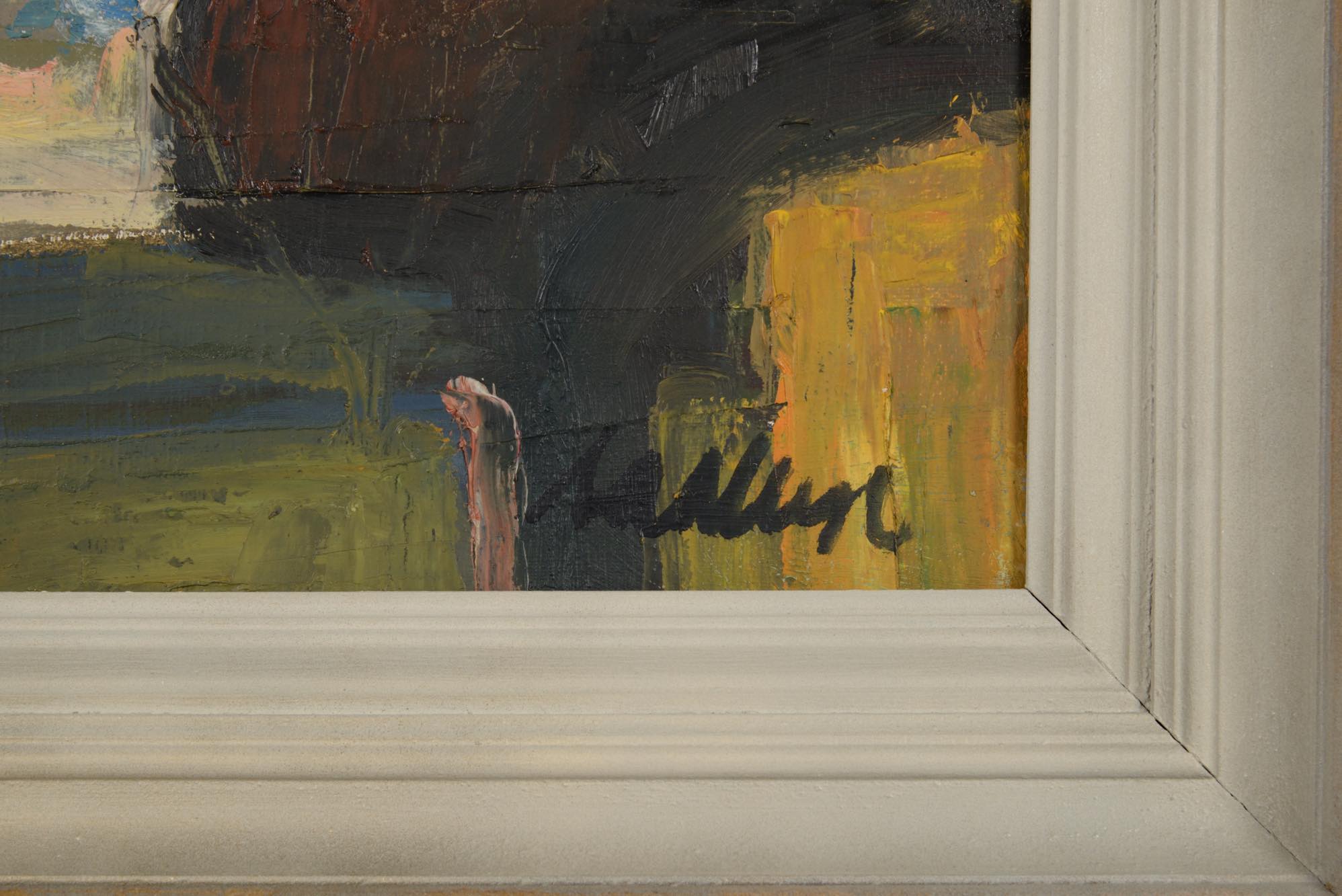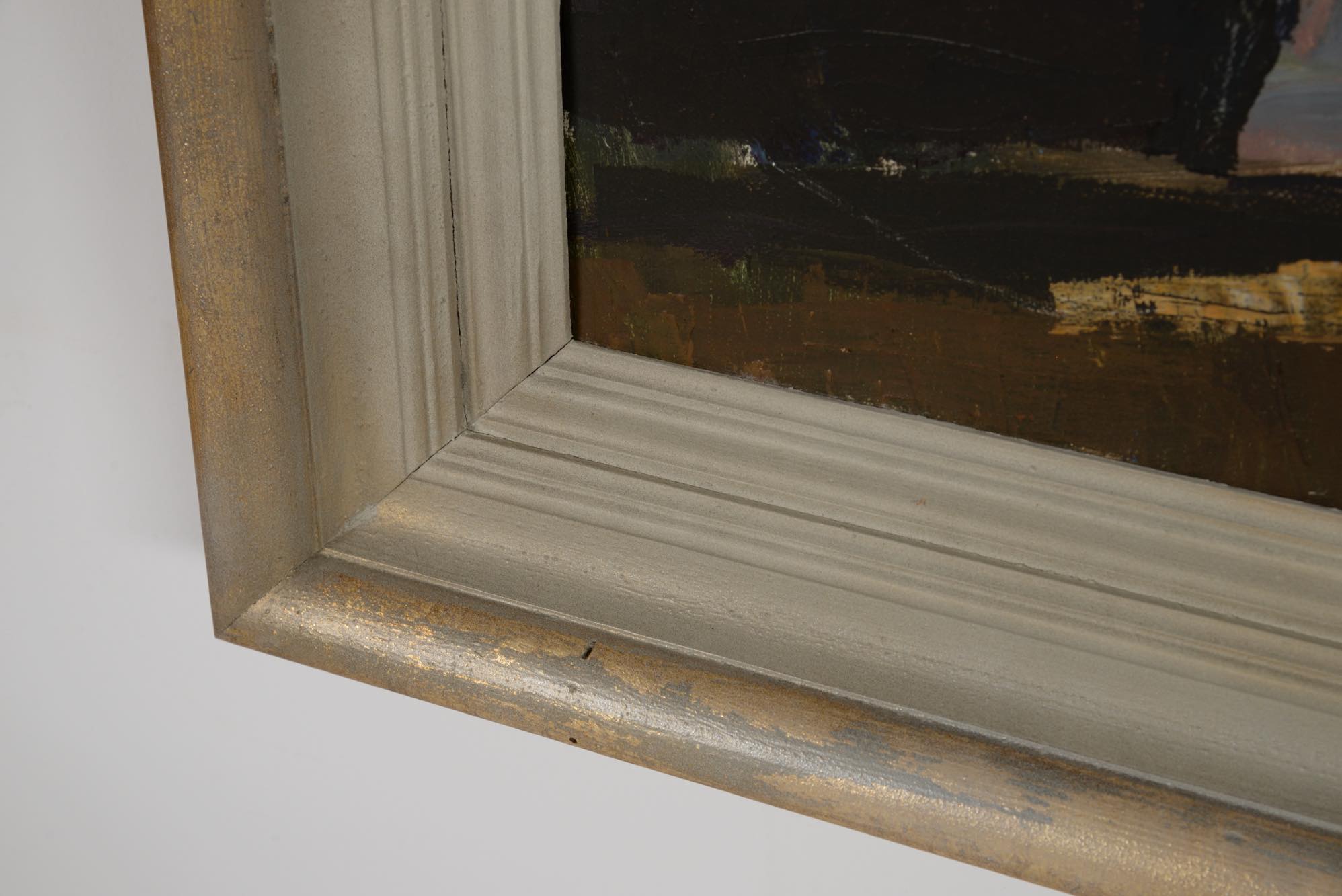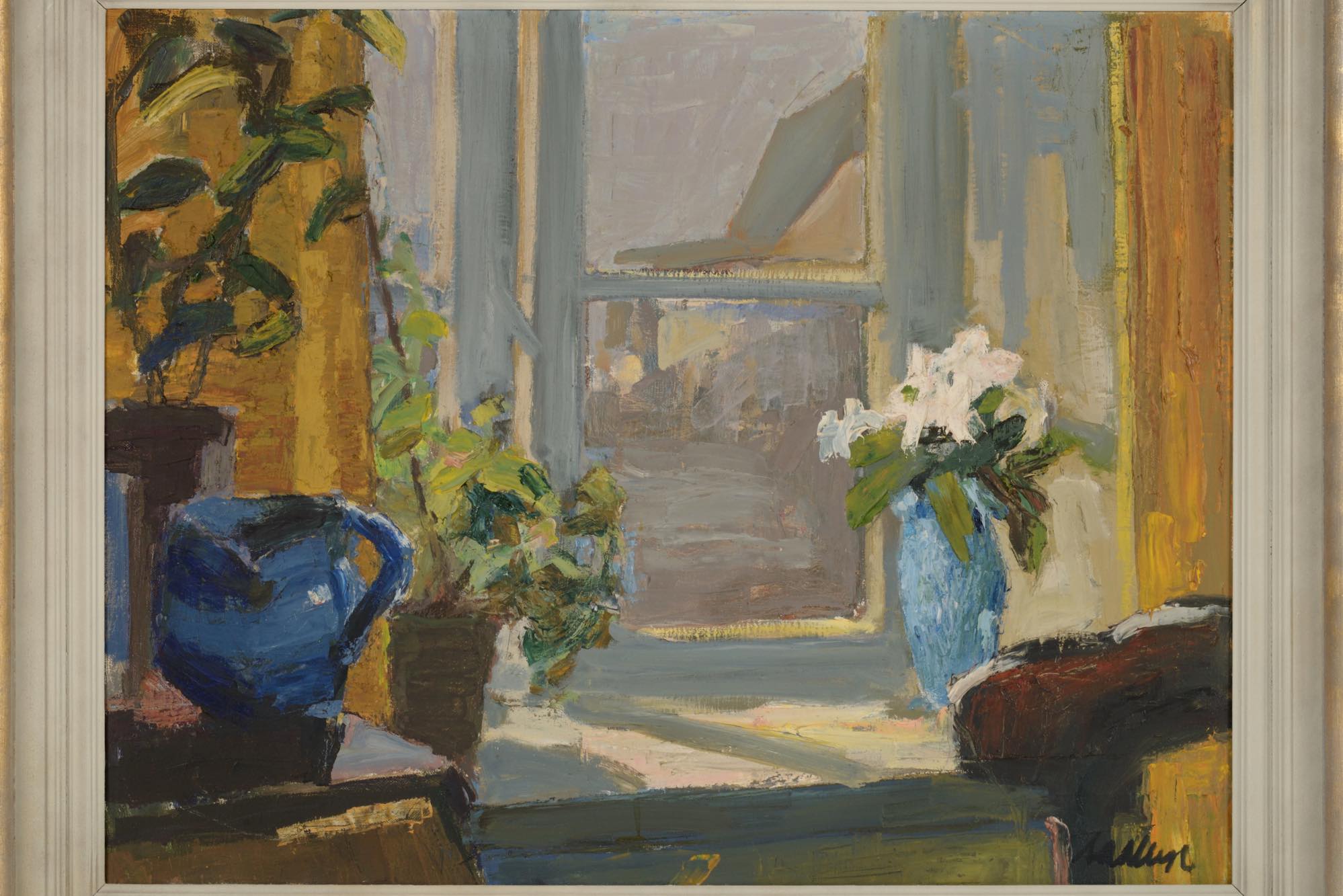 デンマーク人画家の Svend Saabye/スヴェン・サービュによる油彩作品です。窓辺の日溜まりの様子が独自のタッチで描かれています。金箔とペイントのフレームはオリジナルですが表面的な塗装の修復を行っています。コンディションは良好です。