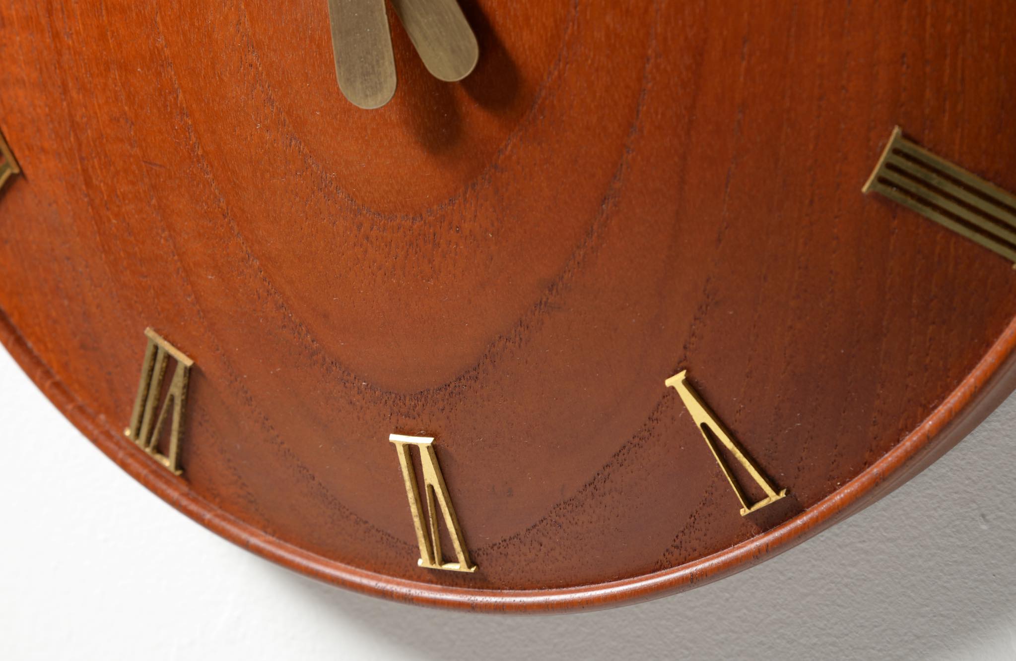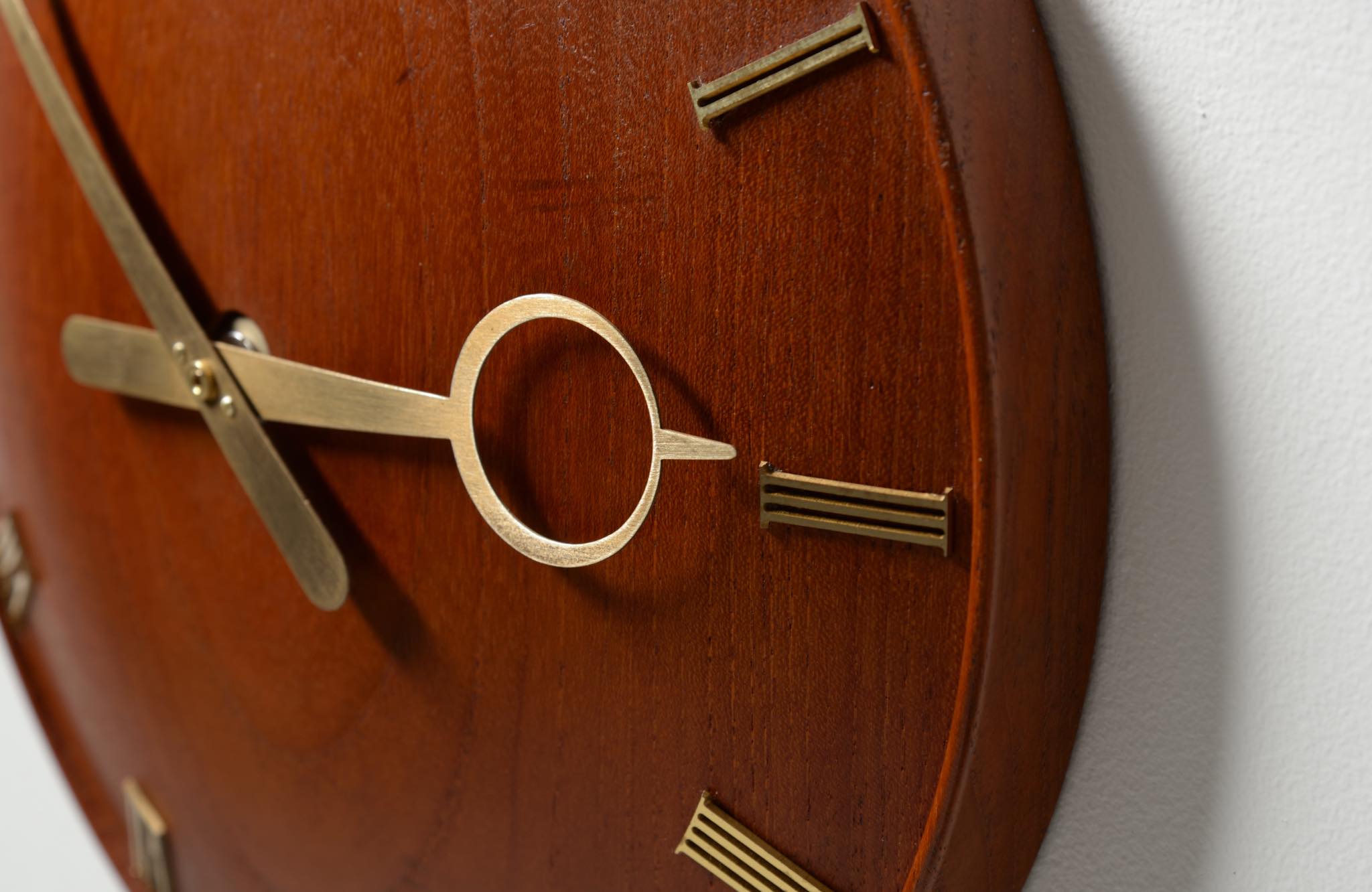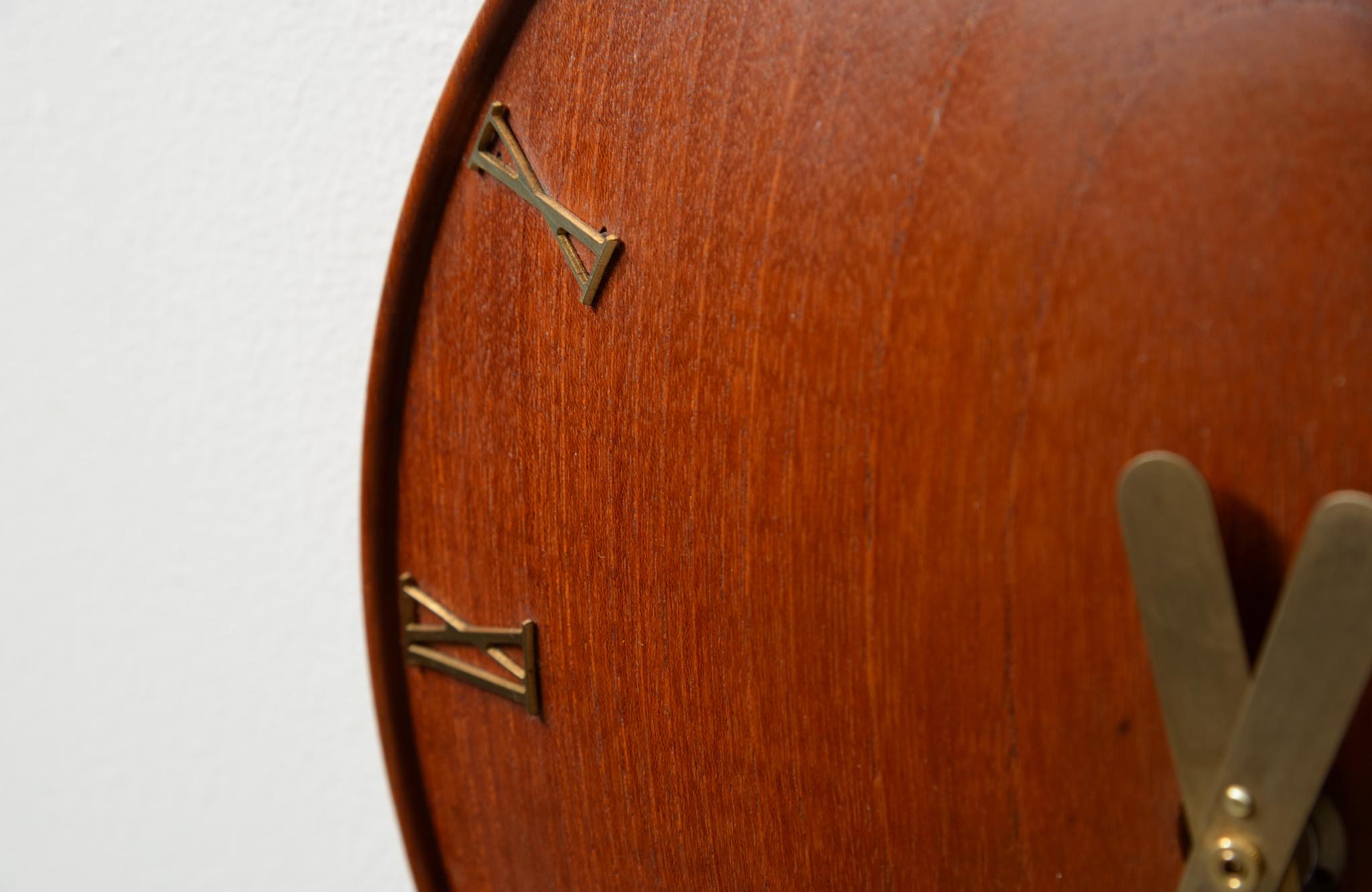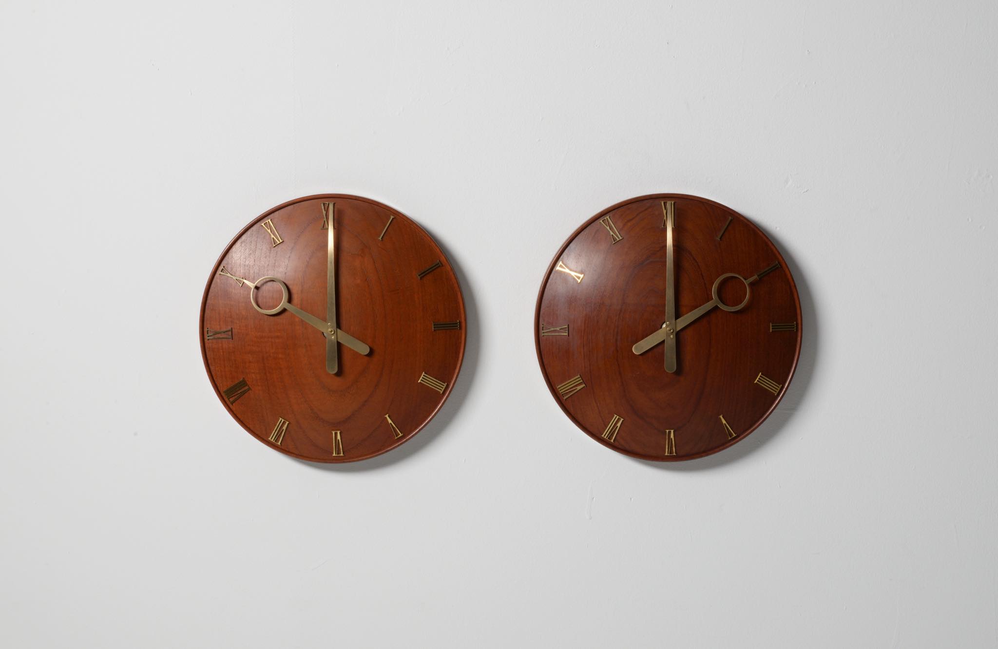 20世紀初頭に活躍したデンマークを代表する建築家、Kaj Gottlob/カイ・ゴットロブによる掛時計です。材は無垢削り出しのチーク材、針や文字、枠は真鍮製で、ガラスが備わります。手の込んだ丁寧な仕事で作られています。ムーブメントはオリジナルの電気式が既に故障していたため、電池式クォーツに差し替えました。故に正確に時を刻んでいます。小傷等見られますがとてもきれいな状態です。
