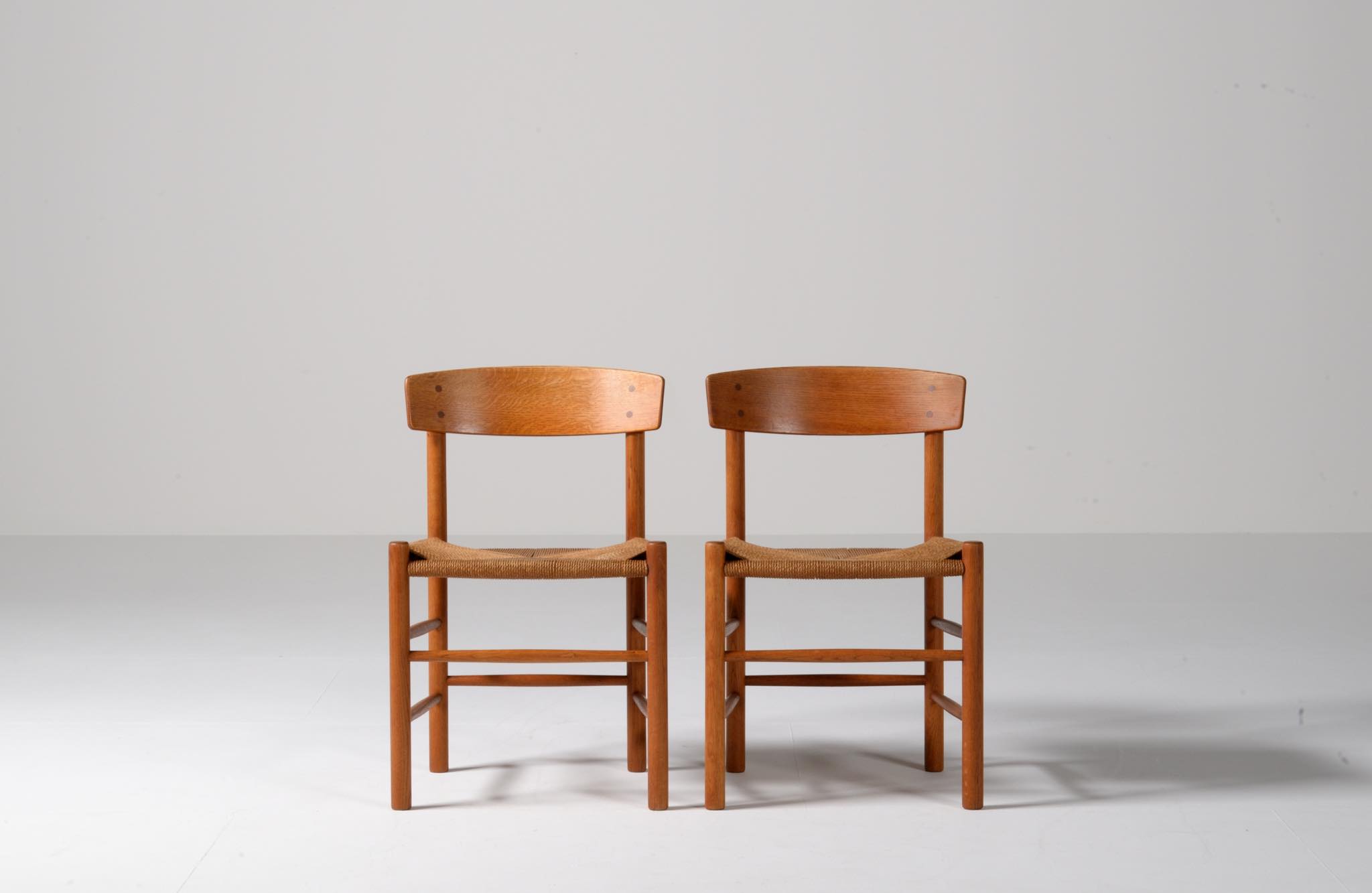 Børge Mogensen/ボーエ・ モーエンセンによる "J39" シェーカーチェアです。現行品でも作られ続けているロングセラー作品ですが、こちらは古い時代に作られたもので、天然木に見られる特有の木目文様が魅力です。シートのペーパーコードはオリジナルと思われ、経年による使用感はありますが、切れた箇所もなく良い雰囲気です。張り替えをご希望の際には別途お見積り致します。こちらはペアでの販売となります。