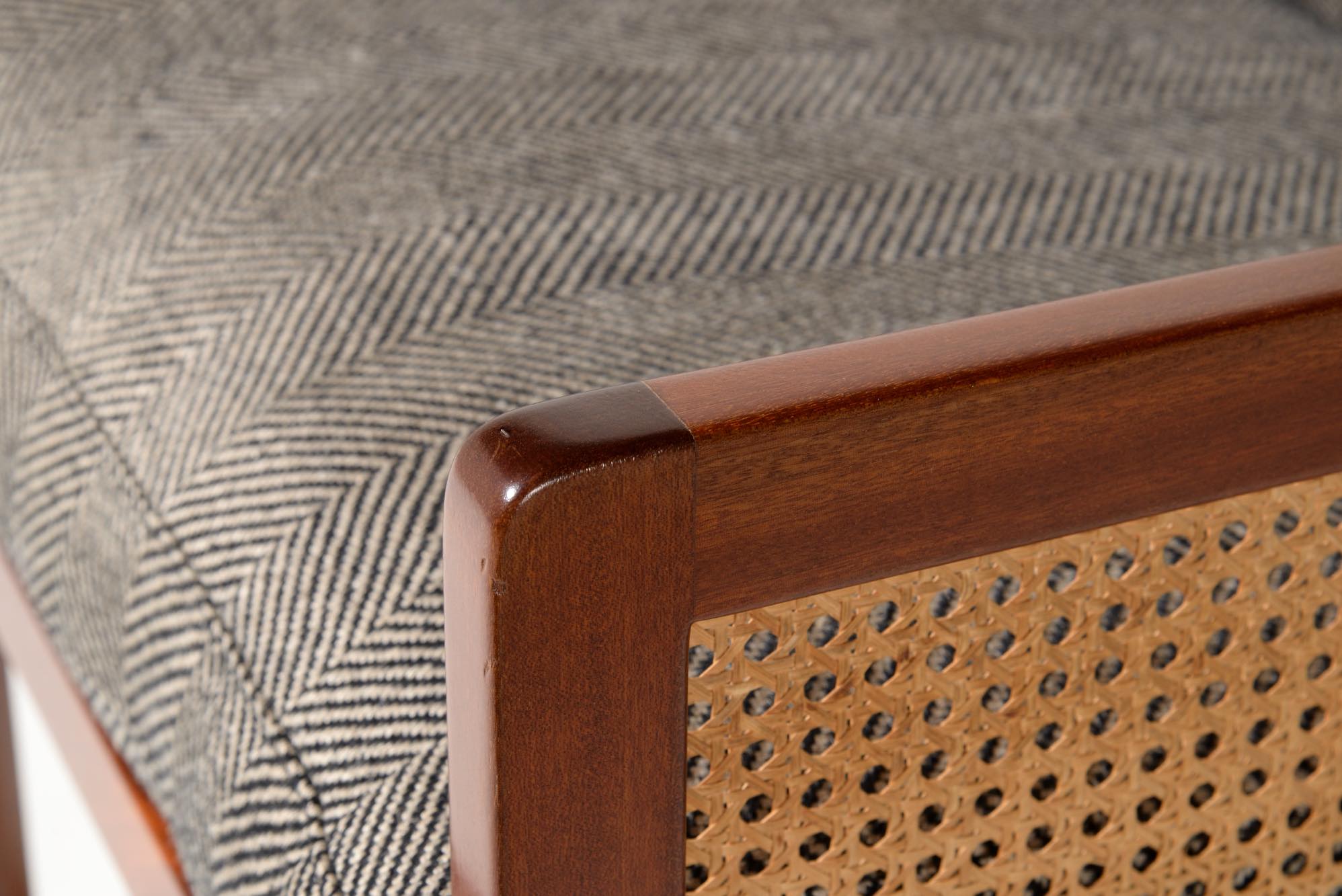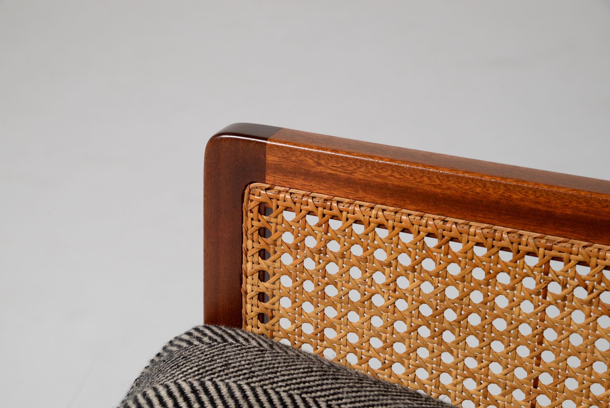 Mahogany, Cane, New fabric (Loro Piana interiors DINGLE AL2009 6. EBANO Linen 100%), Feather cushions