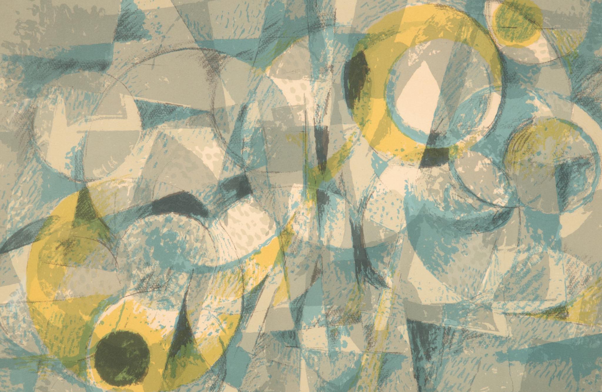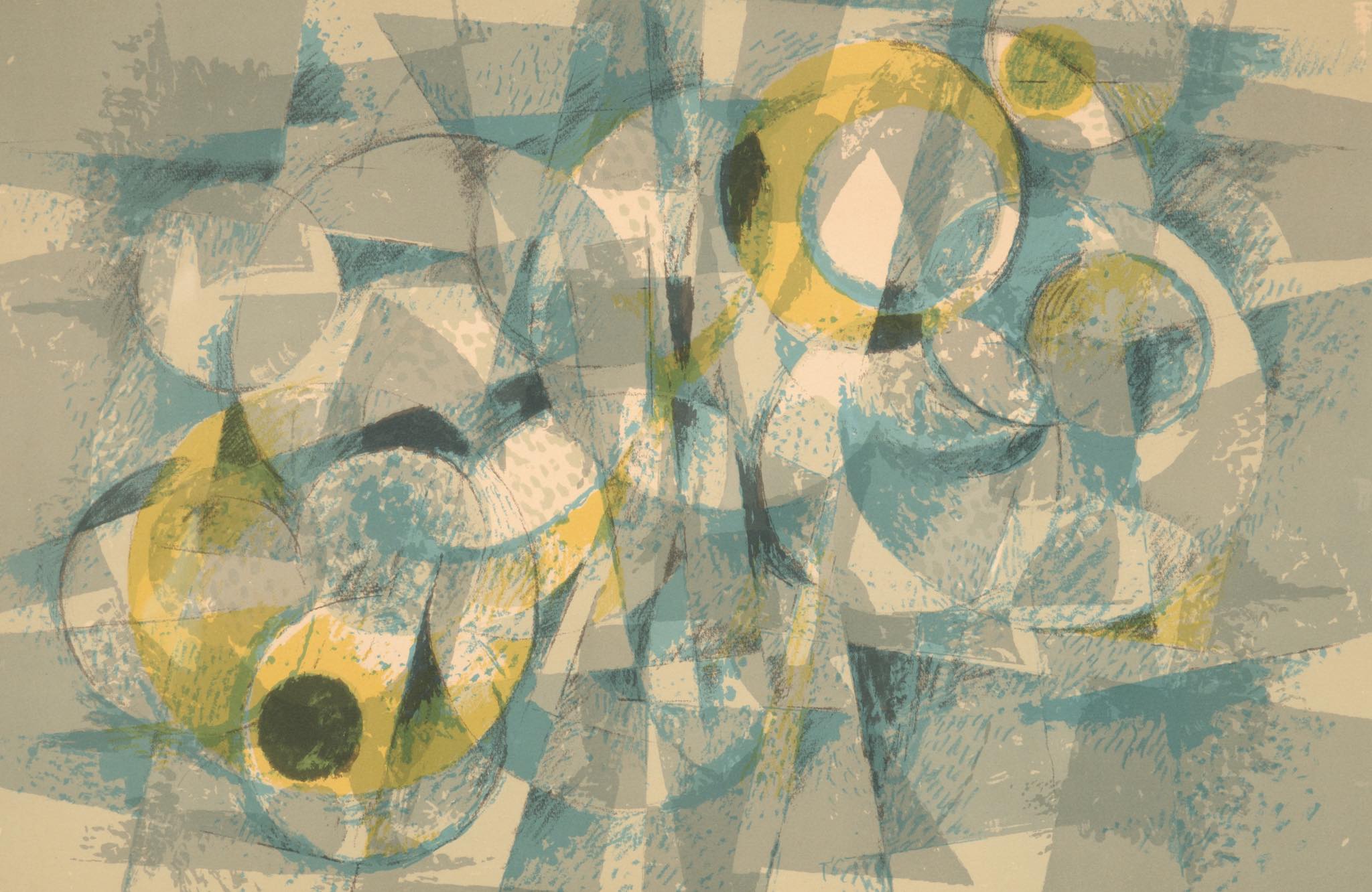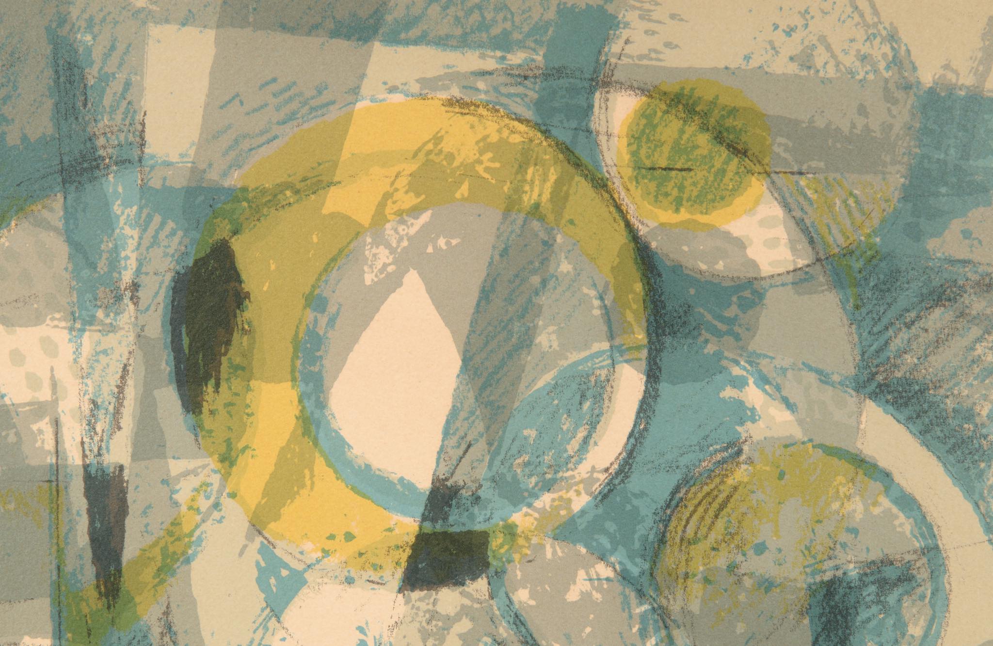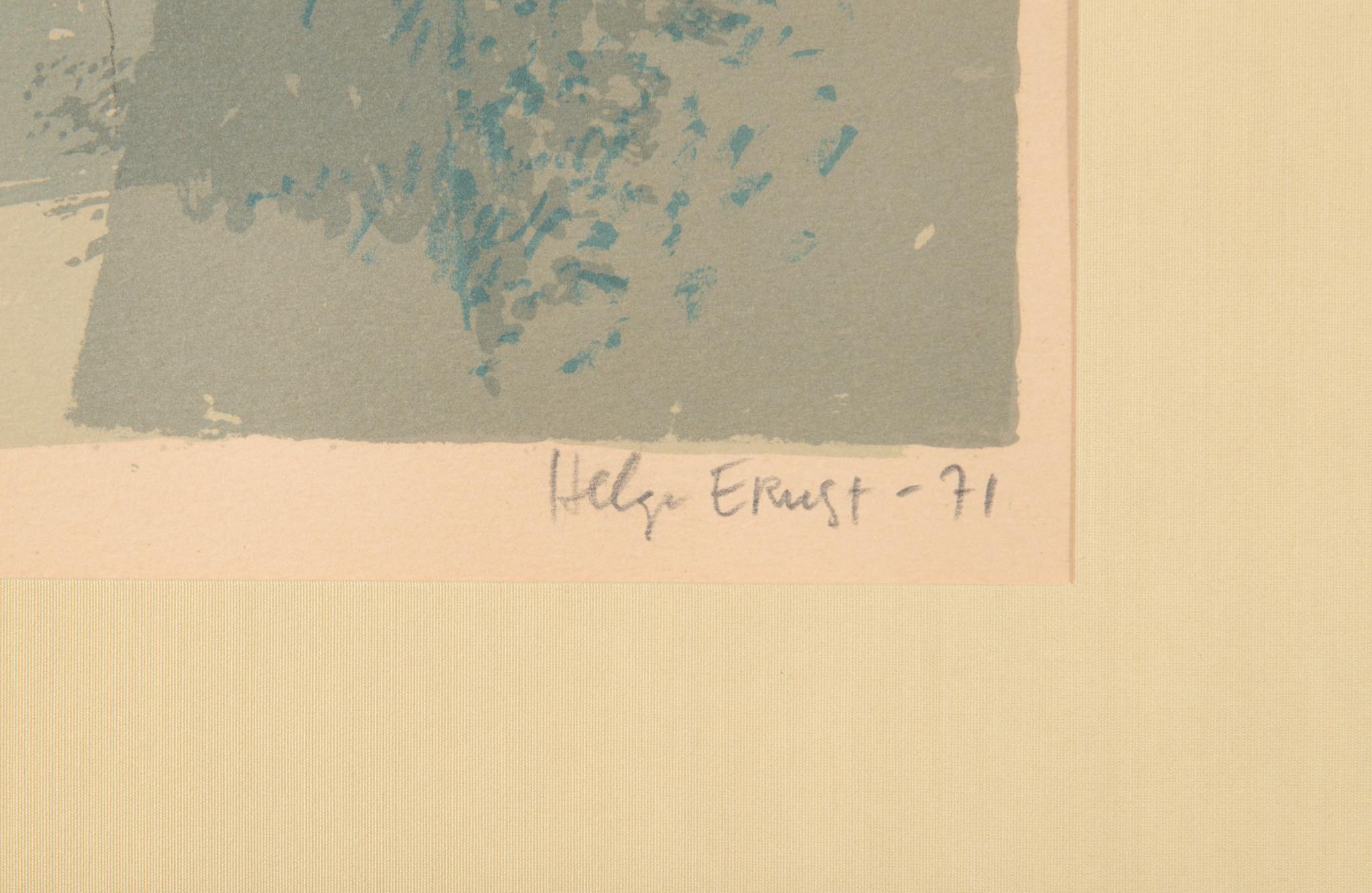 デンマークの芸術家、Helge Ernst/ヘルエ・アーンストによるコンポジション、リトグラフ作品です。比較的晩年の作品で、より抽象的な表現となった頃の作品です。フレームはオリジナルで多少の傷が見られますが、鑑賞の妨げにはならない程度です。マットは布被せにて新たに整えました。
