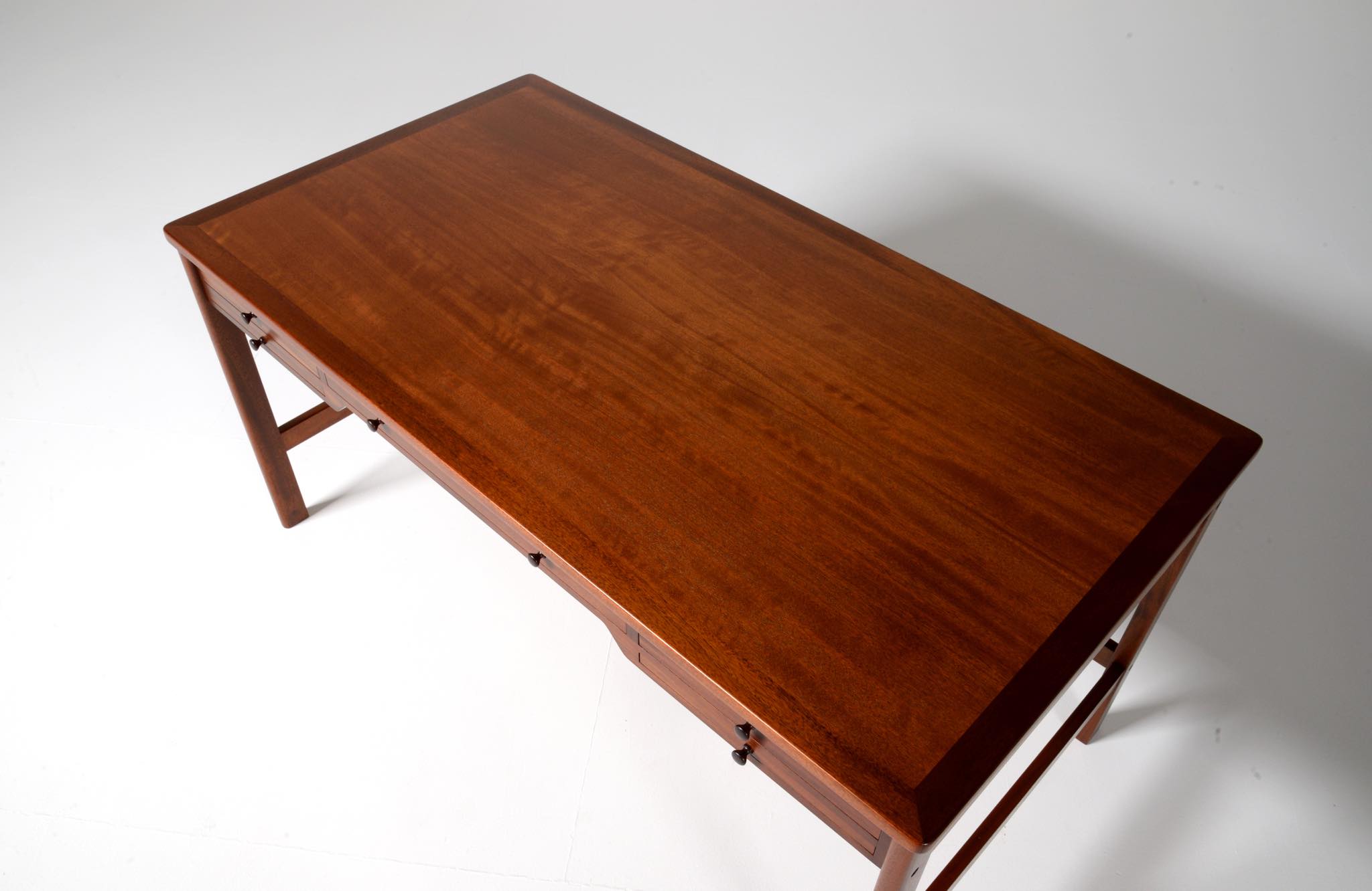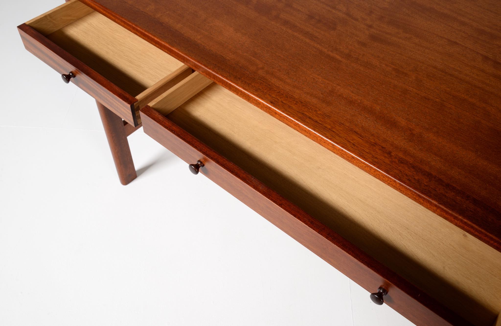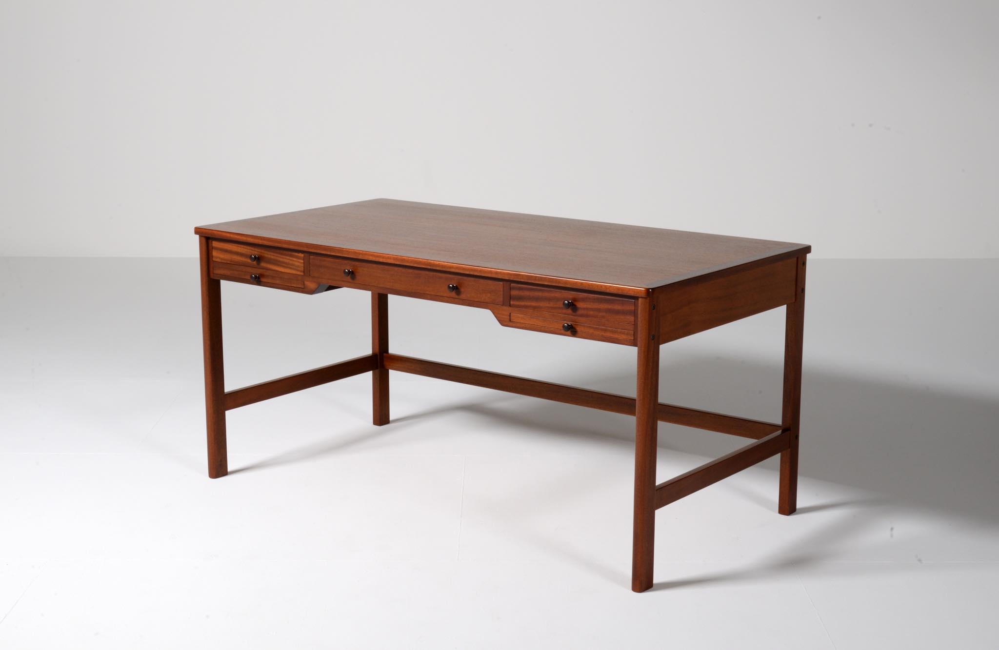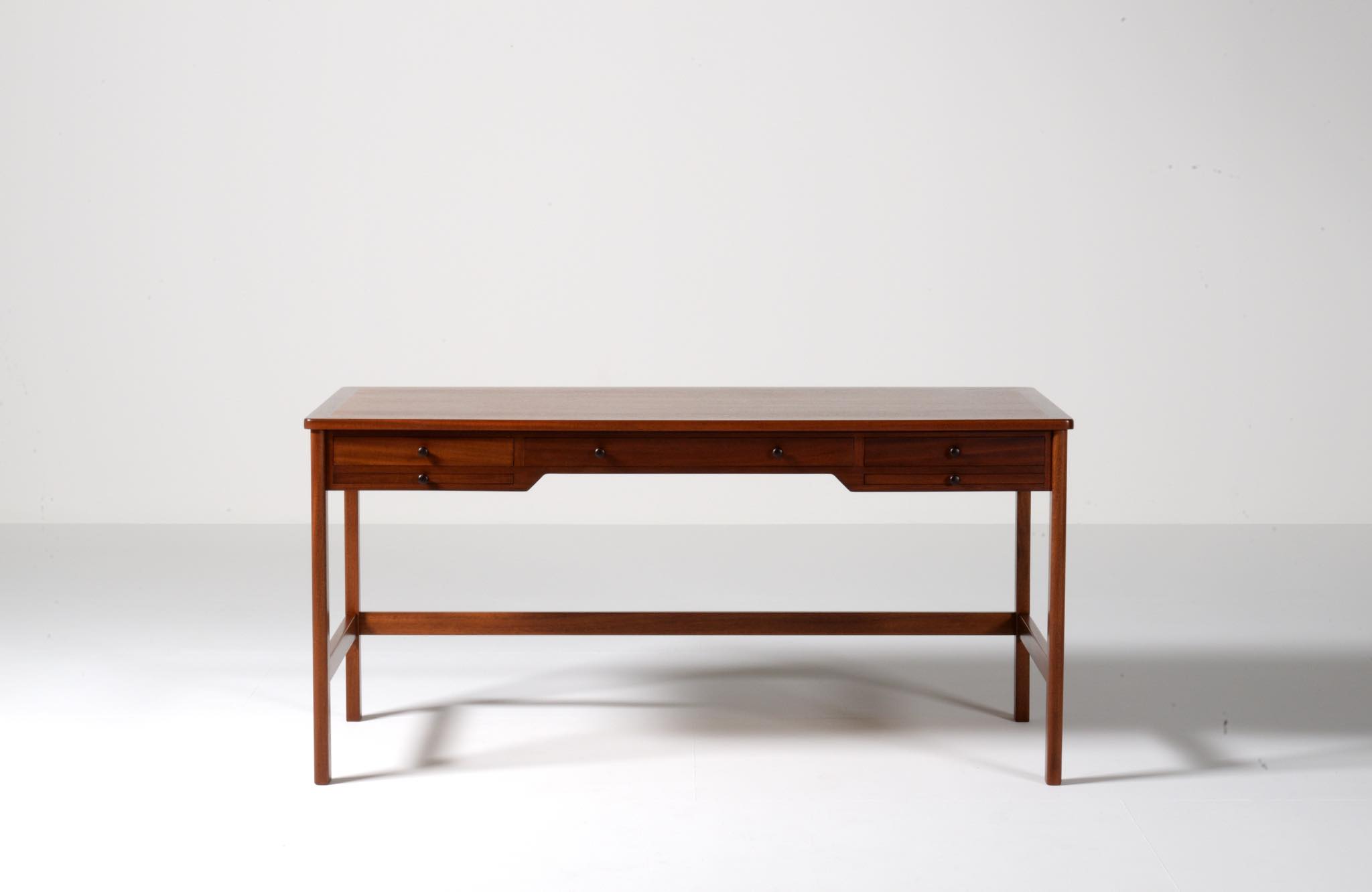デンマークの家具デザイナー、Rigmor Andersen /リグモール・アナセンによるライティングデスクです。1970年代頃に作られたものでしょう。レディースデスクを意識してデザインされたのでしょうか、薄くすっきりとしたデザインの抽斗が特徴的です。本体はマホガニー材で作られており、とても綺麗な状態です。