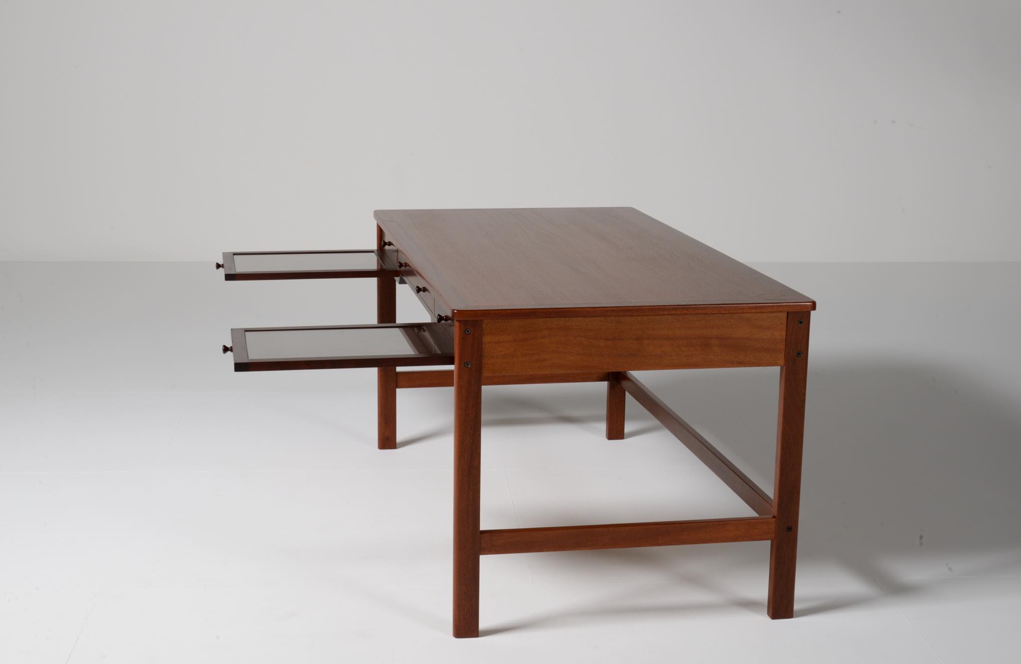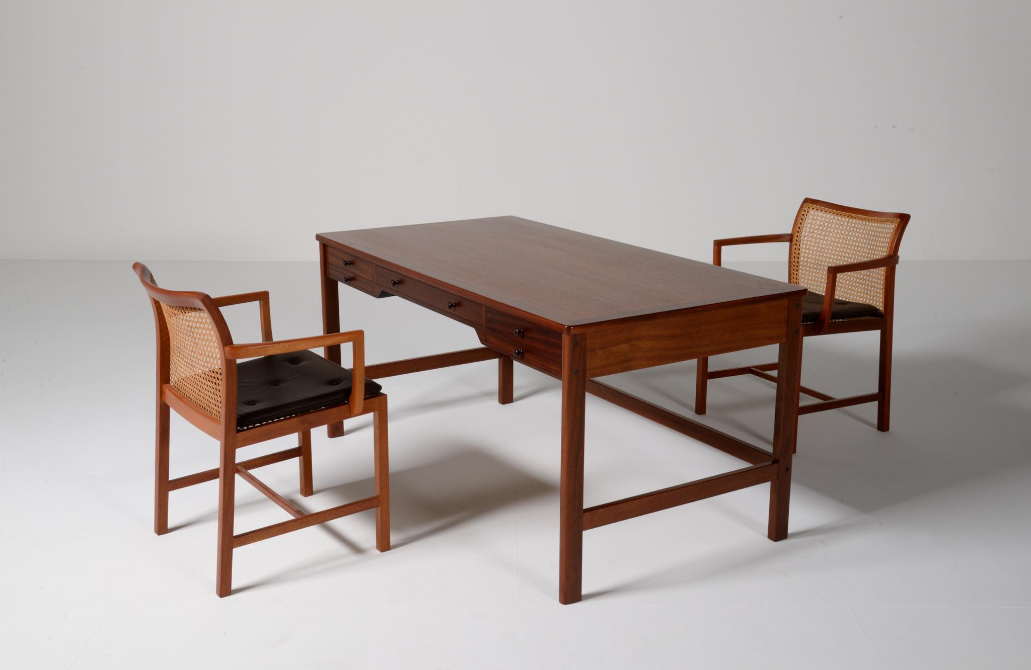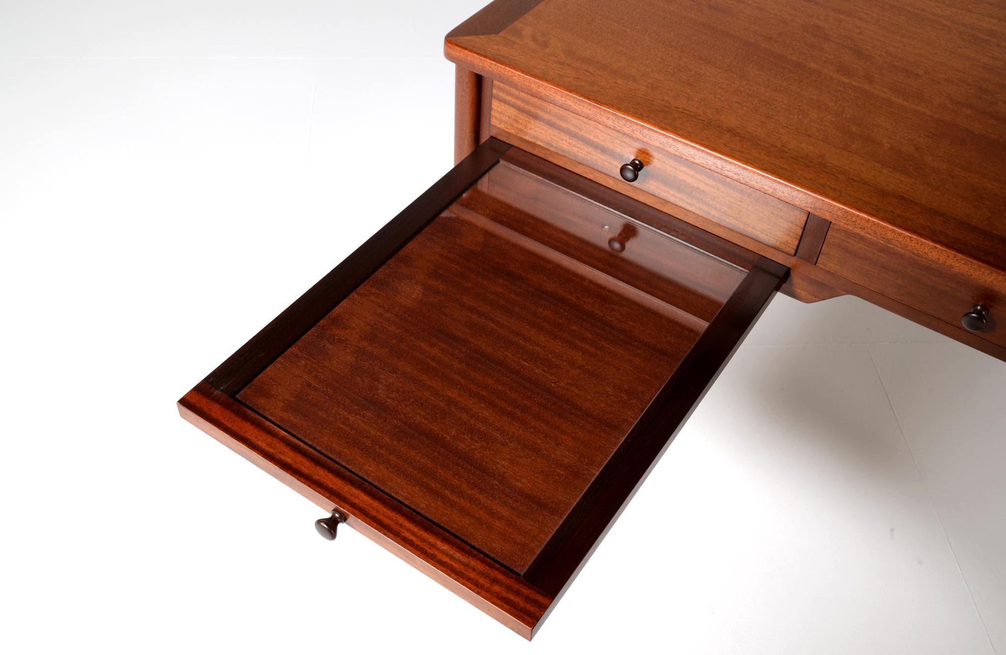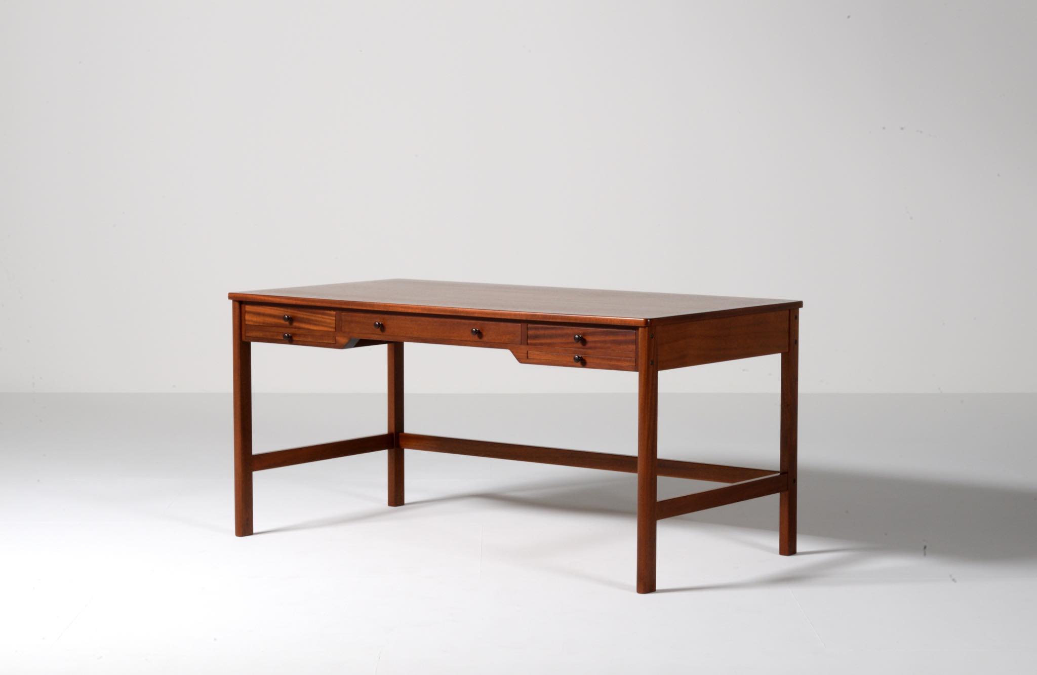 デンマークの家具デザイナー、Rigmor Andersen /リグモール・アナセンによるライティングデスクです。1970年代頃に作られたものでしょう。レディースデスクを意識してデザインされたのでしょうか、薄くすっきりとしたデザインの抽斗が特徴的です。本体はマホガニー材で作られており、とても綺麗な状態です。