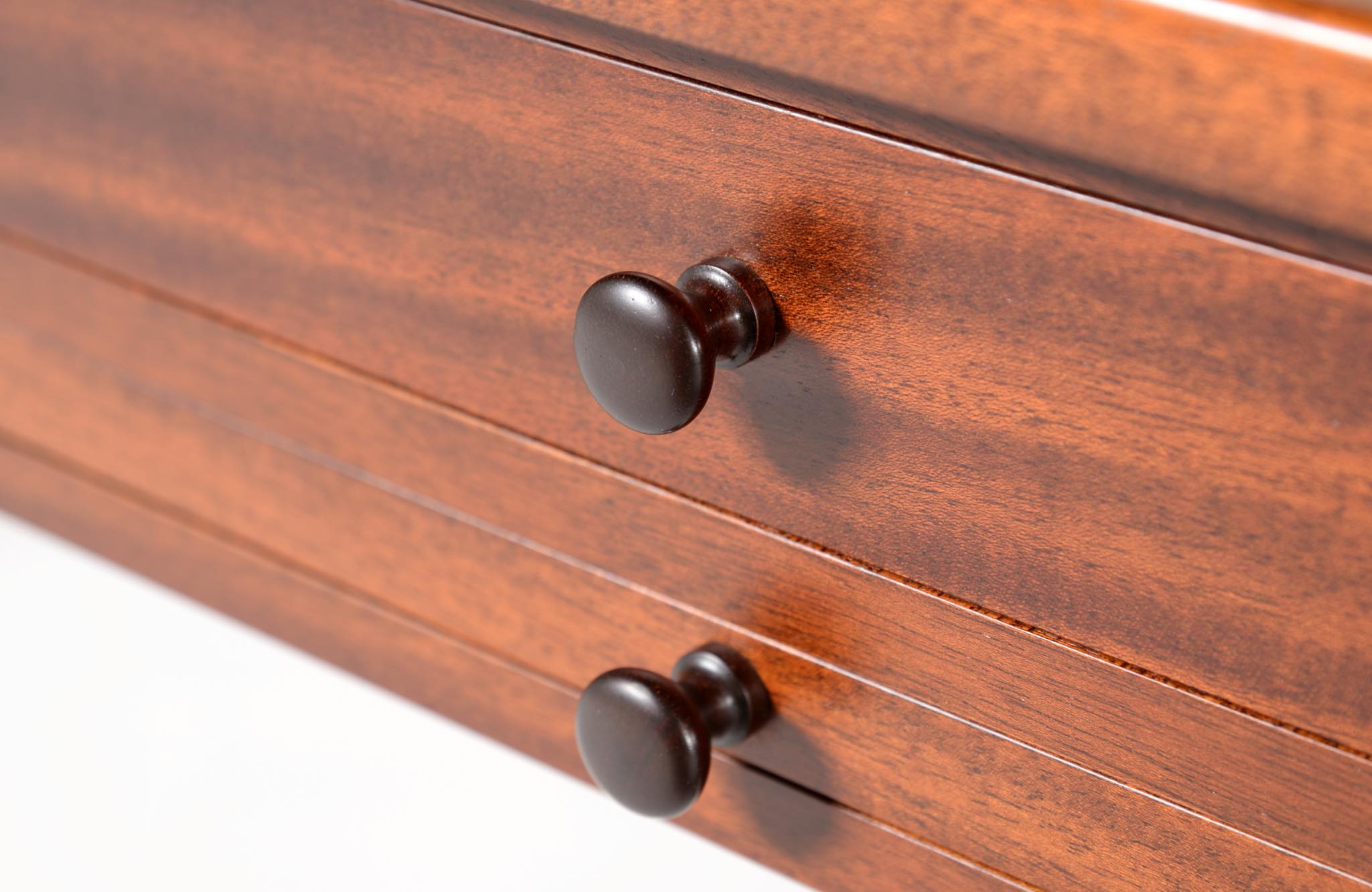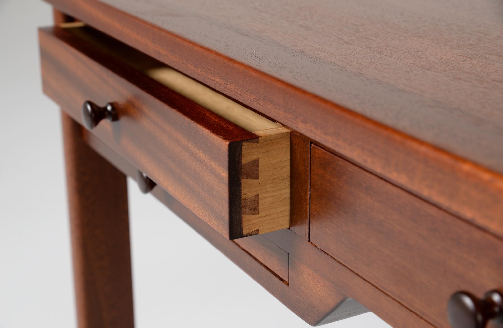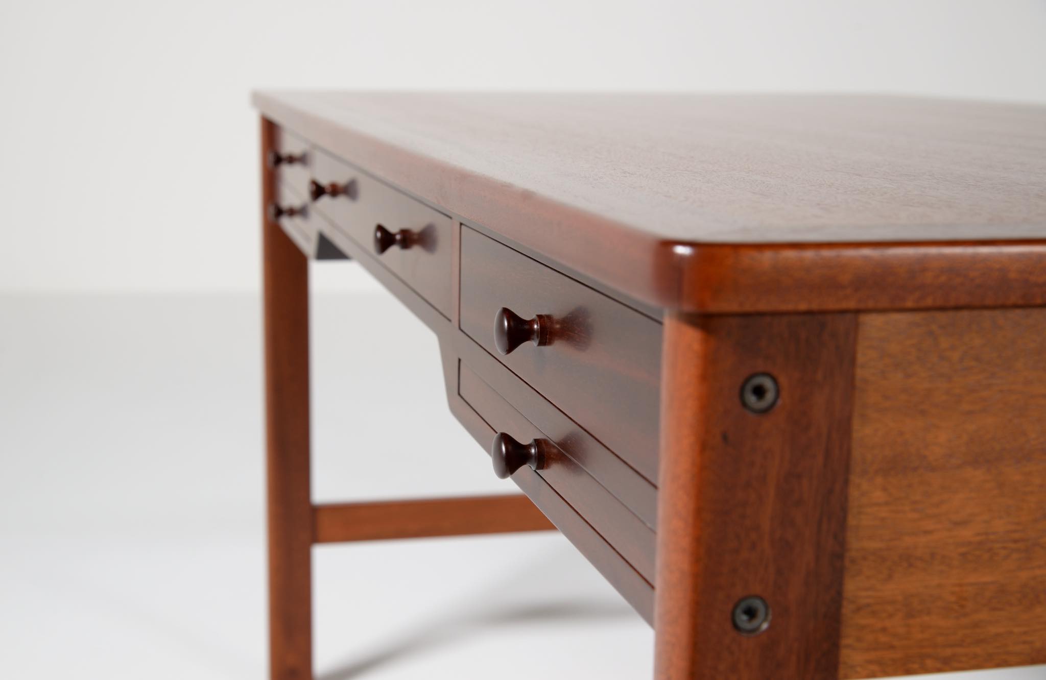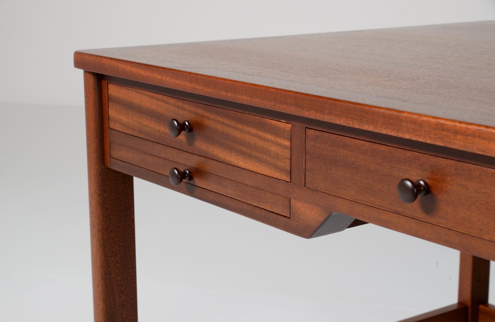 デンマークの家具デザイナー、Rigmor Andersen /リグモール・アナセンによるライティングデスクです。1970年代頃に作られたものでしょう。レディースデスクを意識してデザインされたのでしょうか、薄くすっきりとしたデザインの抽斗が特徴的です。本体はマホガニー材で作られており、とても綺麗な状態です。