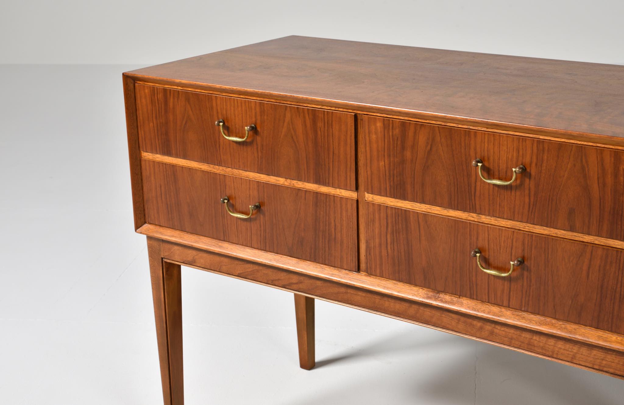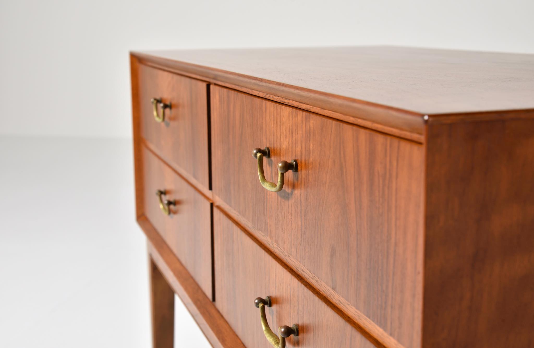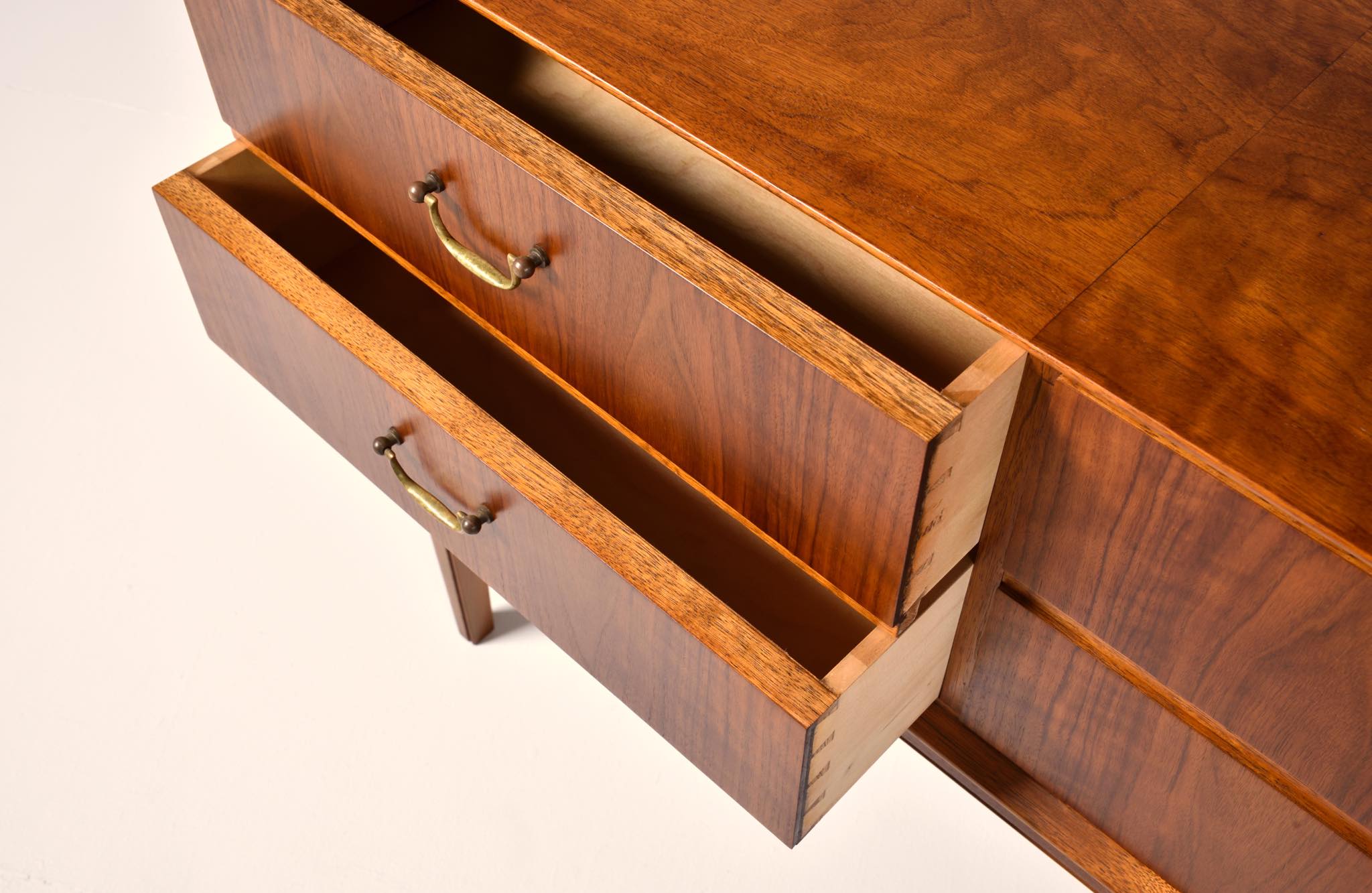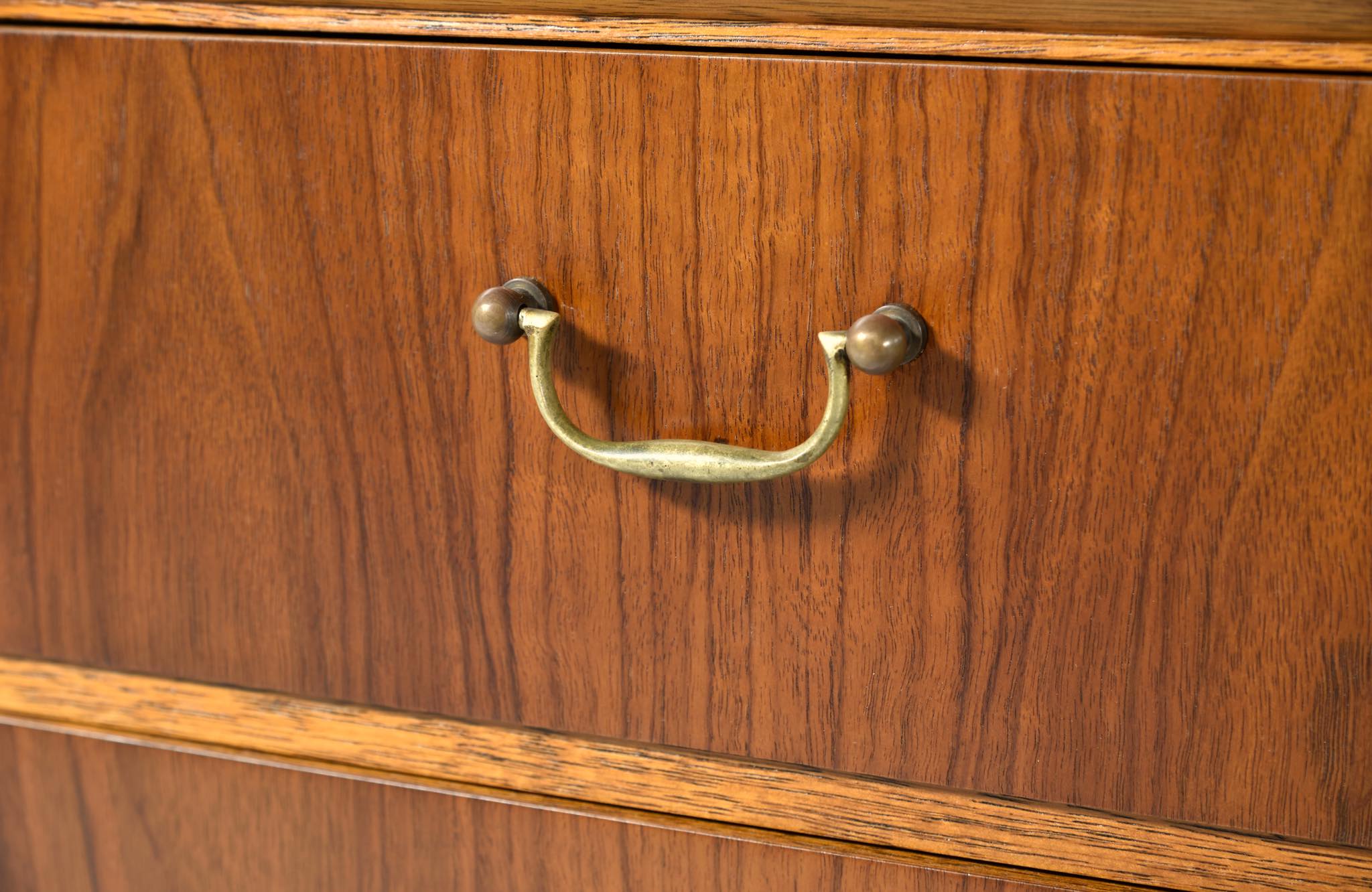 Walnut, Stained beech, Mahogany, Brass handle