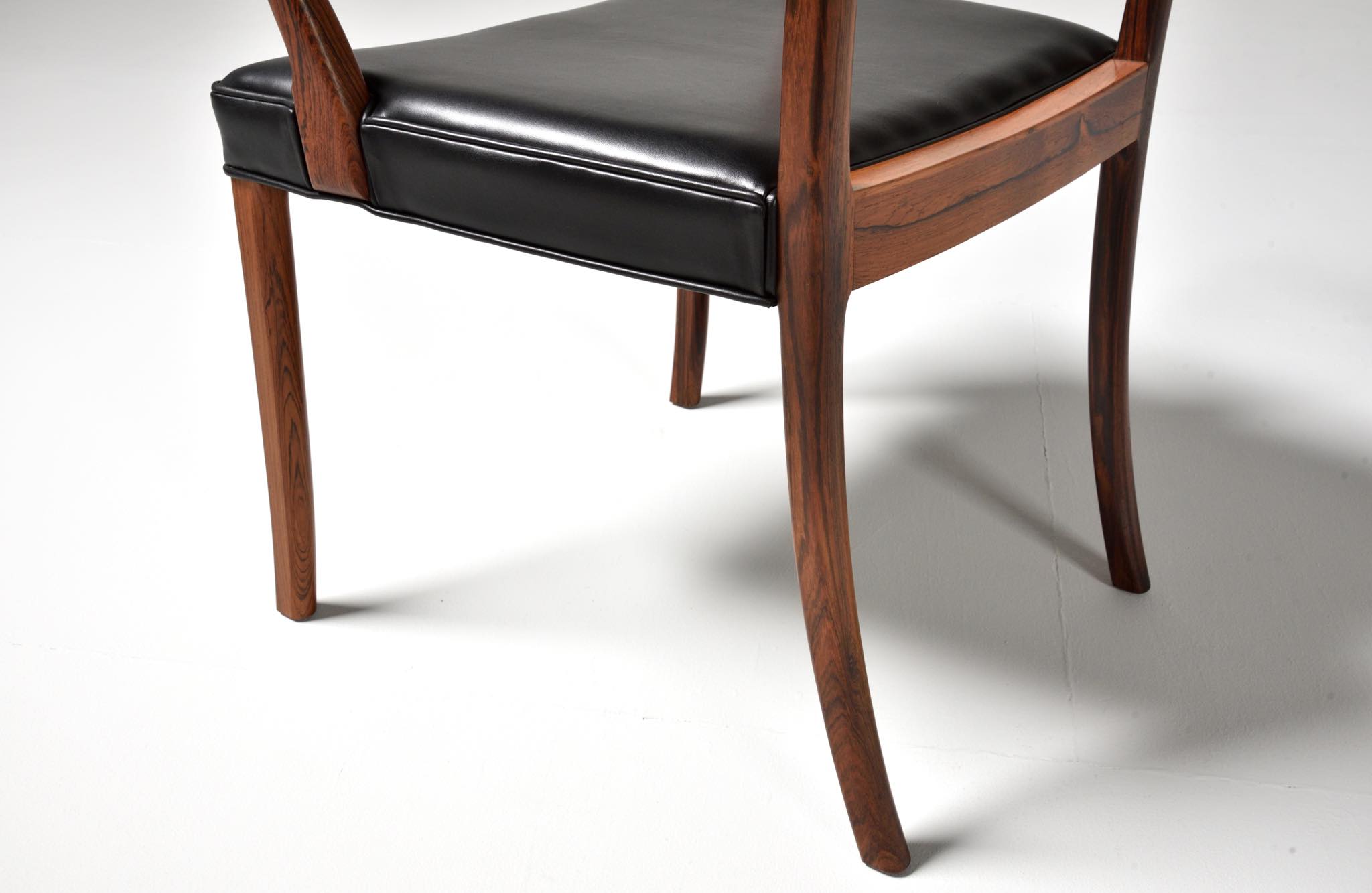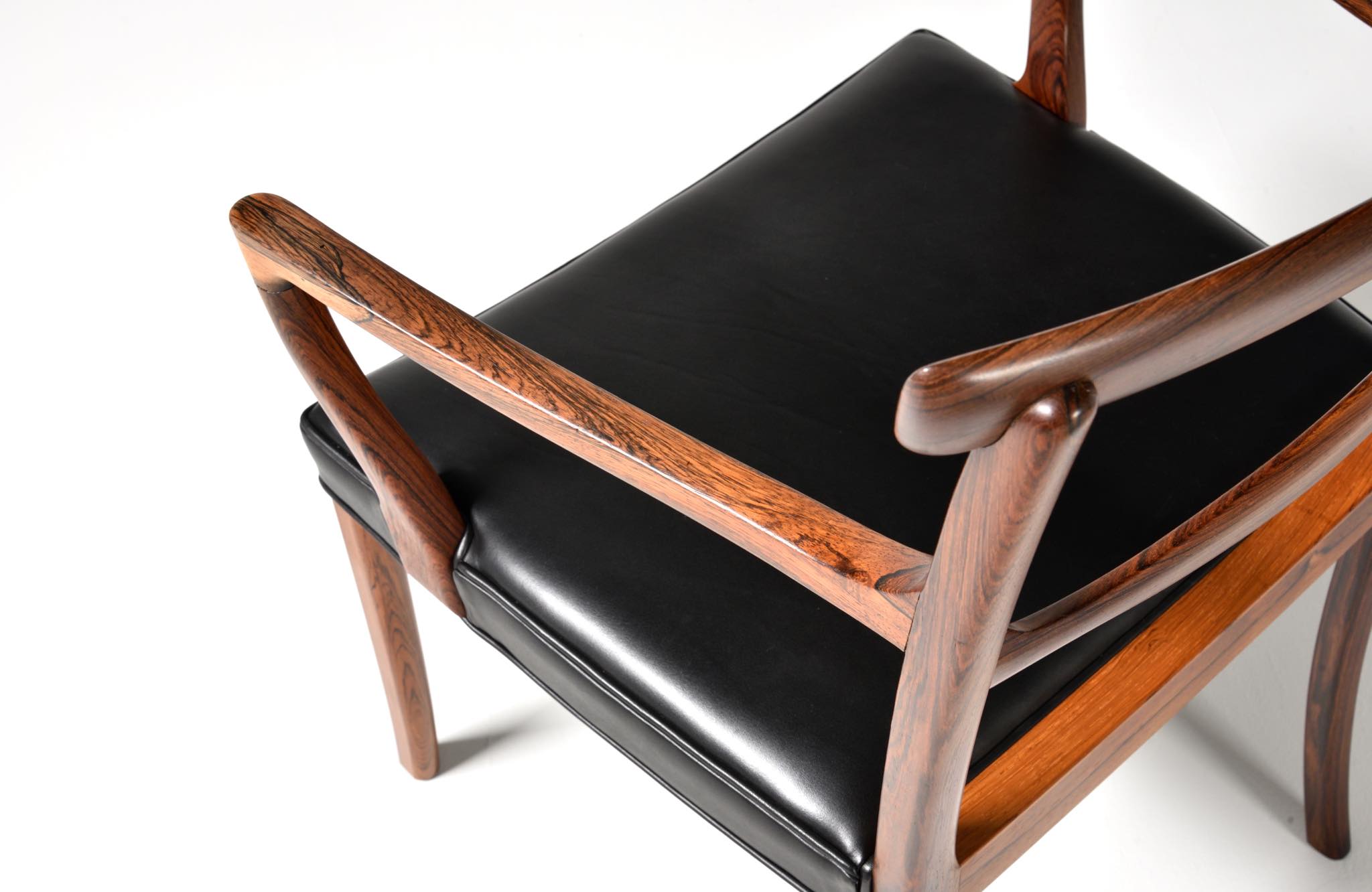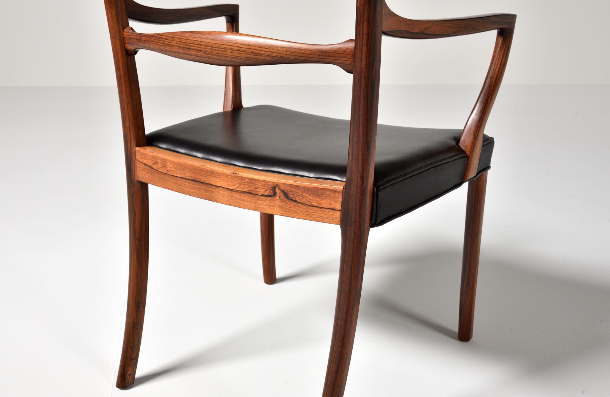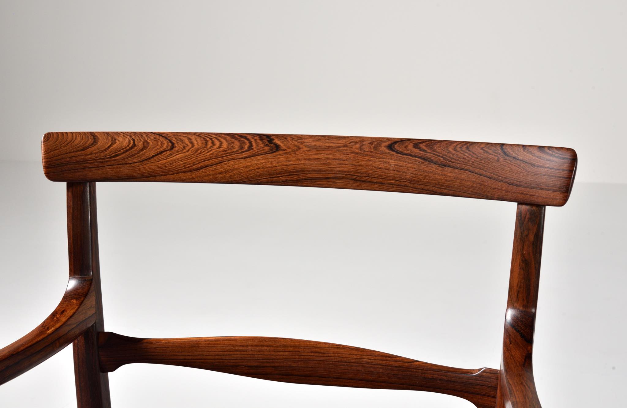 デンマークの家具デザイナーで、王立アカデミー家具科の教授を務めたOle Wanscher/オーレ・ヴァンシャーによるアームチェアです。1962年にダイニングシリーズとして発表されたモデルで、優雅なデザインが特長です。フレームには見応えのある良質なローズウッド材が用いられています。シートは近年張り替えられたもののようで、とても綺麗な状態です。
