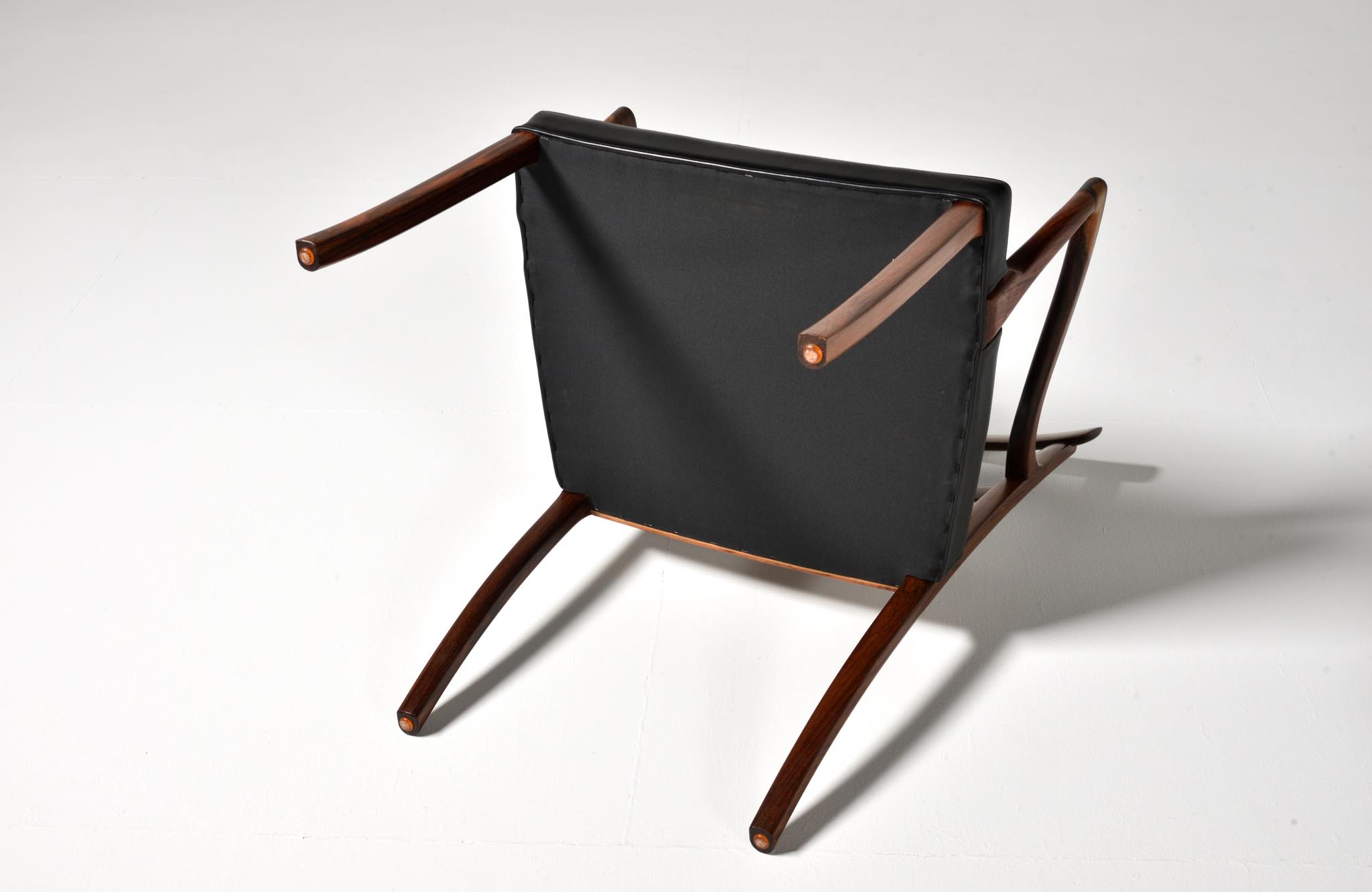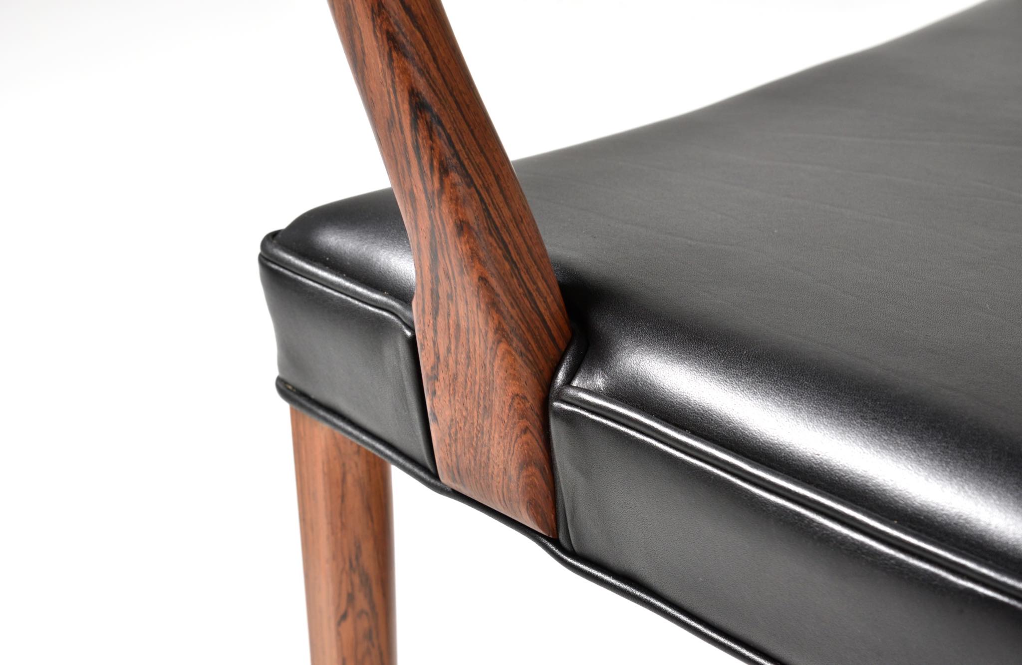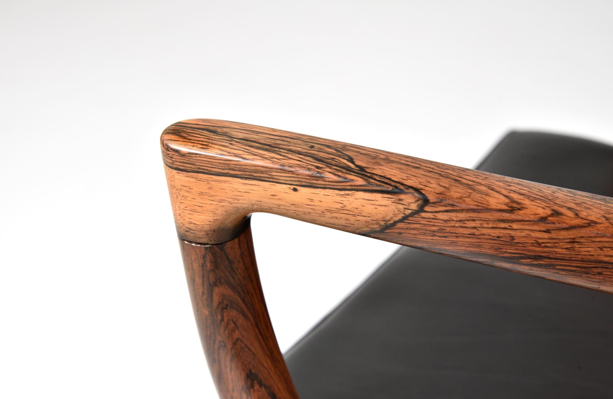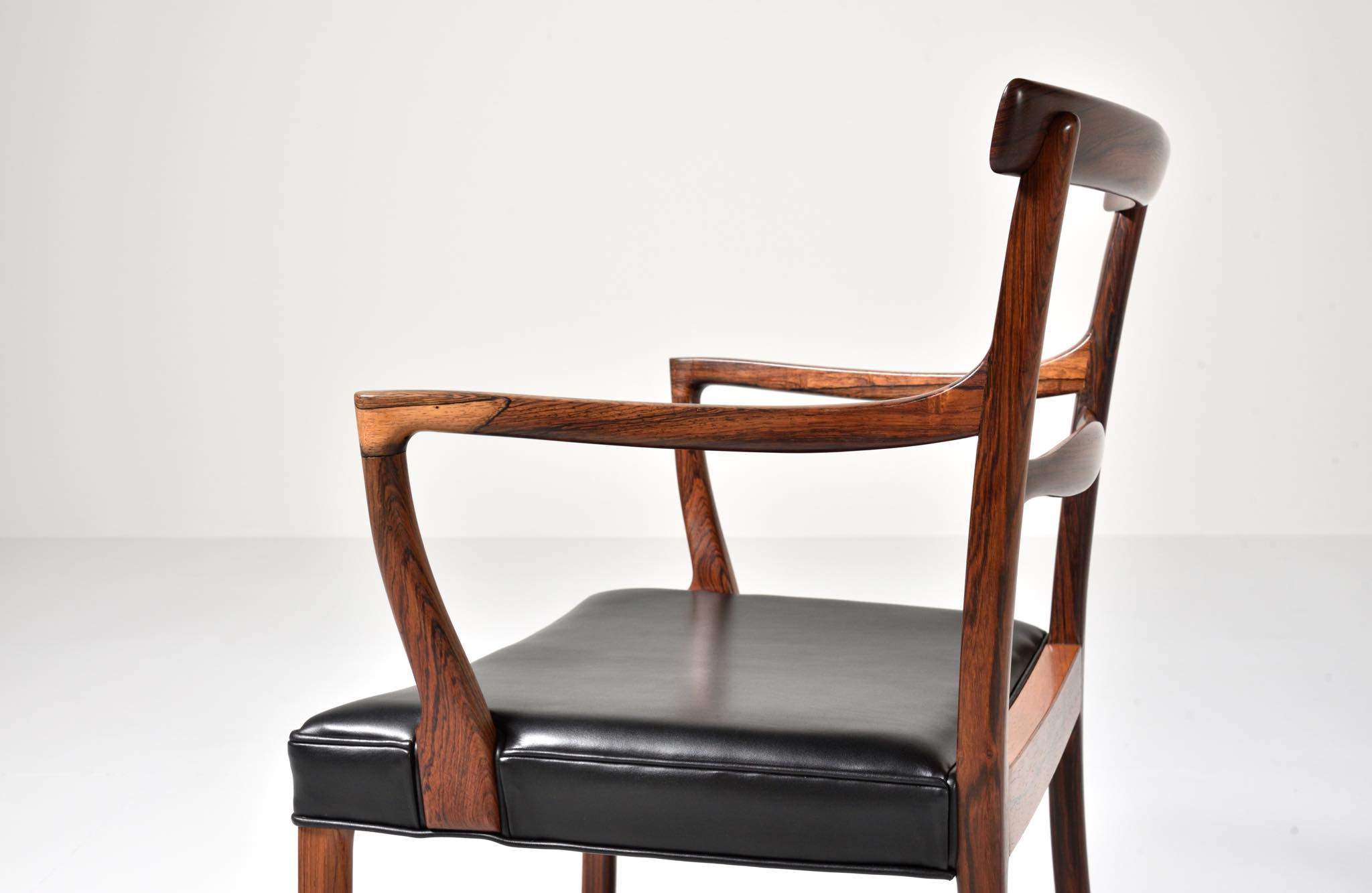 デンマークの家具デザイナーで、王立アカデミー家具科の教授を務めたOle Wanscher/オーレ・ヴァンシャーによるアームチェアです。1962年にダイニングシリーズとして発表されたモデルで、優雅なデザインが特長です。フレームには見応えのある良質なローズウッド材が用いられています。シートは近年張り替えられたもののようで、とても綺麗な状態です。