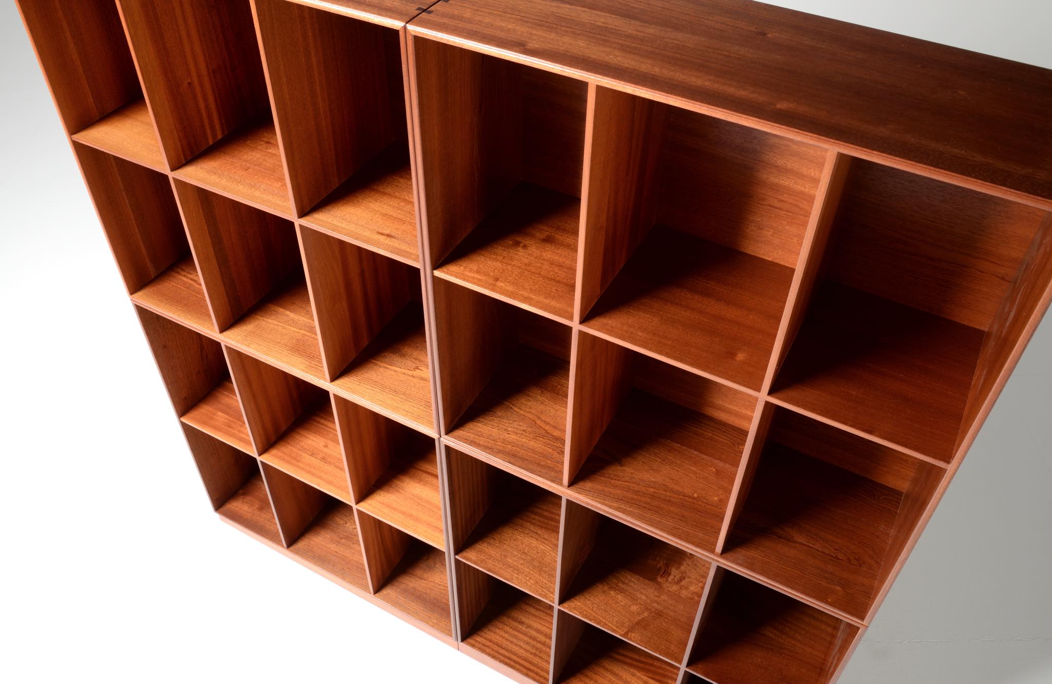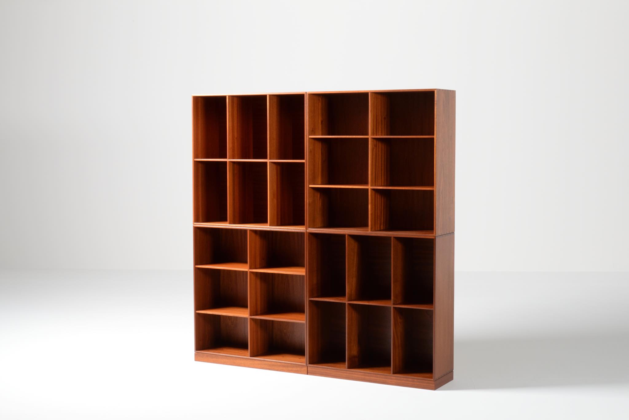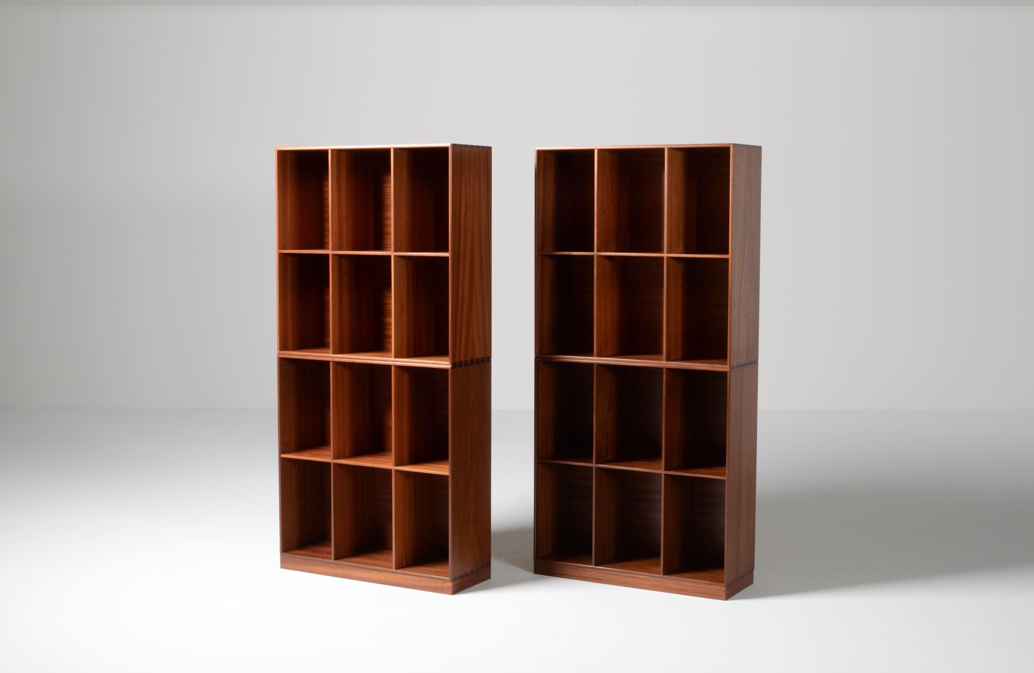 Rud. Rasmussen/ルド・ラスムッセン工房製、Mogens Koch/モーエンス・コッホによるブックケースシェルフ4棹セット、無垢のマホガニー材のタイプです。 丁寧に使われたようで、使用感少なく綺麗な状態です。こちらは4棹のブックシェルフと2台のベースとの6点セット(2列2段)となりますが、複数ストックがございますので、ご希望の数量がございましたらお問い合わせください。シェルフを壁に掛けるための金具もございますので、ご検討の際にはご相談ください。