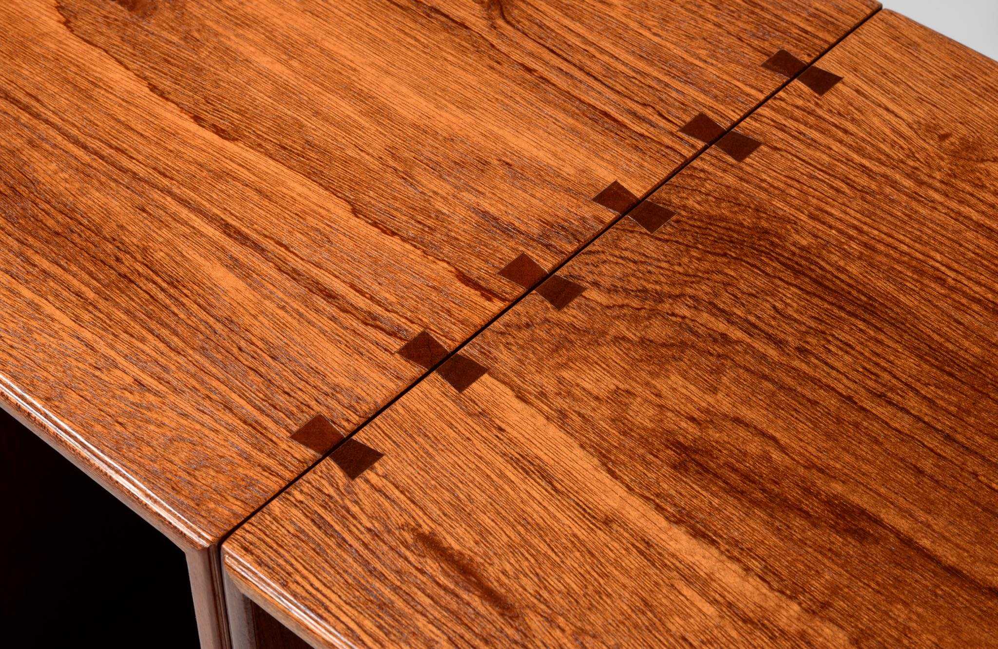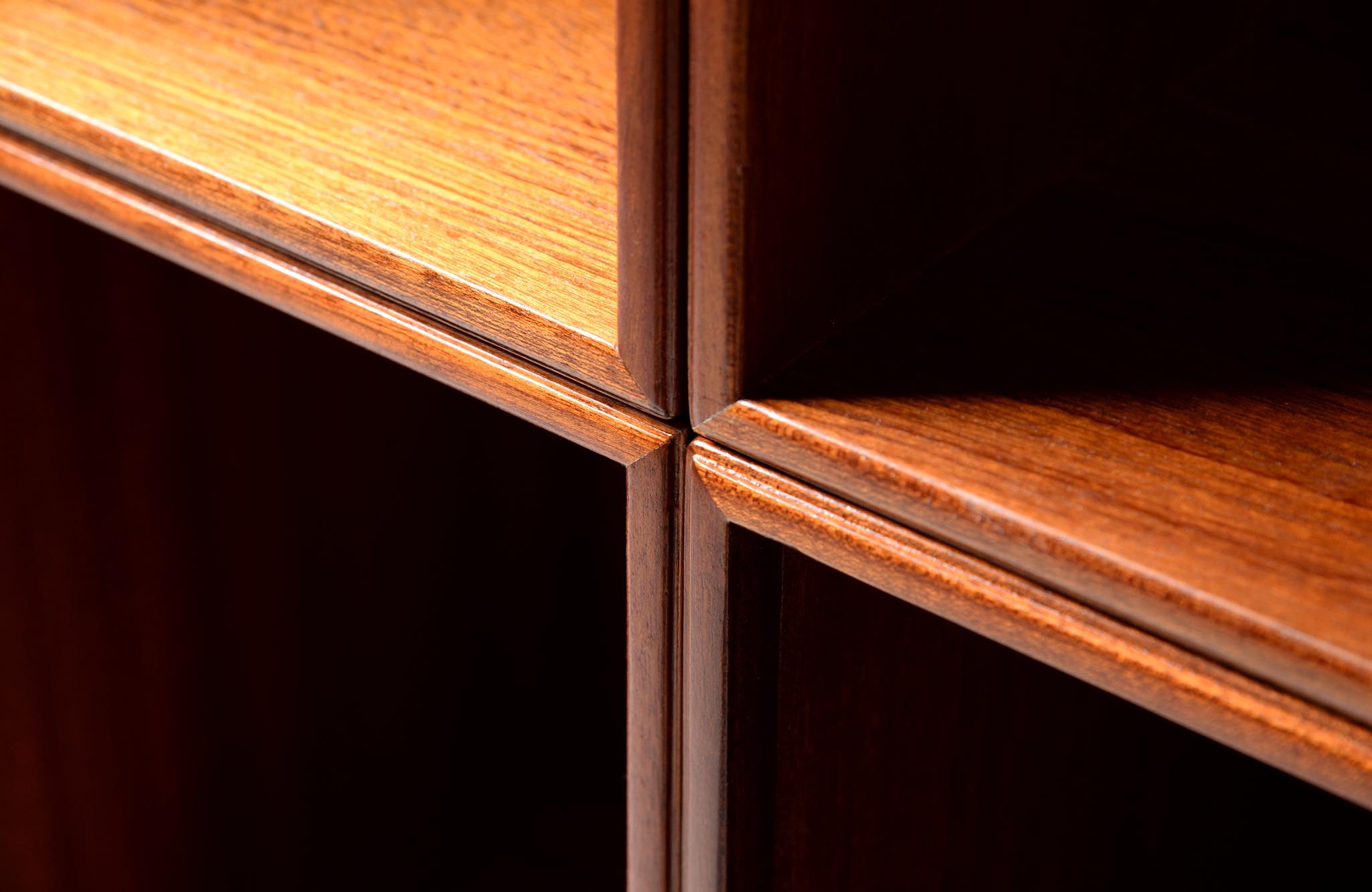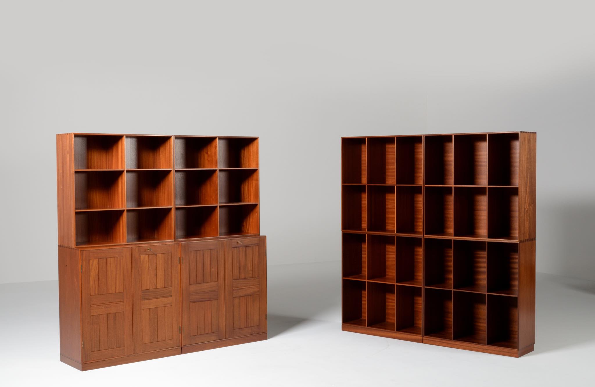 Rud. Rasmussen/ルド・ラスムッセン工房製、Mogens Koch/モーエンス・コッホによるブックケースシェルフ4棹セット、無垢のマホガニー材のタイプです。 丁寧に使われたようで、使用感少なく綺麗な状態です。こちらは4棹のブックシェルフと2台のベースとの6点セット(2列2段)となりますが、複数ストックがございますので、ご希望の数量がございましたらお問い合わせください。シェルフを壁に掛けるための金具もございますので、ご検討の際にはご相談ください。