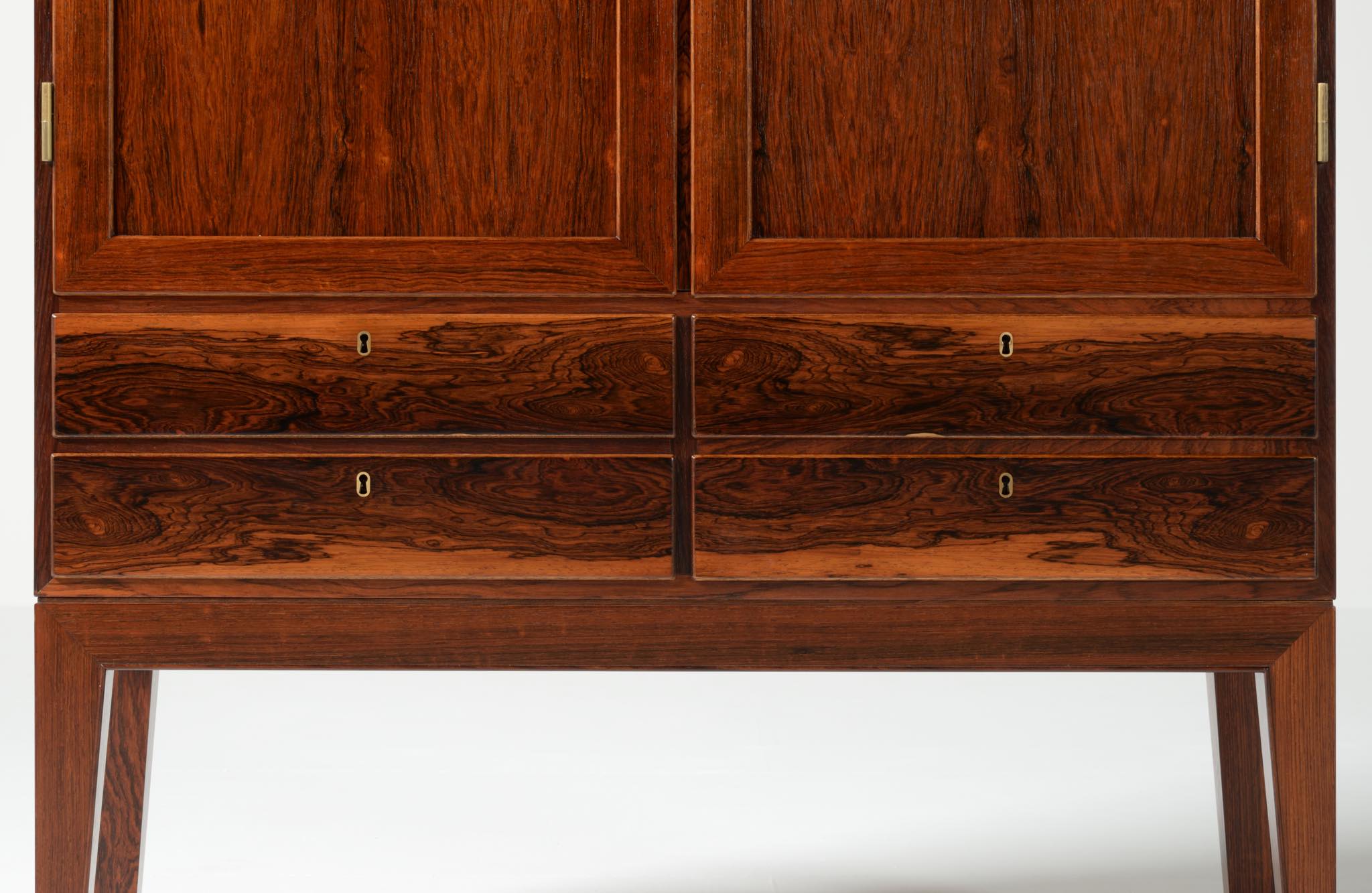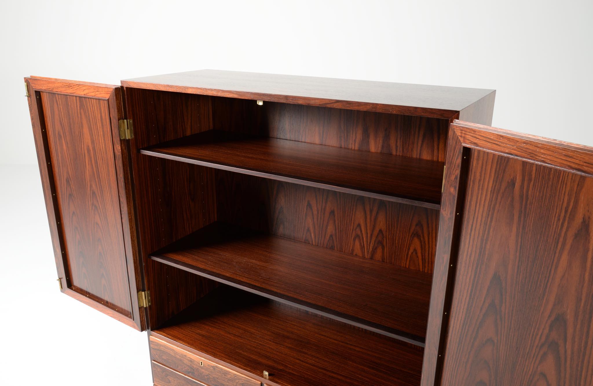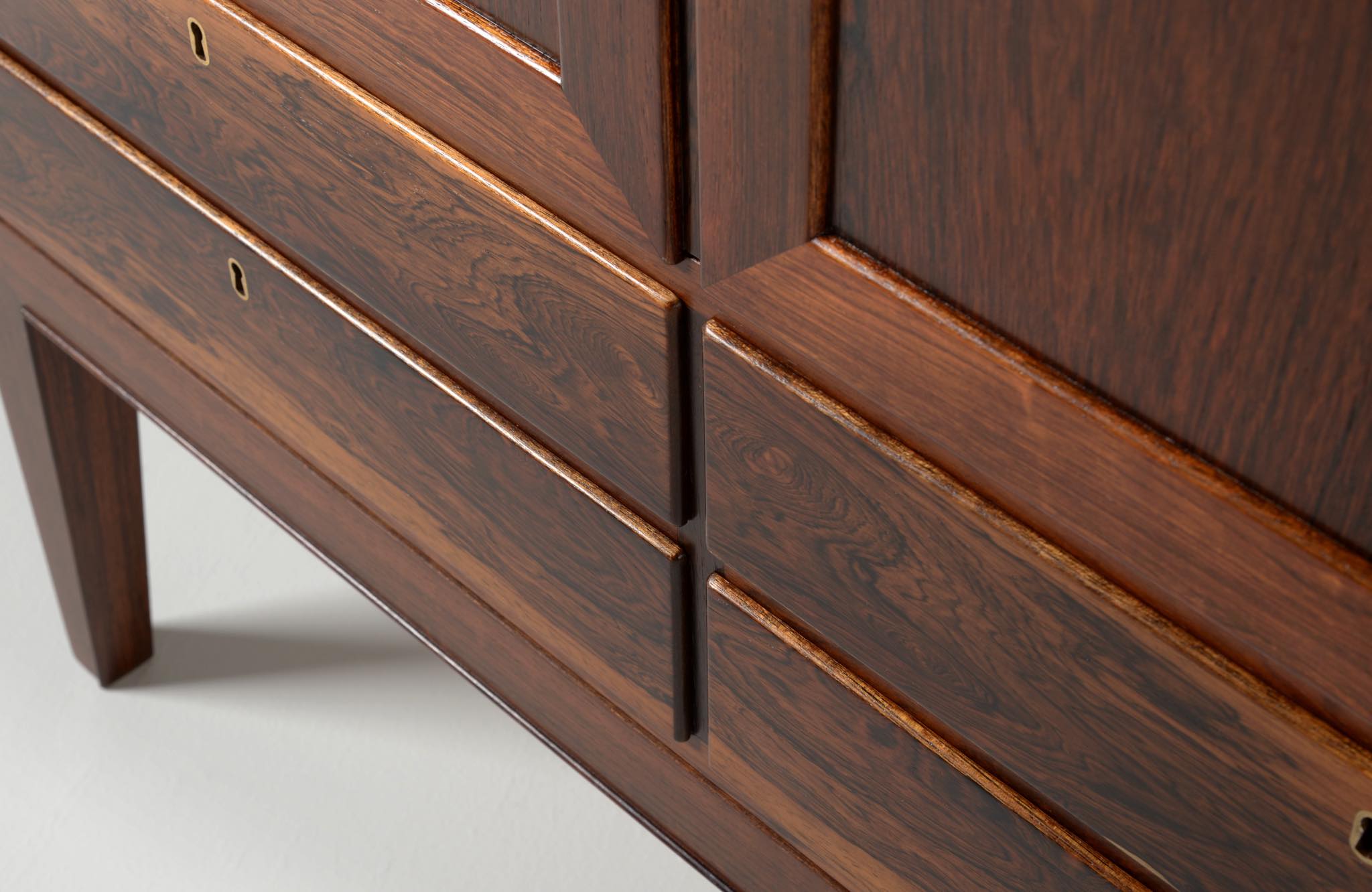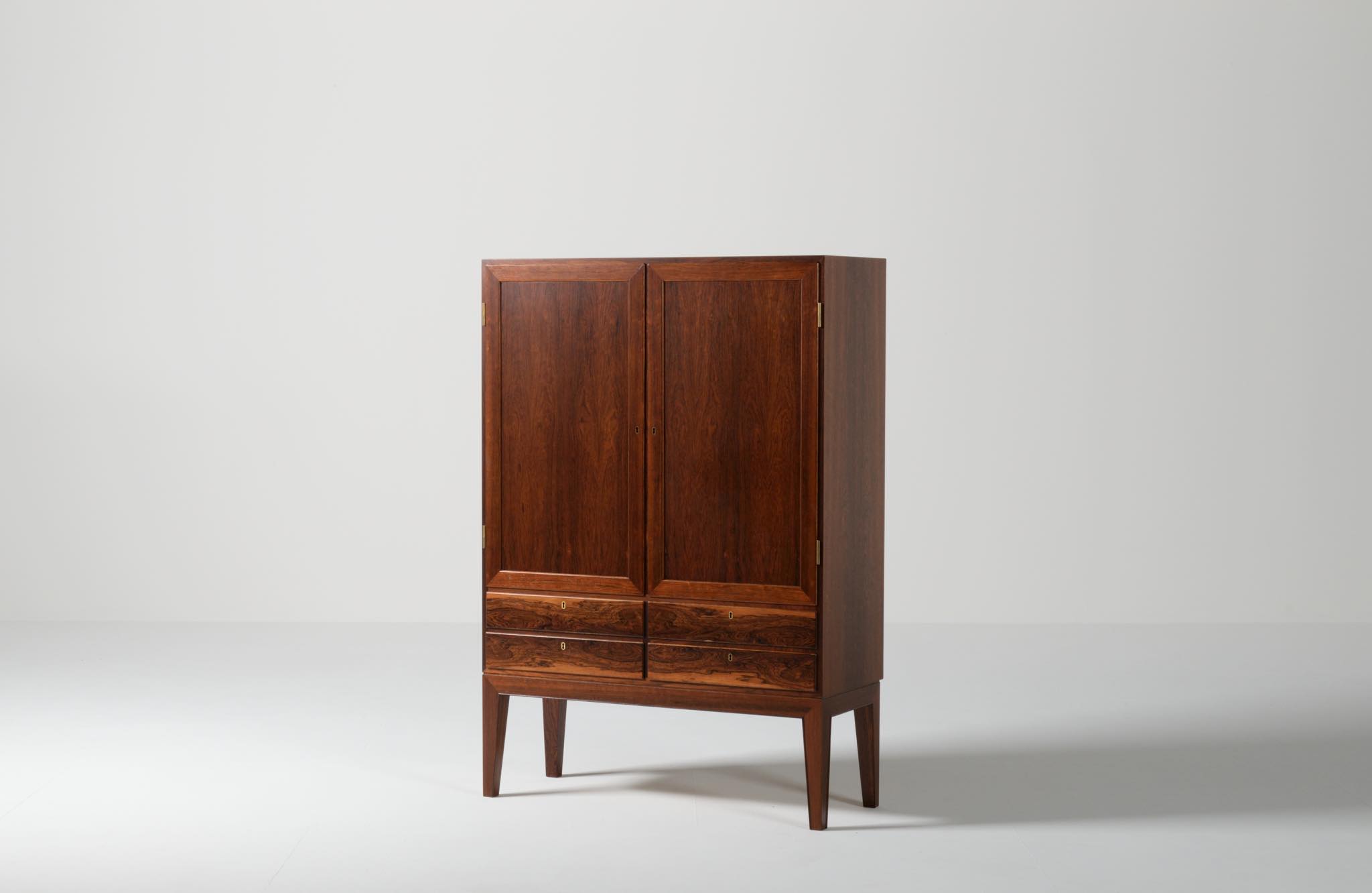デンマークの家具デザイナー、Kai Winding/カイ・ウィンディングによるカップボードキャビネットです。1960年代に作られたものでしょう。ブラジリアンと思しきローズウッドが用いられており、抽斗の面板には見ごたえのある木目文様が現れています。目立ったダメージなどはなくコンディションは良好です。