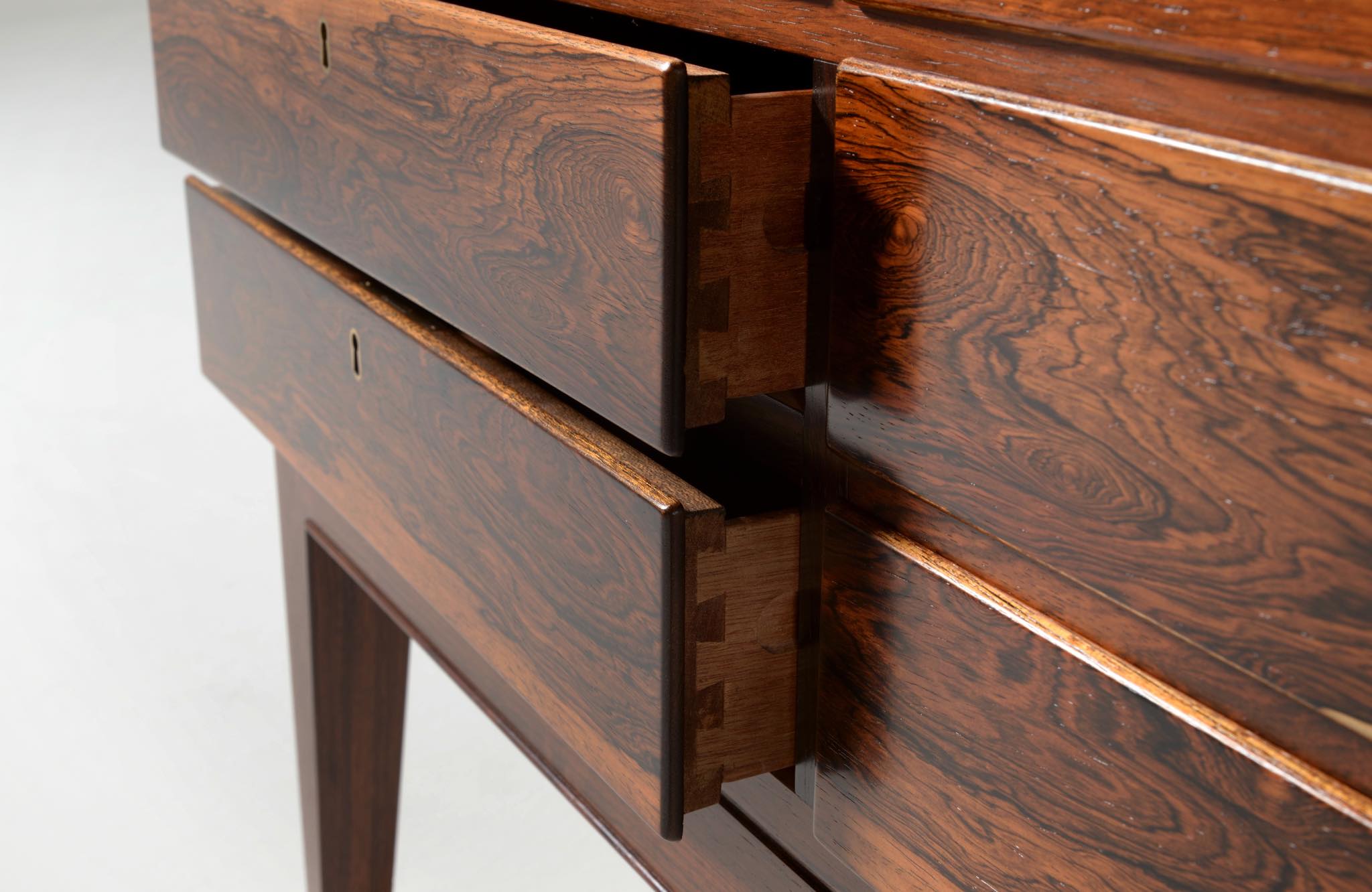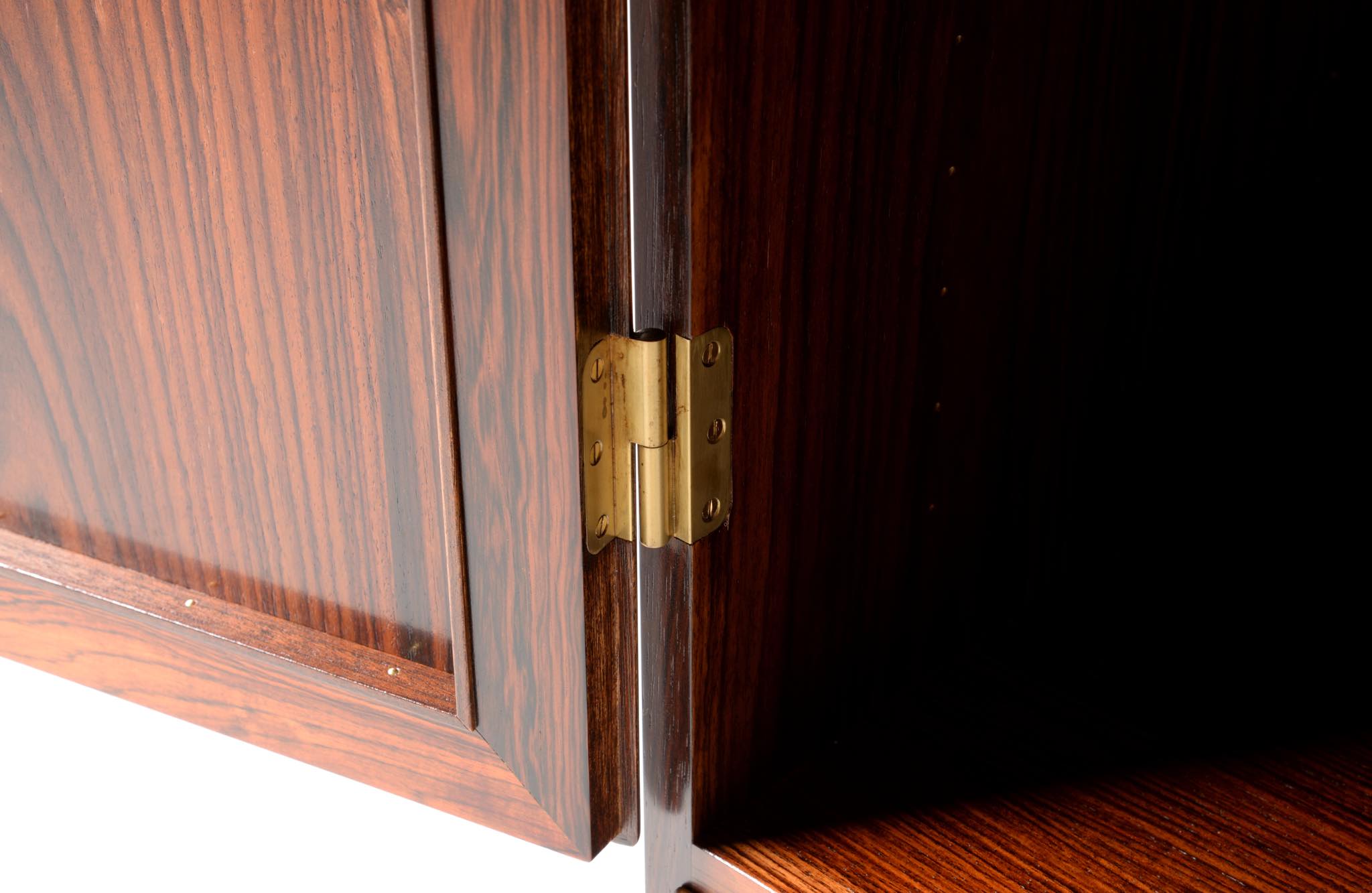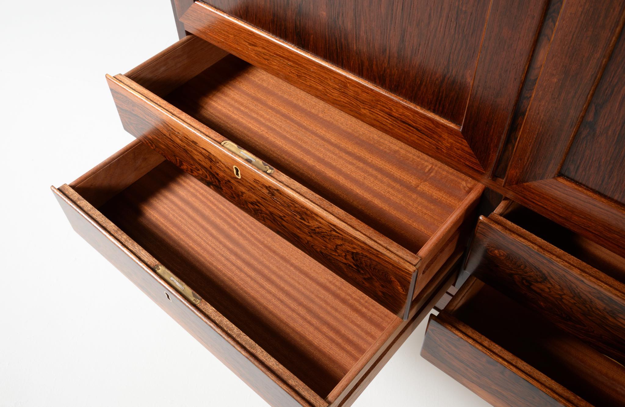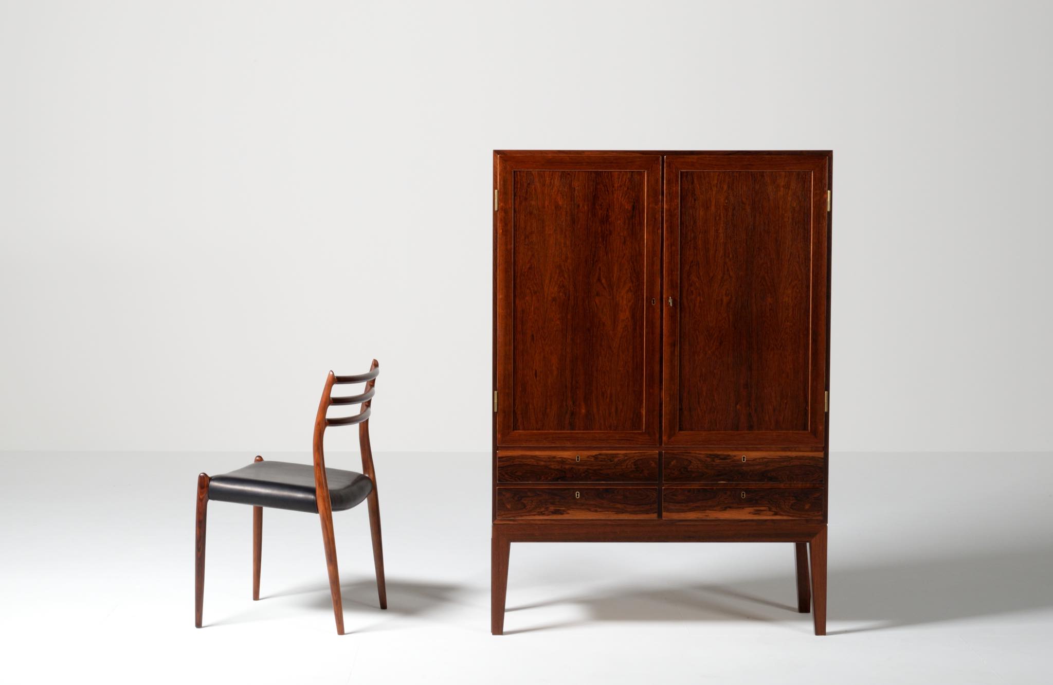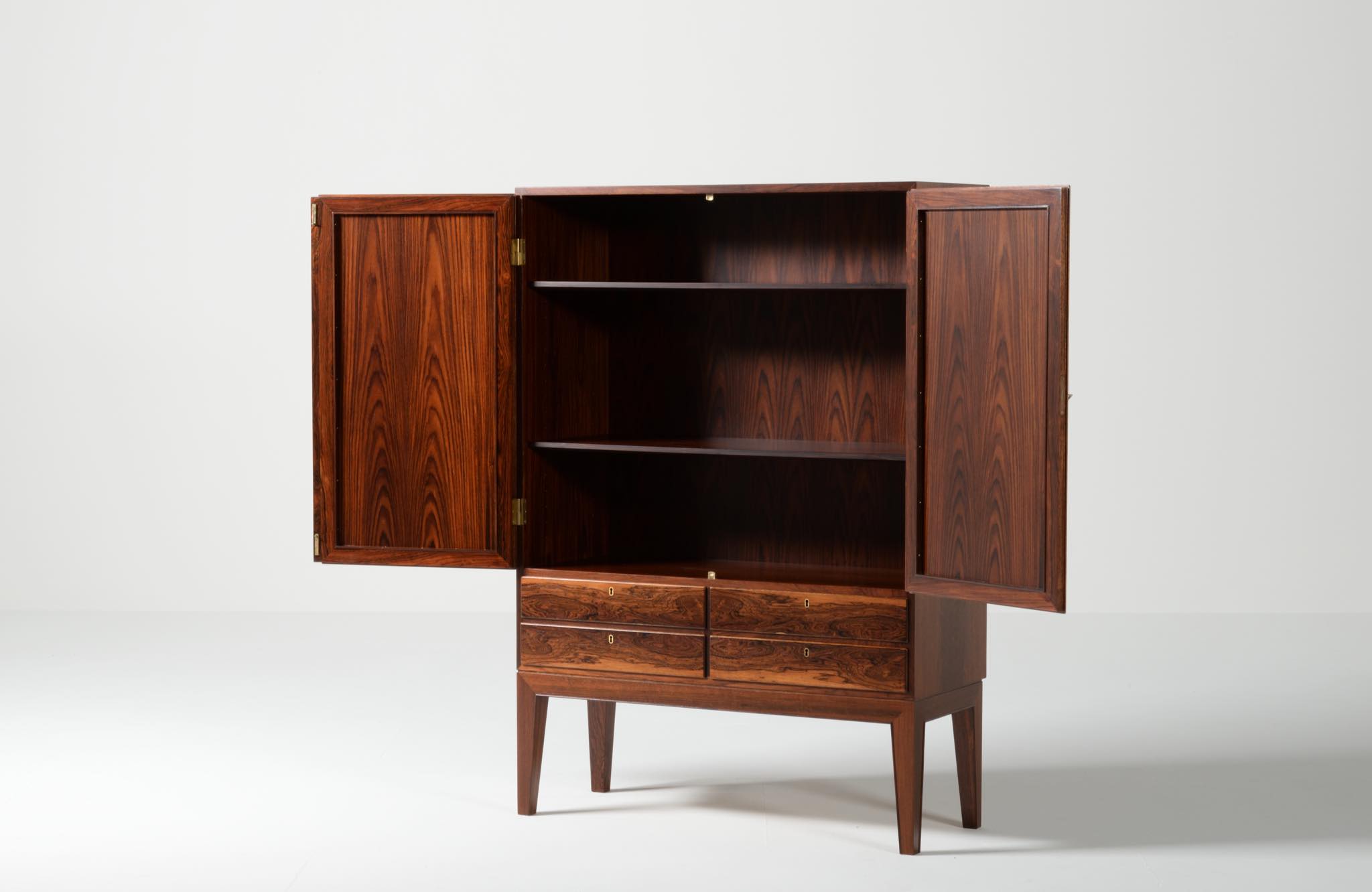 デンマークの家具デザイナー、Kai Winding/カイ・ウィンディングによるカップボードキャビネットです。1960年代に作られたものでしょう。ブラジリアンと思しきローズウッドが用いられており、抽斗の面板には見ごたえのある木目文様が現れています。目立ったダメージなどはなくコンディションは良好です。