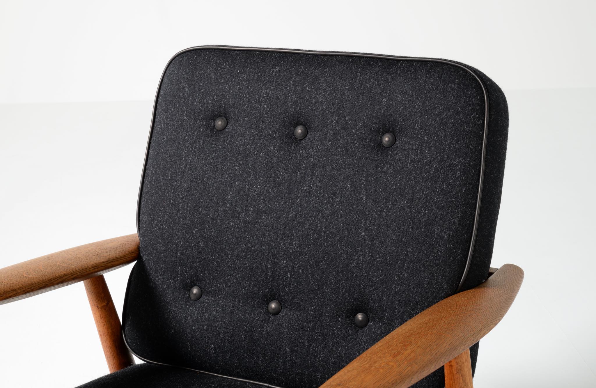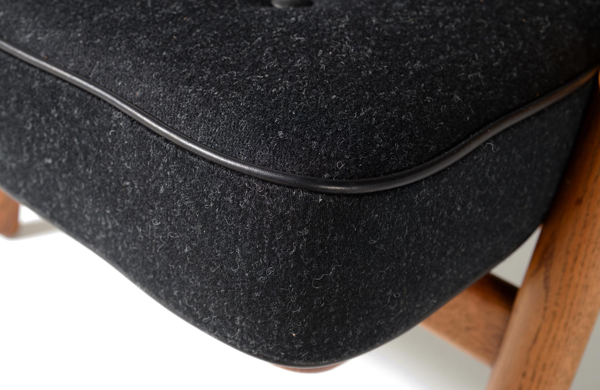Oak, New wool fabric (Gabriel: Savak 00005), Leather piping and button (CAMO leather: VACONA)