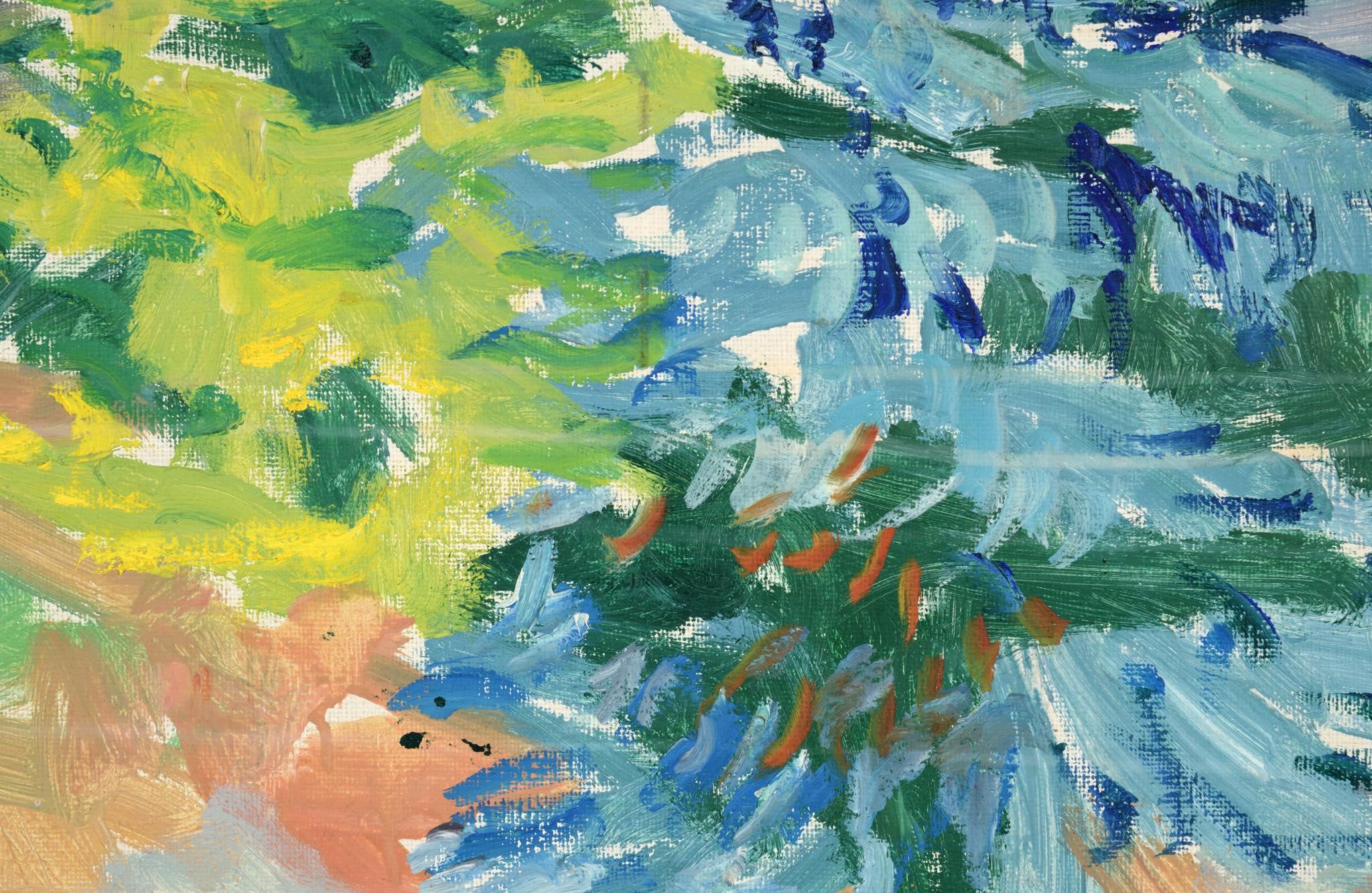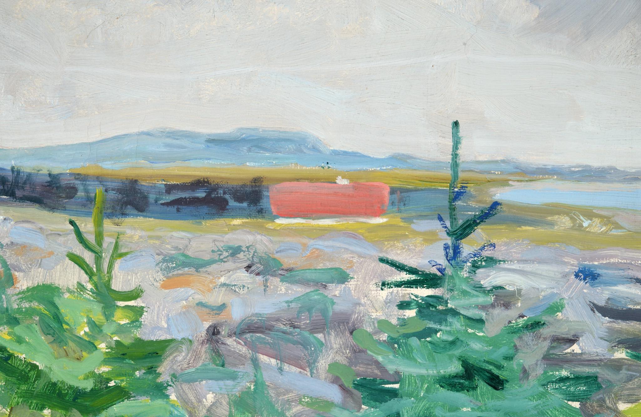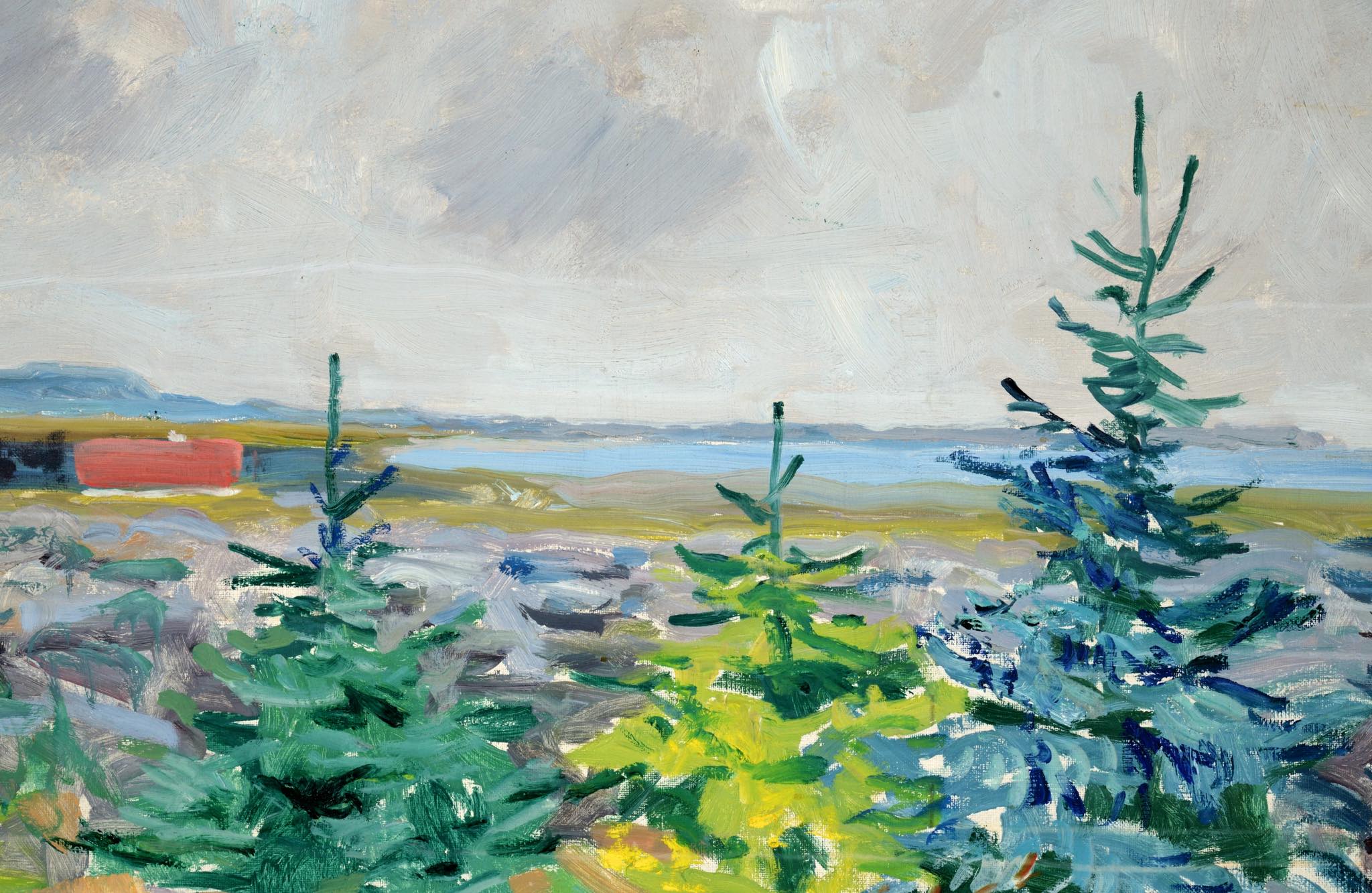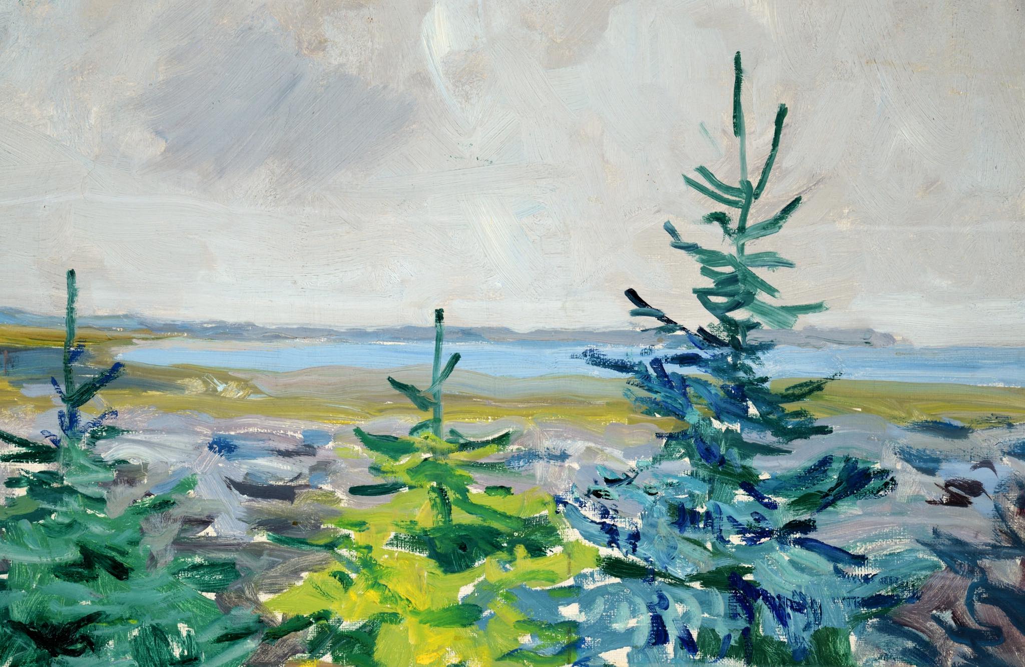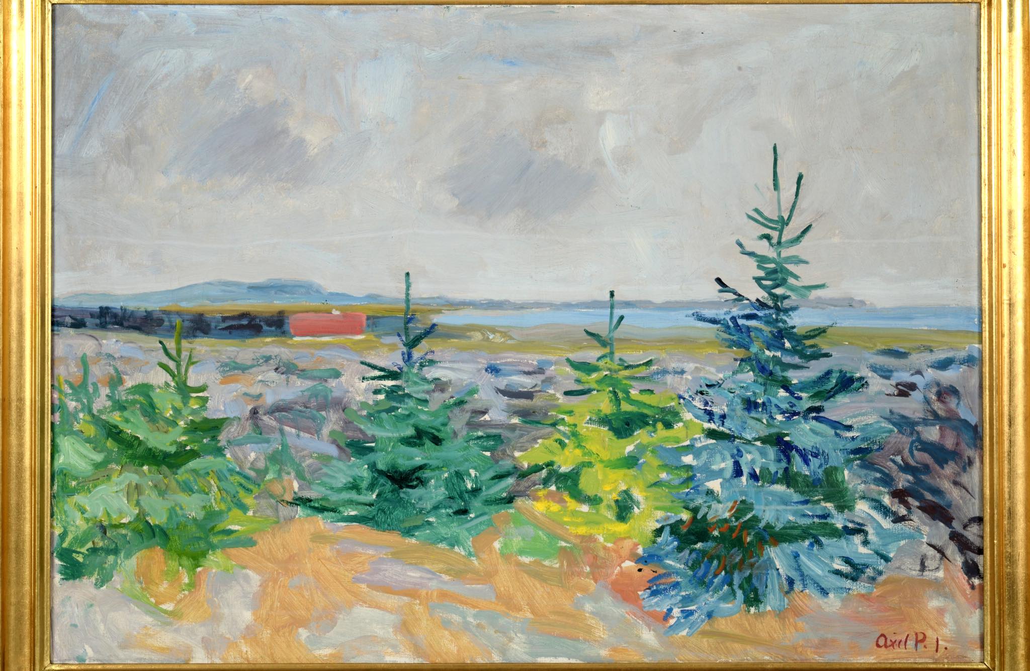 20世紀前葉に活躍したデンマークの画家、Axel Peder Jensen/アクセル・ペダー・イェンセンによる風景画油彩作品です。背面の書き込みから、ユトランド半島北西部の沿岸部の風景を描いた作品のようです。絵の具の発色が良く、綺麗な状態です。金箔のフレームはオリジナルで、目立ったダメージはなくコンディションは良好です。タイトルは便宜上当店で付けさせて頂きました。