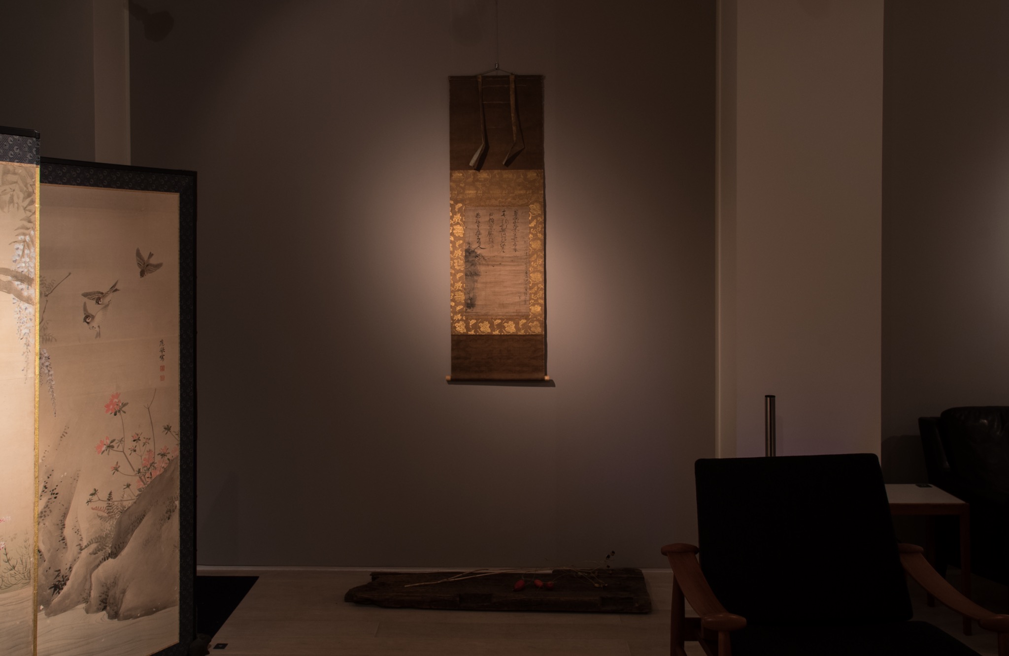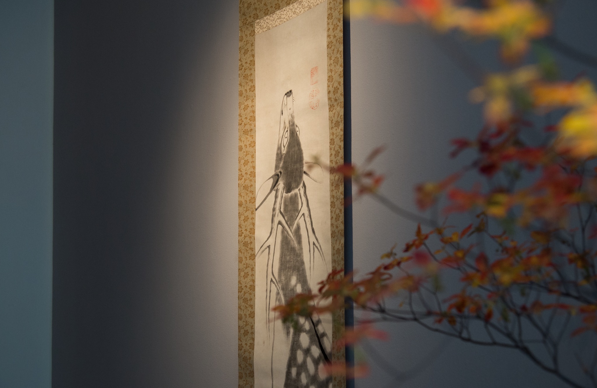 今回の展示では、江戸時代の伊藤若冲や円山応挙、池大雅、曾我蕭白など有名人気絵師の作品から、奈良、平安、鎌倉、室町時代の書など幅広い作品が並びます。和風建築や床の間に捉われない、現代の生活と古美術の融合する空間をぜひお楽しみ下さい。