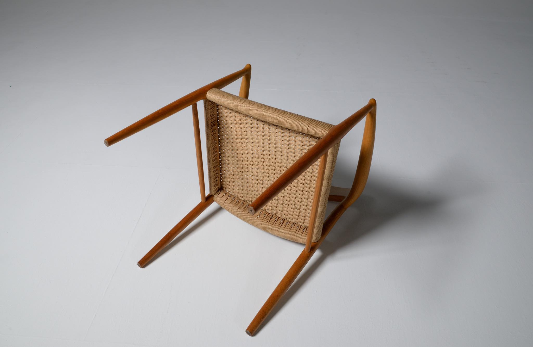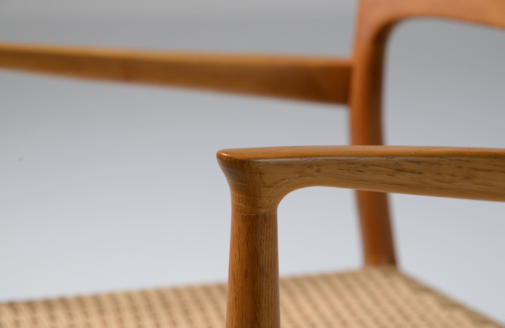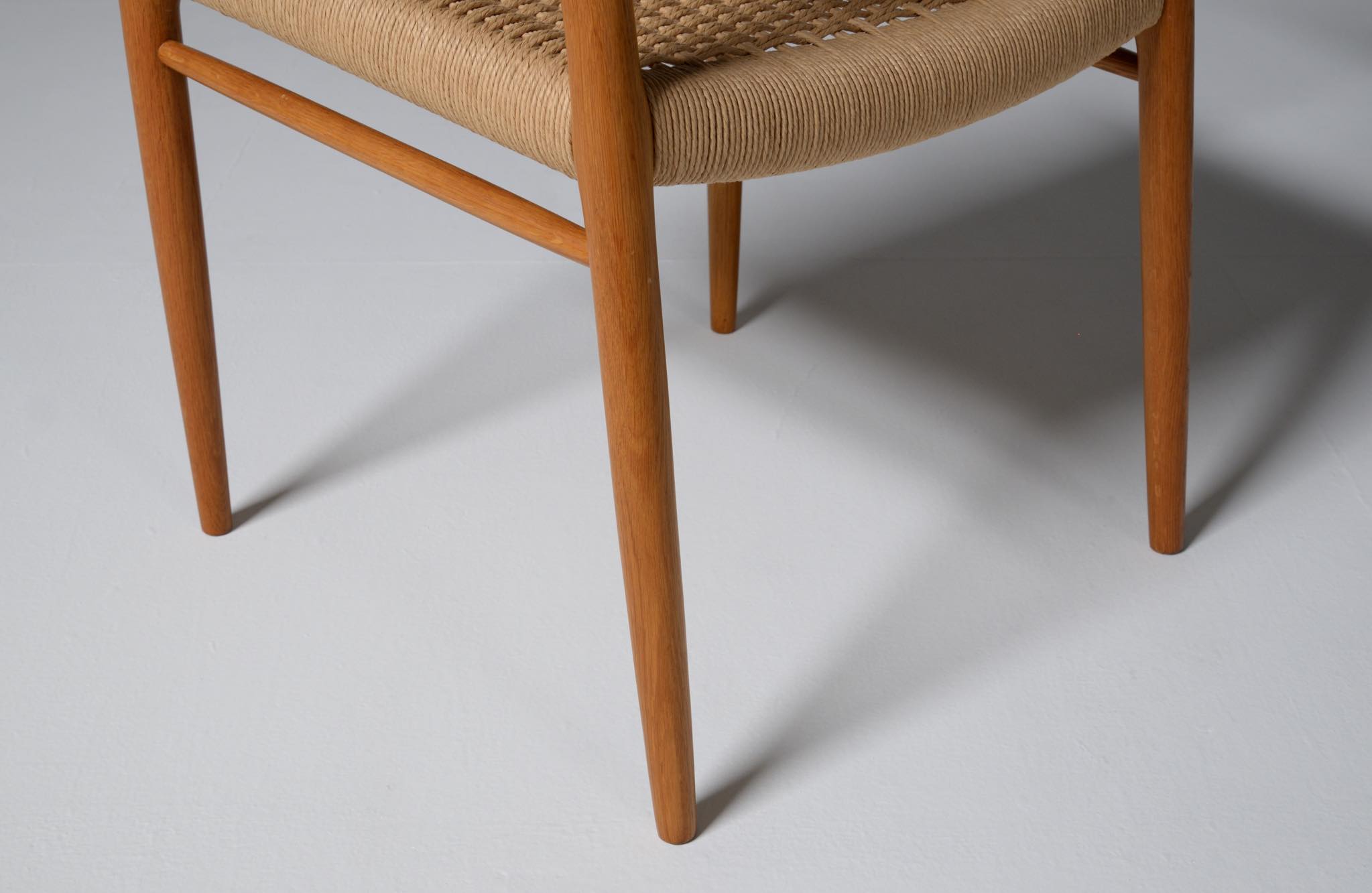 デンマークのデザイナー、N.O. Møller/ニルス・オットー・モラーによるアーム付きダイニングチェアです。自身の工房、J.L.Møller/J.L.モラーによるもので、1960年代頃に作られたものでしょう。オーク材のフレームは程よい経年感があり、目立った傷もなく良好です。座面のペーパーコードは新たに張り替えました。