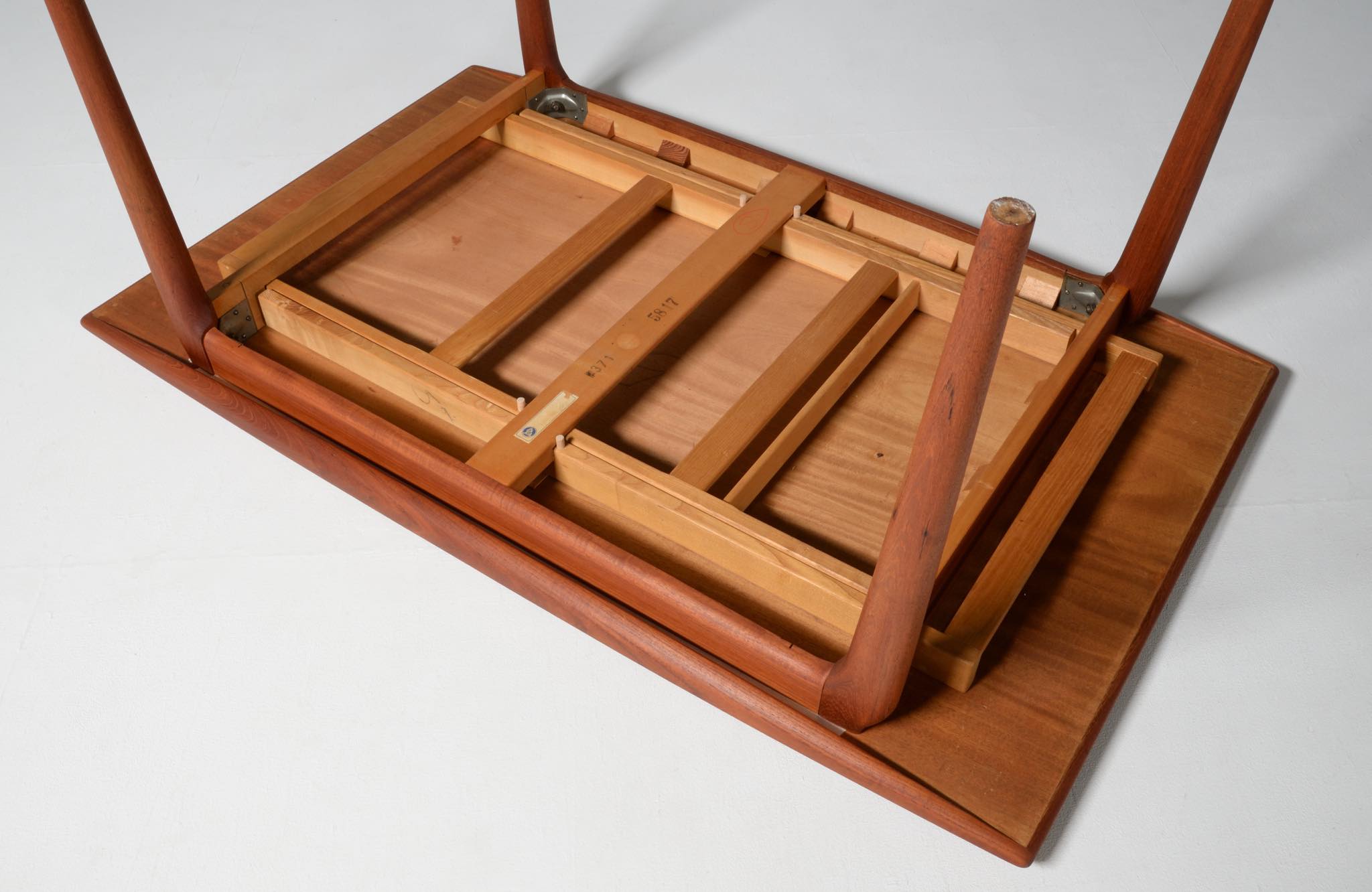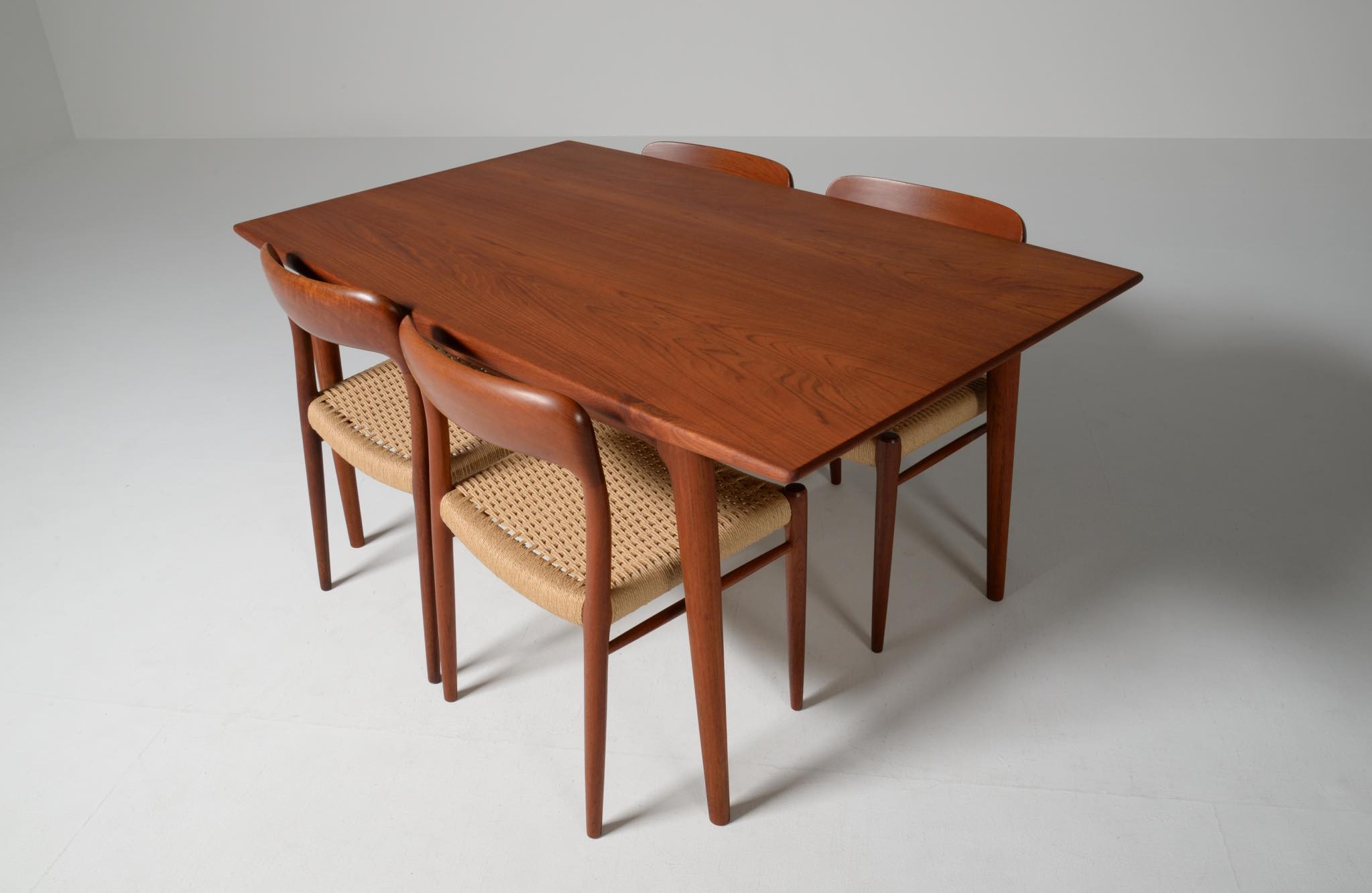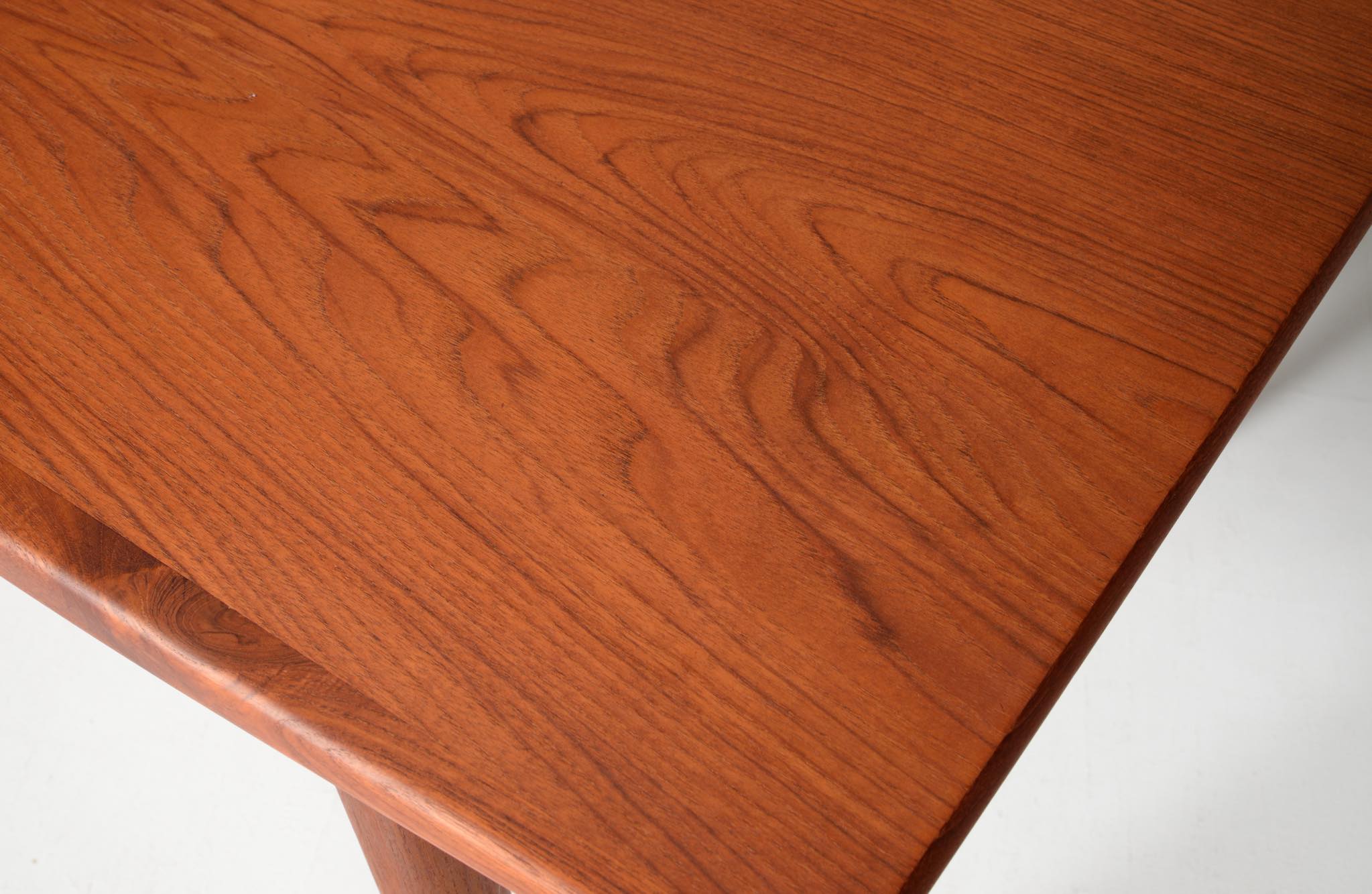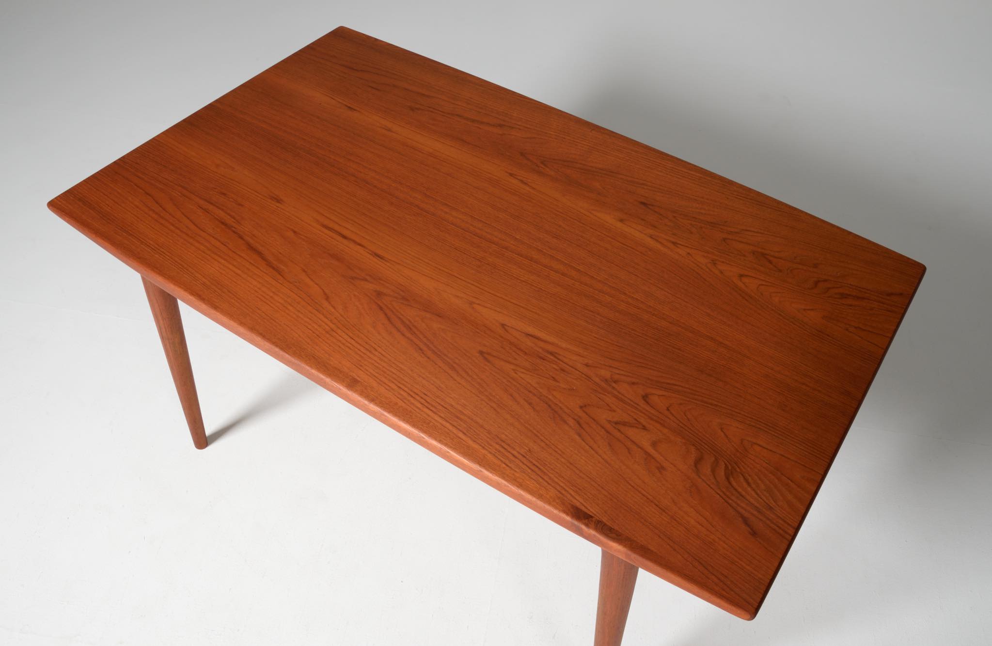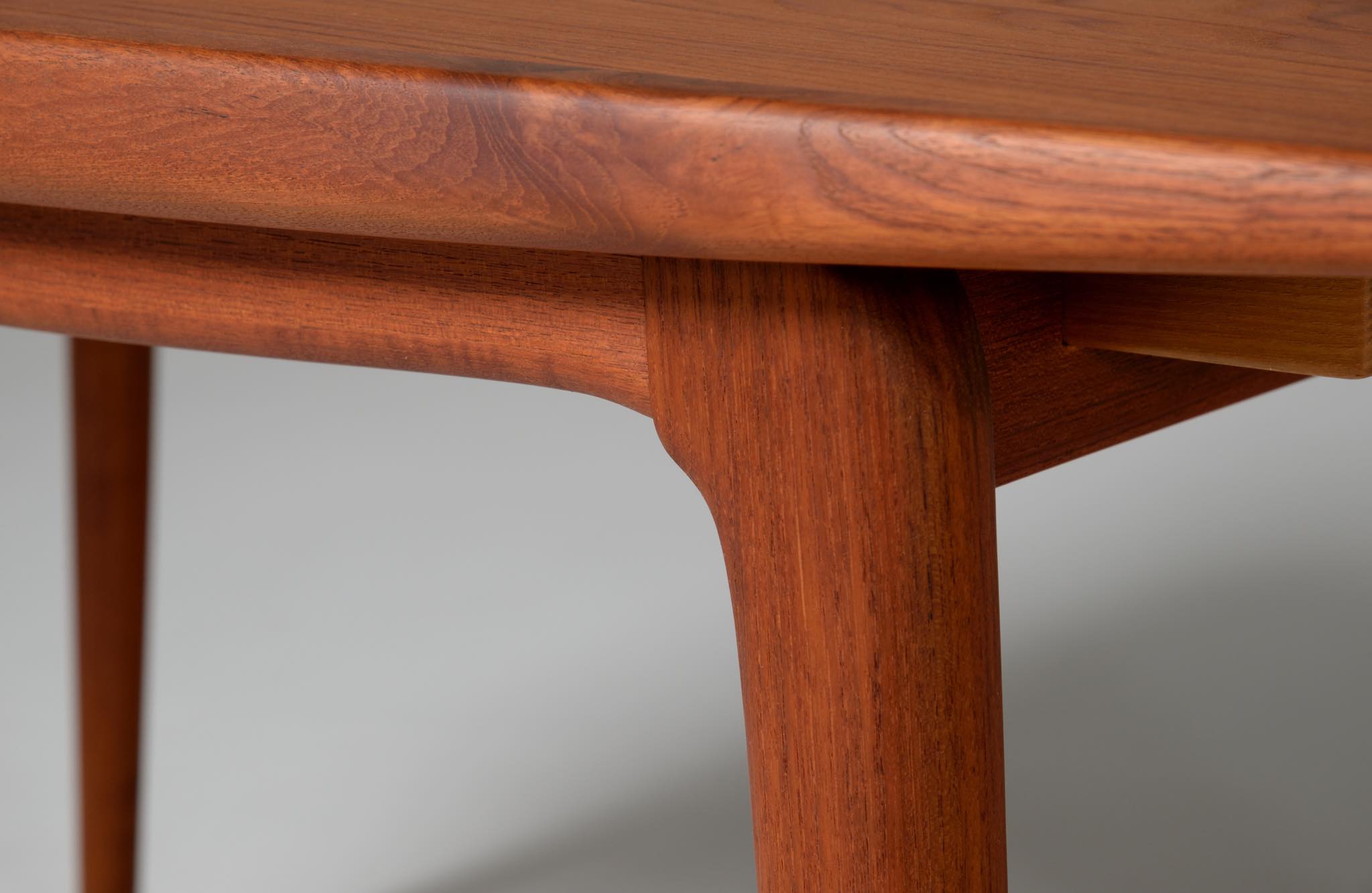 デンマークの家具デザイナー、Alfred Christensen/アルフレッド・クリステンセンによるダイニングテーブルで、1950~60年代頃に作られたものです。チーク材が用いられており、脚のデザインに特徴があります。天板面積を拡張するためのエクステンションリーフは内部に収納されており、木枠を引き出して設置する構造となります。コンディションは良好です。