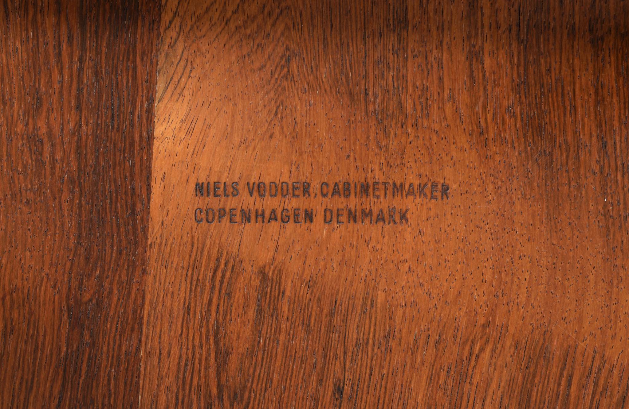 1915年、コペンハーゲンにて家具製作を開始。スネーカーマスター (技を極めた最高位の家具職人に与えられる称号) を授与され、独自の彫刻的な技術を活かし家具製作を行いました。フィン・ユールの家具製作を担うパートナーとして知られ、家具を学ばなかったフィン・ユールの芸術的で独特なイメージスケッチはヴォッダ―の匠によって具現化します。また、ヴォッダー自身も家具デザインを手がけ作品を生み出しました。